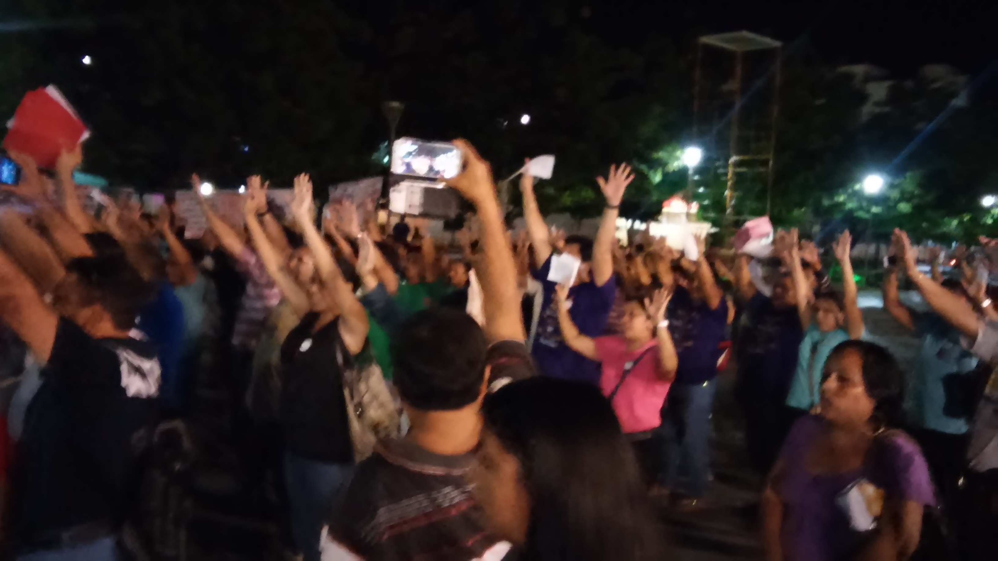 Ni la lluvia impidió que repudiaran la agresión policiaca, ordenada por Ortega Bernés, en su contra, hace un año, cuando protestaban contra la Reforma Educativa. Reiteran que no hay marcha atrás en la lucha por una educación laica, gratuita y de calidad, ni ante los agravios que la Reforma Educativa les está ocasionando. Por Ronny Aguilar CAMPECHE, Cam. 11 de septiembre.- Ni la lluvia impidió que los maestros inconformes con la Reforma Educativa salieran a protestar en la Plaza de la República, en repudio a la represión policiaca, ordenada por el gobernador Fernando Ortega Bernés, el 11 de septiembre del año pasado. En su mayoría docentes adheridos a la Coordinadora Nacional de los Trabajadores de la Educación (CNTE), los manifestantes destacaron que no hay marcha atrás en la lucha por una educación laica, gratuita y de calidad, ni darán un paso atrás, ante los agravios que la Reforma Educativa les está ocasionando. A pesar de las inclemencias del tiempo, alrededor de las siete de la noche, se realizó la concentración de más de 150 maestros, para recordar la brutal represión acontecida el pasado 11 de septiembre del 2013, participando también profesores del Sindicato Independiente de los Trabajadores de la Educación de México (SITEM) y la Base Magisterial Democrática de Campeche, así como del Colegio de Bachilleres, quienes se agruparon para escuchar el mitin. Ya caída la noche, los docentes escucharon los discursos de los líderes de la lucha magisterial en el Estado, destacando la participación de la maestra Neida Pat Dzul, del Estado de Yucatán, quien fue cesada de su puesto como docente en diciembre del año pasado, por ser la activista de la Coordinadora en su estado. Durante su participación, Pat Dzul invitó al magisterio campechano a que se una como una hermandad, en contra de la de lasciva ley educativa. Asimismo, en el evento, se pronunció el nombre de todos los diputados del PRI, PAN, PRD y Nueva Alianza, y al momento de ser mencionado cada uno, los maestros contestaban con un “traidor a la patria”, reprochando con más énfasis, cuando se mencionó el nombre de Mario Trinidad Tun Santoyo, ex dirigente de la Sección IV del Sindicato Nacional de Trabajadores de la Educación (SNTE). Acto seguido, se declamó un poema, en el cual se evidenciaron los sacrificios de los docentes por la educación de México y cómo el gobierno ha estado sometiendo a la base, aun cuando los supuestos privilegios de los maestros fueron luchas de décadas de un sindicato, hoy prostituido y traidor. Alrededor de las ocho de la noche, fue el turno de la CNTE de iniciar su mitin, el primero en discursar fue un representante de la Coordinadora, quien informó que son hasta el momento 25 Estados del país que están en plena lucha en contra de la contrarreforma del más grande traidor que ha existido en la historia del país, Enrique Peña Nieto. Igualmente, se apuntó que la Coordinadora siempre ha luchado y seguirá luchado por los intereses de los maestros, y se resaltó que la lucha continuará hasta la abrogación de las leyes secundarias y de la Reforma Educativa.