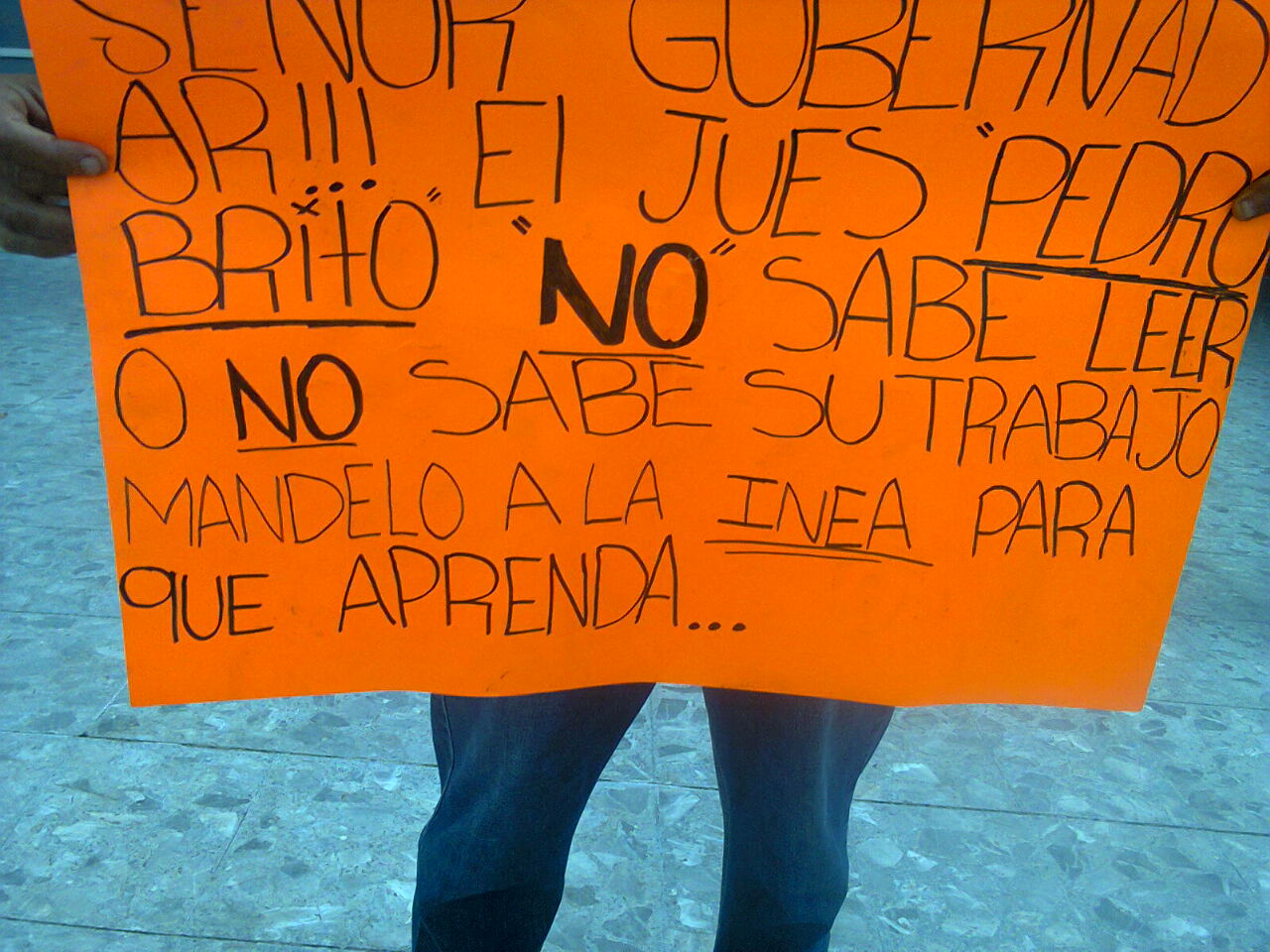El “plantonista solitario”, como ya le llaman en la calle 8, Arturo Felipe Díaz Magaña, quien protesta en los bajos del Palacio de Gobierno, dio un plazo de 15 días para que el gobierno del Estado proceda a la liberación de su hijo Luis Felipe Díaz Mejía, recluido desde hace dos años y 11 meses en el reclusorio de San Francisco Kobén, por un homicidio que no cometió. Por Luis Sánchez CAMPECHE, Cam. 29 de octubre.- El “plantonista solitario”, como ya le llaman en la calle 8, Arturo Felipe Díaz Magaña, quien protesta en los bajos del Palacio de Gobierno, dio un plazo de 15 días para que el gobierno del Estado proceda a la liberación de su hijo Luis Felipe Díaz Mejía, recluido desde hace dos años y 11 meses en el reclusorio de San Francisco Kobén, por un homicidio que no cometió. Entrevistado por Paginabierta, Díaz Magaña manifestó que ya bajó gente del gobierno estatal a dialogar y que fue claro en señalar que solo obteniendo la liberación de su hijo, procederá a abandonar su protesta. “Ahorita está abierto un diálogo con gente del gobierno. Pero si no cumplen con la liberación, haré huelga de hambre y procederé a realizar movilizaciones, con apoyo de vecinos de la colonia Ignacio Zaragoza, quienes están dispuestos a apoyarme por la injusticia que se está cometiendo con mi hijo”, expresó. Ayer, a las 11:40 horas, Arturo Felipe Díaz inició un plantón en los bajos del Palacio, inconforme porque el gobierno se ha negado a liberación de su hijo, acusado por un homicidio que no cometió. En esa ocasión, Díaz Magaña indicó que su hijo no estaba en la colonia Ignacio Zaragoza, en el momento del crimen contra un menor de edad, que se registró en un enfrentamiento entre pandillas, por lo que no es culpable del asesinato y que no obstante las pruebas otorgadas, las autoridades judiciales del Estado han ignorado el caso. “Estoy dispuesto a tomar las calles con mis vecinos y hacer huelga masiva de hambre, si el gobierno no cumple con la liberación de mi vástago en 15 días”, insistió. “Espero que el gobierno ahora si cumpla y no sean puras habladurías, como en anteriores ocasiones”´, concluyó.