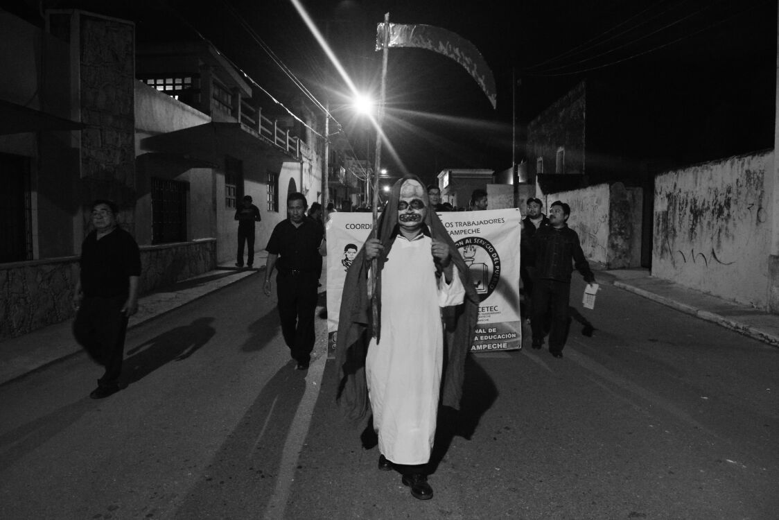 CALKINI, Cam. 1 de noviembre.- En punto de las 10 de la noche, se dieron cita frente a la Escuela Secundaria Técnica número 3, los alumnos de las escuelas normales de la ciudad (Primaria, Especial y de Educación), quienes se hermanaron con organizaciones, como la Coordinadora Nacional de Trabajadores de la Educación (CNTE), padres de familia y sociedad en general, para exigir el esclarecimiento de la matanza y desaparición de los hermanos normalistas de Ayotzinapa. Encabezando la marcha, estuvieron los normalistas de Calkiní y posteriormente el contingente de sus demás invitados. Durante las primera cuadras, solo imperaba el silencio como modo de protesta, pero al llegar al centro de la ciudad, se comenzaron a escuchar las consignas como “Ayotzinapa aguanta, Calkiní se levanta”, “Cuando el pueblo se levante, por pan, libertad y tierra, temblarán los poderosos de la costa hasta la sierra”, “Vivos se los llevaron, vivos los queremos”. Al término de la marcha, se pasó la lista de los 43 normalistas desaparecidos, a lo que los presentes contestaron “presente”. Uno de los integrantes, señaló que “es momento de despertar y quitarnos la venda de los ojos, porque el gobierno siempre ha hecho creer a la sociedad, que vivimos en un México de justicia y democracia, cuando la realidad es otra, es momento de luchar por nuestro futuro y la de las generaciones que nos sucederán”. “Nuestra exigencia primordial, en estos momentos, es la presentación con vida de nuestros compañeros normalistas de Ayotzinapa, Guerrero”, concluyó.