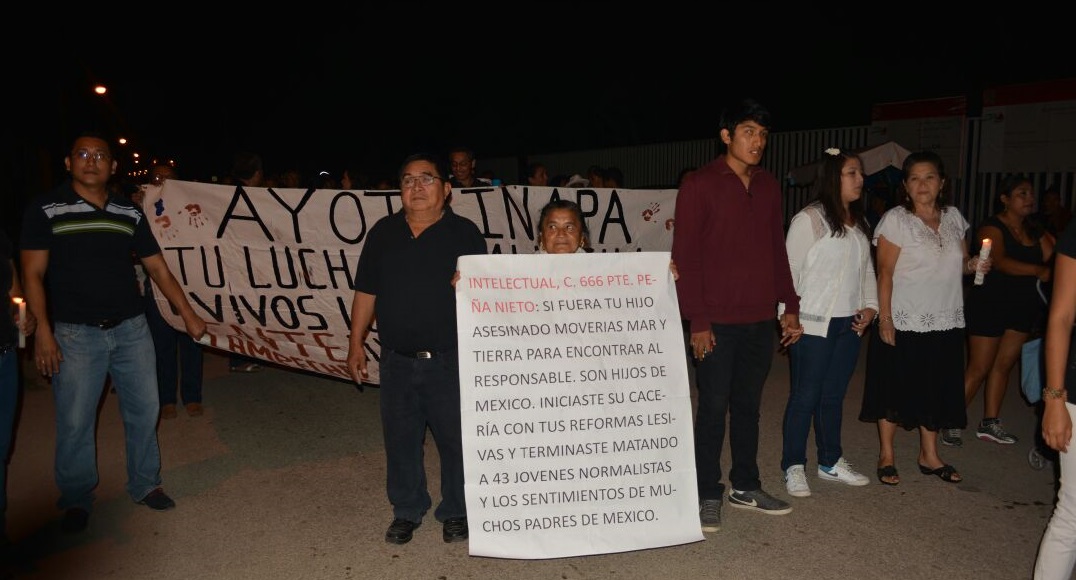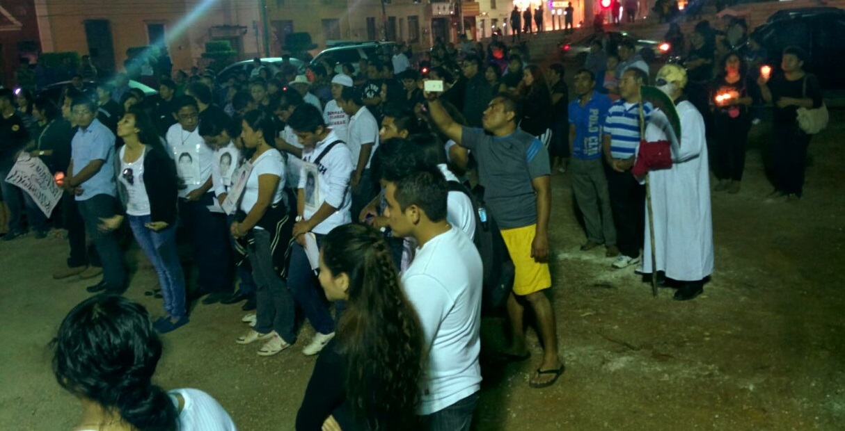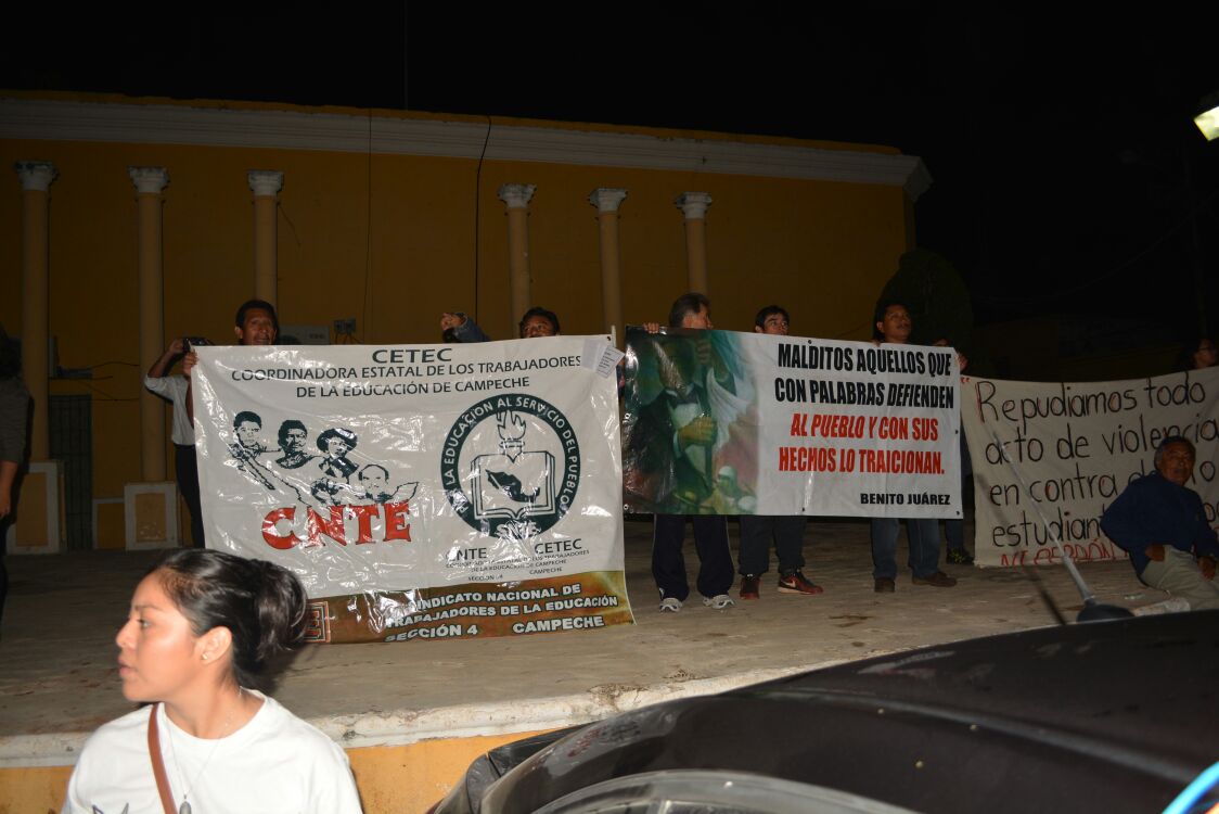 En punto de las 10 de la noche, se dieron cita frente a la Escuela Secundaria Técnica número 3, los alumnos de las escuelas normales de la ciudad (Primaria, Especial y de Educación), quienes se hermanaron con organizaciones, como la Coordinadora Nacional de Trabajadores de la Educación, padres de familia y sociedad en general, para exigir el esclarecimiento de la matanza y desaparición de los hermanos normalistas de Ayotzinapa.