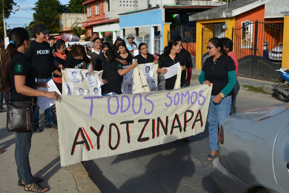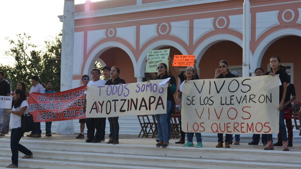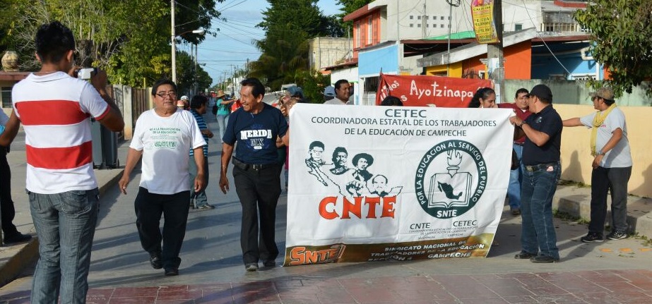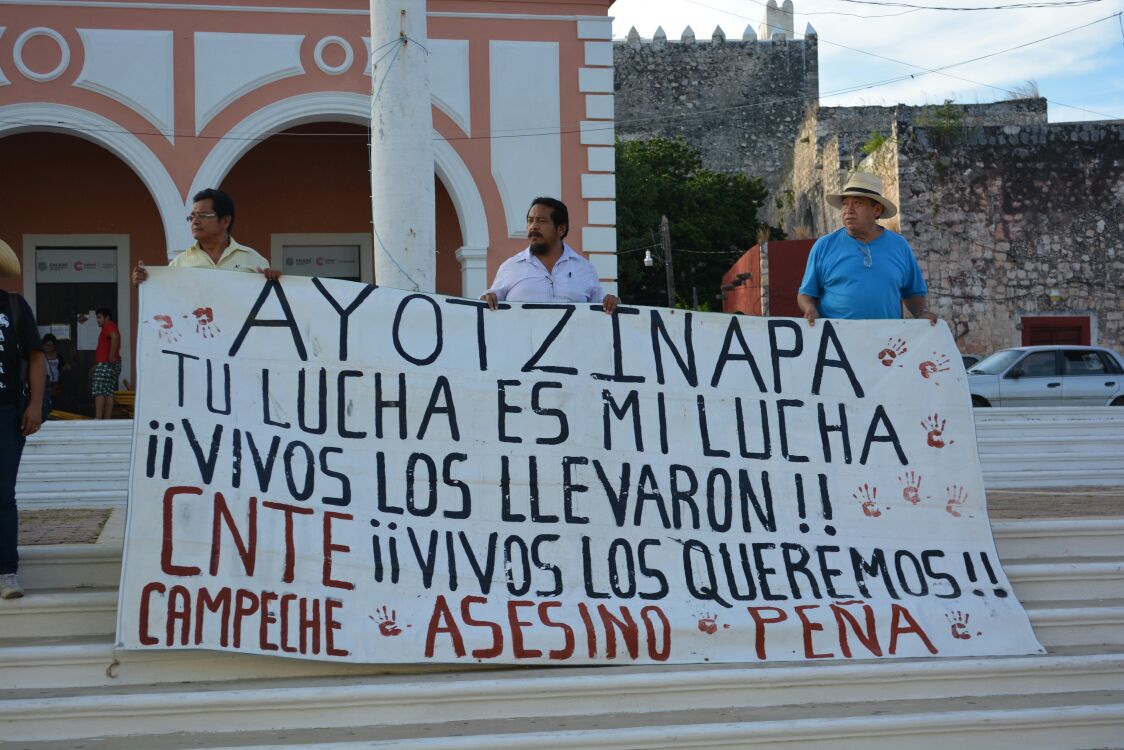 Por Gustavo Uc Pérez CALKINI, Cam. 30 de noviembre.- A la invitación que realizaron los profesores de la Universidad Pedagógica Nacional, a la marcha en apoyo a los jóvenes normalistas de Ayotzinapa asesinados y desaparecidos, se sumó el contingente la Coordinadora Estatal de Trabajadores de la Educación del Estado de Campeche, así como los representantes de la CNTE de Yucatán y Quintana Roo. Con las consignas de “Zapata vive, la lucha sigue”, “el pueblo unido, jamás será vencido”, “señor policía que lastima, teniendo tú las armas, no puedes protestar”, “Ayotzinapa vive, la lucha sigue”, “si vivos se los llevaron, vivos los queremos”, “fuera Peña, fuera Peña”, el recorrido comenzó desde la Escuela Normal de Licenciatura en Educación Primaria para culminar frente al Palacio Municipal. Los oradores exigieron la presentación con vida de los estudiantes desaparecidos y justicia para los asesinados, así como la renuncia del priísta Enrique Peña Nieto a la Presidencia de la República. También se manifestaron en contra de la criminalización de las protestas y los arrestos arbitrarios ocurridos el 20 de noviembre, en la manifestación en el zócalo capitalino. Los manifestantes dejaron en claro que están en contra de las reformas estructurales, porque atentan contra la soberanía nacional y los derechos consagrados en la Constitución de 1910, que los senadores, diputados y gobernantes han violentado y mancillado, en su afán de someterse a los caprichos de los países capitalistas. Los jóvenes estudiantes de la UPN, por su parte, también alzaron la voz por la presentación de sus compañeros desaparecidos y exigen que si el gobierno de Peña no puede cumplir, porque ya están cansados, que “renuncien” a sus cargos, por ineptos, corruptos y asesinos.