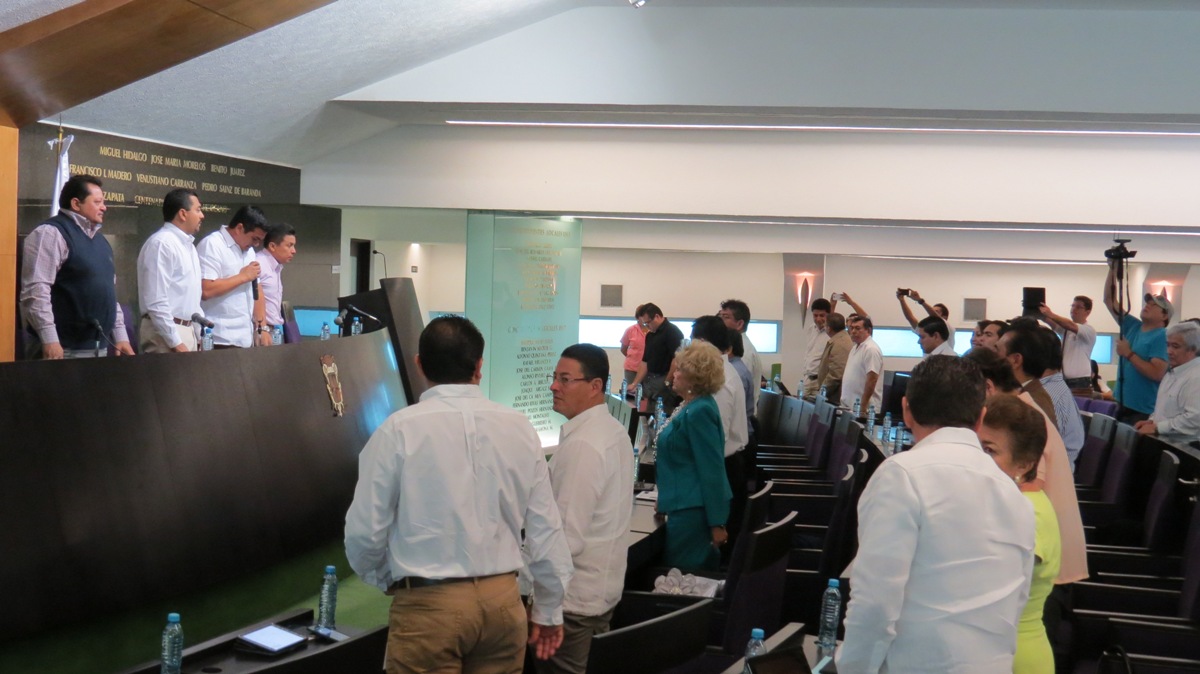 A dos días de la implementación del nuevo Sistema de Justicia Penal Acusatorio en tres municipios, el Congreso del Estado aprobó por unanimidad la Ley Orgánica de la Fiscalía General y reformas al Código Penal del Estado de Campeche, y al vapor y por mayoría, la Ley de Seguridad Pública estatal. Por Daniel Sánchez CAMPECHE, Cam. 1 de diciembre.- A dos días de la implementación del nuevo Sistema de Justicia Penal Acusatorio en tres municipios, el Congreso del Estado aprobó por unanimidad la Ley Orgánica de la Fiscalía General y reformas al Código Penal del Estado de Campeche, y al vapor y por mayoría, la Ley de Seguridad Pública estatal. Los diputados presentes en la sesión ordinaria de este lunes, votaron a favor en lo general y en lo particular, del dictamen de las Comisiones de Puntos Constitucionales y Control Interno de Convencionalidad, y de Procuración e Impartición de Justicia, relativo a una iniciativa promovida por el Ejecutivo estatal para expedir la Ley Orgánica de la Fiscalía General del Estado de Campeche. Esta nueva normatividad tiene por objeto establecer, organizar y regular el funcionamiento de la Fiscalía General del Estado de Campeche, así como de las unidades administrativas que la integran, para el ejercicio de las atribuciones y el despacho de los asuntos que al Ministerio Público le confieren la Constitución Política de los Estados Unidos Mexicanos, la Constitución Política del Estado de Campeche y demás disposiciones legales aplicables. Por mayoría de votos -sólo el diputado de Morena, Manuel Zavala Salazar, votó en contra-, el Congreso aprobó, en lo general y en lo particular, el dictamen de las Comisiones de Puntos Constitucionales y Control Interno de Convencionalidad, y de Seguridad Pública y Protección a la Comunidad, relativo a una iniciativa promovida por el Ejecutivo estatal, para expedir la Ley de Seguridad Pública del Estado de Campeche. Con la nueva ley, se establece, “se fortalecerá el Estado de Derecho y generará la seguridad necesaria para que la ciudadanía cuente con un Sistema de Seguridad Pública que sea garante de sus derechos humanos”. Con esta nueva ley, se destaca en los considerandos del dictamen, “se busca modernizar a nuestras instituciones policiales, se promueve la vertebración de las políticas locales con las del gobierno federal en diversos aspectos, entre otros, el régimen de las instituciones policiales, el control interno, la carrera policial, el control de confianza, el régimen disciplinario, la seguridad pública municipal y la seguridad privada”. Por unanimidad, fue aprobado el dictamen de las Comisiones de Puntos Constitucionales y Control Interno de Convencionalidad, y de Procuración e Impartición de Justicia, relativo a una iniciativa promovida por el Ejecutivo estatal para reformar diversos artículos del Código Penal del Estado de Campeche, para armonizarlo con la terminología y principios del Código Nacional de Procedimientos Penales, así como con los tratados internacionales en materia de derechos humanos de los que el Estado Mexicano es parte, y por consiguiente la entrada en vigor del sistema de justicia penal acusatorio. Por otra parte, y en virtud de que los Ayuntamientos de los municipios de Calakmul, Calkiní, Campeche, Candelaria, Carmen Escárcega, Hecelchakán, Hopelchén, Palizada y Tenabo se pronunciaron a favor de la modificación a la Constitución Política del Estado de Campeche que la LXI Legislatura estatal aprobó, en un momento solemne de la sesión, el presidente de la directiva, Pablo Sánchez Silva, dijo que “con fundamento en el artículo 131 de la propia Constitución Política del Estado, se declara que el Poder Revisor de la Constitución Política del Estado aprueba en definitiva las reformas a los Artículos 21, 25, 34 fracción V, 75, 76, 85, 91 y 125, todos ellos de la Constitución Política del Estado de Campeche”, con lo que queda creada la Fiscalía General del Estado. Critica Zavala decálogo de Peña Nieto En el punto de asuntos generales, la legisladora Ana María López Hernández agradeció a los diputados Edgar Román Hernández Hernández, Noel Juárez Castellanos, Rigoberto Figueroa Ortiz y Humberto Manuel Cahuich Jesús, por su solidaridad para con las necesidades de la familia del ciudadano Joaquín Esteban Hernández Cruz, quien sufrió un accidente carretero en Escárcega. En tanto, el diputado Manuel Zavala fijó su postura sobre lo acontecido el pasado jueves 26 de noviembre, en lo que llamó como el decálogo del Presidente Enrique Peña Nieto, y también habló sobre los dos años de la actual administración federal y sobre los ex trabajadores del Ayuntamiento de Tenabo. Finalmente, el priísta José Eduardo Bravo Negrín afirmó que con la aprobación de la Ley de Seguridad Pública del Estado, prácticamente queda completa la infraestructura legal para la implementación del nuevo Sistema de Justicia Penal, con lo que a partir del próximo miércoles tres de diciembre, empiecen a aplicarse los juicios orales en materia penal, en una primera etapa en Campeche, Champotón y Escárcega.