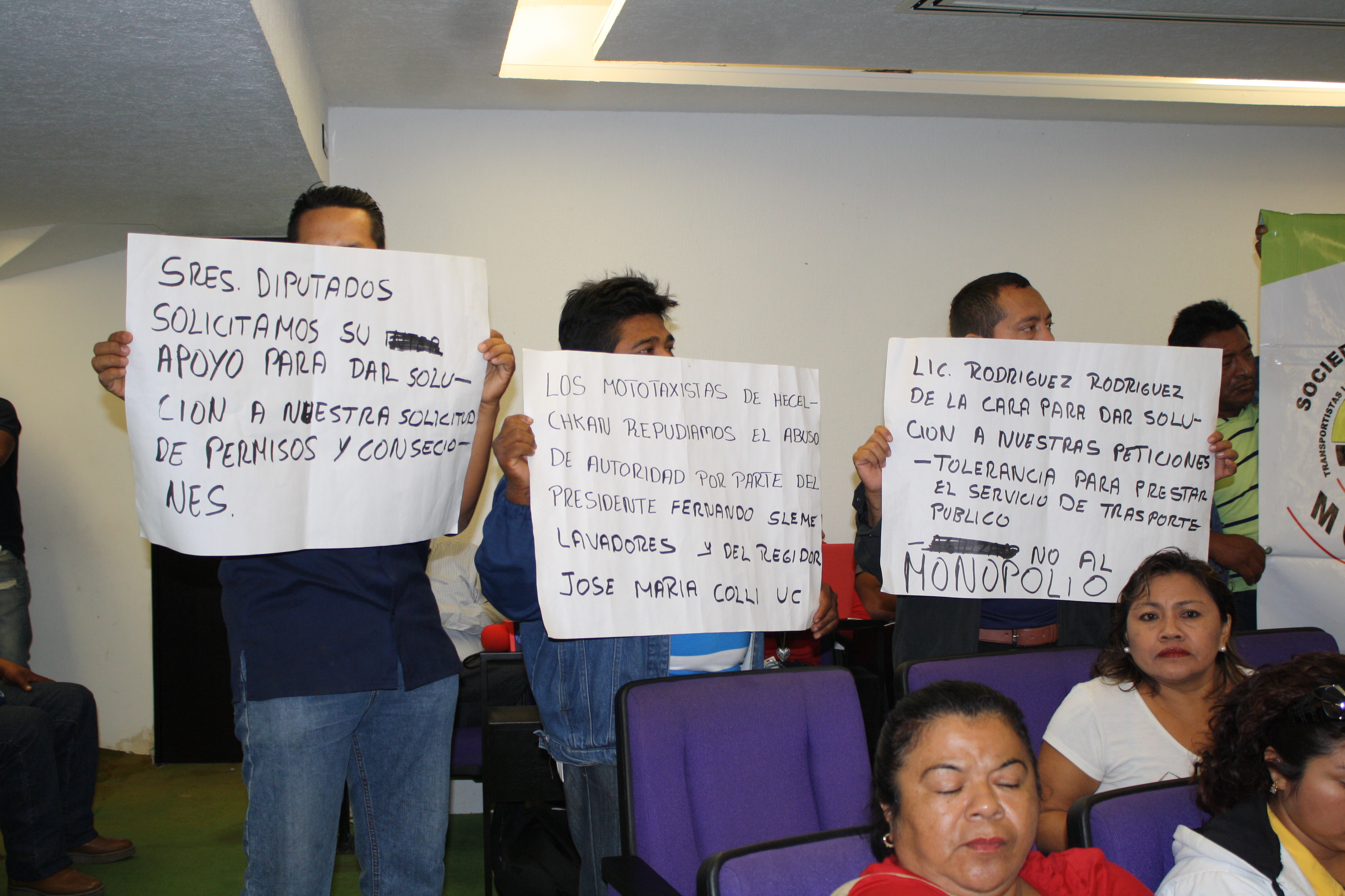 Mototaxistas acudieron nuevamente al Congreso del Estado para manifestarse y exigir que se les libere el permiso para laborar y se realice juicio político en contra del regidor José María Collí Uc, por abuso de autoridad y tráfico de influencias