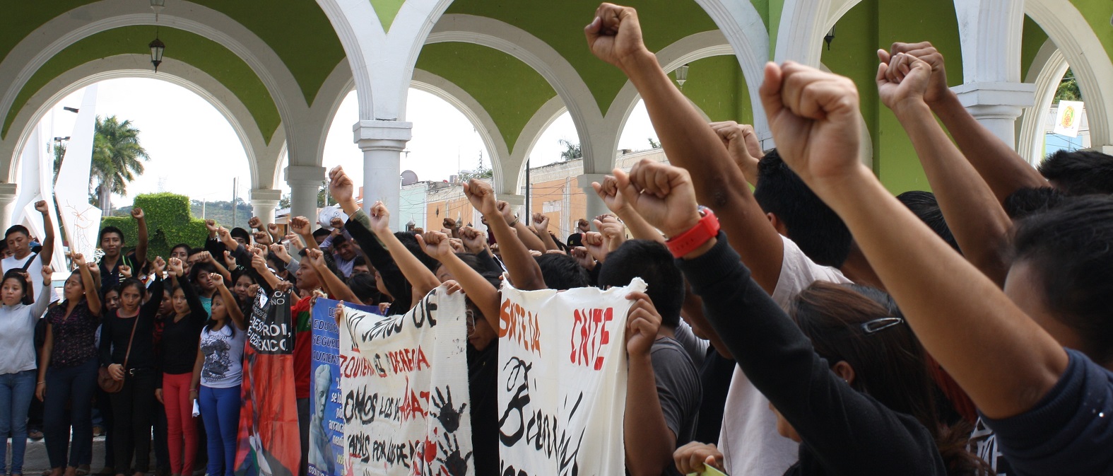 Estudiantes de Escuela la Normal Rural “Justo Sierra Méndez marcharon por las calles de esta ciudad, encabezados por normalistas de Ayotzinapa, Guerrero, y realizaron un mitin en el Palacio Municipal, donde exigieron la presentación con vida de sus 43 compañeros desaparecidos desde el 26 de septiembre.