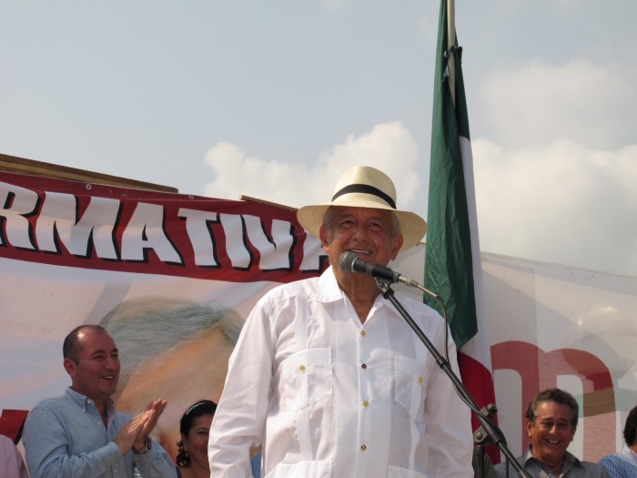 El presidente del Consejo Nacional de Morena, Andrés Manuel López Obrador, planteó que se tiene que aplicar cadena perpetua a los corruptos en México, porque dichas personas “se tienen que ir al carajo”. El político tabasqueño indicó que el principal problema de México es la corrupción; la deshonestidad de sus gobernantes, y sostuvo que si se corta de tajo, se podría lograr el renacimiento de México: mejorar los ingresos, crear empleos, sacar de la pobreza a millones. CIUDAD PEMEX, Tab. 20 de diciembre de 2014.- Desde Ciudad Pemex, el presidente del Consejo Nacional de Morena, Andrés Manuel López Obrador, planteó que se tiene que aplicar cadena perpetua a los corruptos en México, porque dichas personas “se tienen que ir al carajo”. En su tercer día de gira por Tabasco, el político tabasqueño indicó que el principal problema de México es la corrupción; la deshonestidad de sus gobernantes, y sostuvo que si se corta de tajo, se podría lograr el renacimiento de México: mejorar los ingresos, crear empleos, sacar de la pobreza a millones. Recordó los escándalos en los que se ha visto envuelto recientemente el priista Enrique Peña Nieto y explicó que lo único que ha hecho bien es replicar el modelo de corrupción que se tiene en el Estado de México —desde los tiempos del profesor Carlos Hank González, aquel que decía: “político pobre, pobre político”— a nivel nacional. “El Congreso del Estado de México en la época del maestro Hank era algo especial porque los diputados además de su sueldo recibían cantidades de dinero para obras”, explicó. Actualmente, dijo, los diputados federales tienen asignadas partidas del presupuesto nacional con las que condicionan a los presidentes municipales para hacer obras públicas. Afirmó que los diputados están para legislar no para llevar a cabo obras y recibir presupuesto ya que eso corresponde al Poder Ejecutivo. “Llega el diputado y le dice al presidente municipal: te doy recursos para las banquetas, pero me vas a dar 10 por ciento o la obra la va a hacer ‘tal’ empresa constructora”, explicó. En ese mismo sentido, sostuvo que no es nada raro que Peña Nieto le haya entregado a Juan Armando Hinojosa Cantú, su contratista favorito, 30 mil millones de pesos en contratos de obra. “Resulta que es el que supuestamente le vende a Peña Nieto una casa en las Lomas de Chapultepec en 125 millones de pesos”. Durante su participación en la asamblea informativa en Ciudad Pemex, pidió a los informantes que manda el secretario de Gobernación, Miguel Ángel Osorio Chong, para que lo escuchen en cada plaza pública, y le notifiquen que sostuvo que Peña Nieto es un reverendo ladrón. Evocó que cuando fue Jefe de Gobierno de la Ciudad de México se construyeron dos hospitales: el Belisario Domínguez en Iztapalapa, con 150 camas con un costo total de 375 millones de pesos; otro en Álvaro Obregón con 125 camas, 350 millones de pesos. “Casi al mismo tiempo, Peña Nieto como gobernador en el Estado de México construye dos hospitales: Zumpango, con 125 camas en 8 mil millones de pesos y otro en Ixtapaluca en siete mil millones de pesos. 20 veces más caro, ¿es sinvergüenza o no es sinvergüenza?”, cuestionó. Además, preguntó: “¿Quién creen qué construyó el hospital de Zumpango? Hinojosa. Con un financiamiento donde además le tienen que entregar cada año 300 millones de pesos durante 25 años. El hospital en Ixtapaluca, lo hizo el cuñado de Carlos Salinas de Gortari”. En Tabasco, agregó, desde principios de los años 50, en toda la zona de Macuspana, Jalapa, se hacen negocios con el petróleo. Explicó que cuesta 10 dólares sacar un barril de petróleo, cuando debería costar 3 o 4 dólares, pero “cuesta 10 por la corrupción que hay en Pemex.” “Ese barril se vende hasta en 100 dólares, pero ahora se les está cayendo a 50 dólares. De todas maneras son 40 dólares de ganancia. Nada más en Tabasco se extraen 600 mil barriles diarios el mejor petróleo del mundo”, abundó. Indicó que sí hay dinero, por ejemplo, el presupuesto nacional autorizado para el próximo año en el país es de 4 billones 600 mil millones. Calculó que se roban el 10 por ciento, equivalente a 400 mil millones de pesos. “No hay una banda que se robe esa cantidad de dinero”. “Ahora tengo información que construyeron un aeropuerto en Palenque y donde estaba el viejo aeropuerto se quieren robar los terrenos. Lo estoy denunciando porque ya es mucho, es pura robadera”, manifestó al asegurar que si se termina con la corrupción en el país habría ahorros para el desarrollo en México. Encabeza Morena preferencias electorales En otro tema, López Obrador subrayó que el partido político Morena encabezará las preferencias electorales a nivel nacional. “Lleva apenas seis meses como partido y ya en las encuestas es el primer lugar en preferencia electoral en el Distrito Federal, lo mismo sucederá aquí en Tabasco y a nivel nacional”, sostuvo. El día de ayer, desde su cuenta de Twitter, el presidente del Consejo Nacional de Morena detalló que según la encuesta del periódico Reforma, Morena encabeza las preferencias electorales en el Distrito Federal, lo que implica más trabajo, rectitud y amor al pueblo. Convocó a los asistentes de la asamblea informativa a participar en Morena, donde no se buscan cargos, sino un verdadero cambio. “Se puede lograr de manera pacífica sin violencia, pero con mucha perseverancia. No a la primera decir ya me cansé, es muy difícil esto. Dejar de luchar es como empezar a morir”. Aseguró que sí se pueden mejorar las condiciones económicas en el país, ya que el pueblo de México no se merece lo que está pasando. “El saqueo que están llevando a cabo, desde 1983, con la política neoliberal, que no es más que una política de pillaje”. Expresó que los potentados están saqueando al país como nunca había sucedido y además se roban la herenc