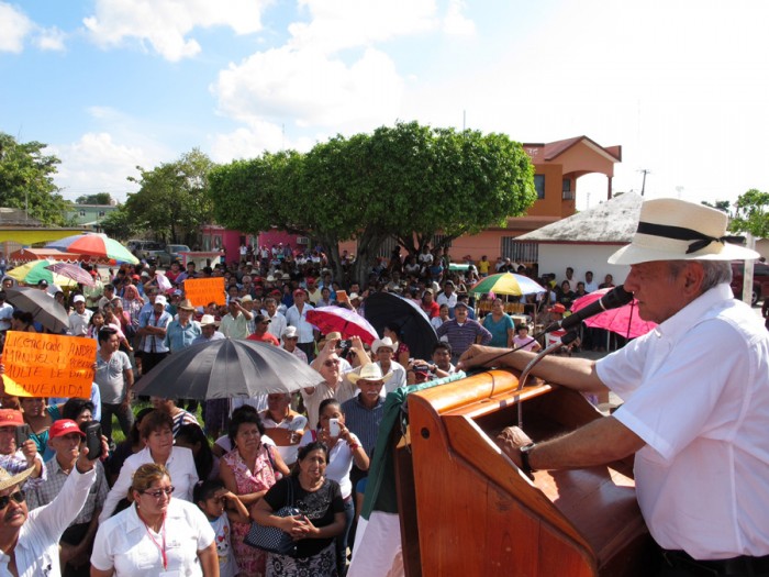 El presidente del Consejo Nacional de Morena, Andrés Manuel López Obrador, convocó a los gobiernos de México, Estados Unidos, Guatemala y Centroamérica a buscar un gran acuerdo de cooperación para el desarrollo, crecimiento económico y empleos en Centroamérica, en México, y evitar que se vayan a buscar la vida en el país del norte. Llamó a las autoridades mexicanas a dejar de hacer el papel de policía del gobierno estadounidense en la frontera sur, porque detiene a todos los migrantes en el sureste y quieren que la frontera con EU comience desde el Suchiate y El Ceibo, ya no el Río Bravo. TENOSIQUE, Tab. 21 de diciembre de 2014.- Desde el sureste mexicano, el presidente del Consejo Nacional de Morena, Andrés Manuel López Obrador, convocó a los gobiernos de México, Estados Unidos, Guatemala y Centroamérica a buscar un gran acuerdo de cooperación en el desarrollo, crecimiento económico y empleos en Centroamérica, en México, y evitar que se vayan a buscar la vida en el país del norte. Llamó a las autoridades mexicanas a dejar de hacer el papel de policía del gobierno estadounidense en la frontera sur, porque detiene a todos los migrantes en el sureste y quieren que la frontera con EU comience desde el Suchiate y El Ceibo, ya no el Río Bravo y por eso invierten dinero para construir retenes y evitar que pasen los centroamericanos por México para buscarse una mejor vida en el país del norte. “Se tiene que pensar que si no se resuelve el problema de la falta de desarrollo y de que haya oportunidades de empleo, no vamos a poder vivir con tranquilidad, ni con paz social, porque la violencia surgió en nuestro país por la falta de desarrollo”, indicó. En Tenosique —cuna del político revolucionario, José María Pino Suárez—, López Obrador convocó a sus paisanos a tener presente que es necesario poner por delante los ideales, porque Morena no es un partido político electorero, no es una plataforma para encaramarse y ocupar cargos. “Qué ganaría Morena si solo impulsa a ambiciosos vulgares para que ocupen cargos”, cuestionó, al contestar que nada, porque luego llegan al poder y como no tienen ideales, ni principios, “enloquecen, porque el poder cuando no hay principios, ni ideales, atontan a los inteligentes y a los tontos, los vuelve locos”. Puso de manifiesto que hay personas que se suben a un ladrillo y se marean, se empiezan a sentir más que otros, se visten distinto, caminan distinto, se pavonean, hablan de otra manera: “cómo está, qué dice, cuánto gusto, cómo está usted, qué dice la familia”, pero son unos ridículos corruptos”. Rechazó que en Morena no se quiere gente corrupta, ambiciosa y vulgar, y llamó a las personas a dejar de perder el tiempo con esas personas, porque hasta dan pena, vergüenza que haya autoridades que surgen de las filas del movimiento y trabajan mal, gobiernan mal, hasta se compran ranchos, casa nueva. Insistió en que Morena no trabaja para que políticos corruptos lleguen a cargos y manifestó “que se vayan al carajo quienes piensan así”. Homenaje a José María Pino Suárez Previamente, el político tabasqueño rindió un homenaje José María Pino Suárez, a quien calificó como un apóstol de la democracia y llamó a sus paisanos a recordar al político revolucionario, porque la lucha de Morena se inspira en los ideales de los héroes que en otros tiempos lucharon por la libertad, la justicia y la democracia en México. “No se podría participar en un partido político sin tener ideales, principios. ¿Qué seríamos sin ideales? Unos viles oportunistas. Nuestra lucha se inspira en ideales, no es por la ambición a los cargos, ni por la ambición al poder, mucho menos por la ambición al dinero, es la transformación del país”, expuso. Convocó a los tabasqueños a no pensar en ocupar cargos, sino en cambiar realmente a México, porque creen qué Pino Suárez estaba pensando en cargos, pues no, él fue electo primero como gobernador de Yucatán y luego fue llamado por Francisco I. Madero para que lo acompañara en la campaña presidencial y fue electo como vicepresidente de la República. “Estuvo siempre con Madero, hasta que una banda de malhechores, una pandilla de rufianes los asesinaron, pero no luchaban por los cargos, por el dinero, luchaban porque querían liberar al pueblo, luchaban y enfrentaron a la Dictadura Porfirista, que como ahora se dedicaba a oprimir al pueblo y entregar todas las riquezas de México a particulares, sobre todo a los extranjeros”, rememoró. Indicó que ante tanta indignación de los mexicanos inició el Movimiento Revolucionario y quienes lucharon en ese tiempo, como Pino Suárez, Madero, eran personas con ideales, por eso los integrantes de Morena tienen que recordarlos siempre. Resaltó que Morena se constituyó para llevar a cabo la cuarta transformación de México, de manera pacífica, sin violencia, porque ya las antecedieron tres fuertes movimientos: La Independencia, La Reforma y la Revolución. Tanto en Tenosique, como en Balancán, Andrés Manuel destacó que Morena es para al salvar al país, porque México está en una situación grave por la corrupción que impera y explicó que sí se puede cambiar al país, por la vía pacífica, sin violencia, con la participación consciente y organizada del pueblo. “Hay ahora en todo el país un despertar ciudadano, es ahora muy satisfactorio saber, constatar que la gente está despertando, ya la mitad de los que votaron por Peña Nieto, de acuerdo a las encuestas, están arrepentidos, esto es bueno, quiere decir que al pueblo lo pueden engañar una vez, dos veces, pero no lo podrán engañar todo el tiempo”, sostuvo. Puso de ejemplo que en las encuestas se registran que Enrique Peña tiene 4.2 de calificación y Morena está creciendo, hace cinco días se publicó una encuesta en un periódico de circulación nacional, donde se informa que Morena es primer lugar en preferencia electoral en el 