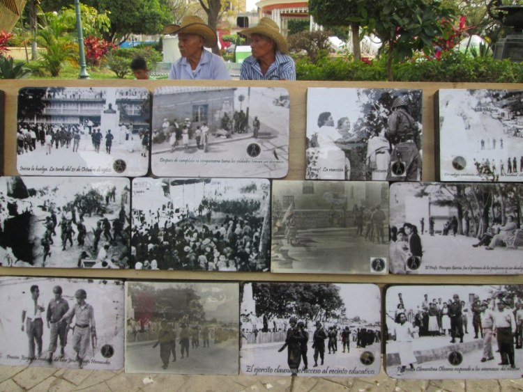 El día lunes 21 de octubre de 1960, se desarrollaba una huelga estudiantil en la Universidad de Guerrero, pero hasta la alameda Granados Maldonado arribaron militares para intimidar y reprimir a quienes se organizaban en aquel entonces, las demandas del movimiento estudiantil y popular de Guerrero, eran por la desaparición de poderes en ese estado. Las mujeres tuvieron una participación importante, pues realizaban una cadena humana cada vez que se iniciaba un mitin, los pueblos de todo el estado se solidarizaron para sostener la alimentación básica del movimiento, llevando entre otros enseres maíz y pescado para los estudiantes. José Trinidad Téllez Falcón fue herido de muerte en aquella lucha, un elemento del ejército mexicano utilizó su bayoneta para cortar el vientre de aquel hombre y en cuestión de segundos tenía expuestas las vísceras, con esta brutalidad se logró aplastar al movimiento. El Comité Independiente de Solidaridad, con los familiares de los caídos en los sesenta, recordó la participación de la Normal Rural «Raúl Isidro Burgos», con la presencia de grupos de estudiantes normalistas, organizados por Genaro Vázquez y Lucio Cabañas. En las participaciones, fue vertido el mensaje de algunos padres de familia de los normalistas desaparecidos en septiembre pasado, quienes exhortaron al pueblo de Guerrero y en especial a la gente de Chilpancingo, a no dejarse vencer, a seguir luchando y organizándose; llamaron a no conformarse y alzar la voz en contra de todas las desapariciones forzadas; así como por el esclarecimiento de los restos encontrados en las decenas de fosas clandestinas. Vidulfo Rosales, abogado del Centro de Derechos Humanos Tlachinollan, intervino en torno al proceso constitucional que representa la desaparición de poderes en el estado, que fue decretado en 1961 y que ha sido una de las consignas levantada por el actual movimiento por la aparición de los 43 normalistas de Ayotzinapa. Al respecto, mencionó que en aquellos años, la desaparición de poderes fue posible por las fracturas al interior del poder público y que la gran dificultad en nuestros días es que los partidos políticos han cerrado filas para no permitir la caída de ningún gobernador. Y aun si fuera posible llevarlo a cabo en estos días, no serviría de mucho, pues son los mismos políticos y sus partidos quienes tomarían las riendas del estado. En aquellos años, la lucha por la desaparición de poderes significó una consigna para unificar al movimiento, papel que ahora juega la exigencia de presentación con vida de los jóvenes normalistas.