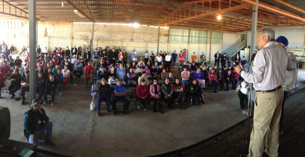 15amlo Andrés Manuel López Obrador insistió en que el principal problema del país es la corrupción y puso de ejemplo que en el tiempo que lleva mal gobernando, el priísta Enrique Peña Nieto entregó sin licitación, sin apego a la ley, obras por 300 mil millones de pesos a sus socios, amigos y familiares, es decir, construcción de trenes y autopistas. Y como resultado de dicha corrupción, explicó, Peña y Videgaray recibieron “moches”, que fueron las casas que se dieron a conocer. MEXICALI, B.C. 15 de enero de 2015.- Andrés Manuel López Obrador insistió en que el principal problema del país es la corrupción y puso de ejemplo que en el tiempo que lleva mal gobernando, el priísta Enrique Peña Nieto entregó sin licitación, sin apego a la ley, obras por 300 mil millones de pesos a sus socios, amigos y familiares, es decir, construcción de trenes y autopistas. Y como resultado de dicha corrupción, explicó el presidente del Consejo Nacional de Morena, Peña y Videgaray recibieron “moches”, que fueron las casas que se dieron a conocer. Expuso que los grandes contratos de obra los palomean el presidente de la República, los gobernadores o los presidentes municipales y se los adjudican a sus conocidos. López Obrador puso otro ejemplo: el presupuesto nacional es de cuatro billones 600 mil millones de pesos, pero los políticos corruptos se roban, cada año, el 10 por ciento del dinero del pueblo, 460 mil millones de pesos, es decir, 38 mil millones de dólares. Señaló que el presupuesto se queda solo arriba, porque si se repartiera con justicia, alcanzaría para repartir, cada mes, 12 mil pesos a cada una de las 27 millones de familias que existen en México, pero se roban una buena cantidad del presupuesto que deberían de utilizar a obras públicas, al desarrollo, crear empleos, urbanizar colonias populares y se generarían empleos bien pagados, no los salarios de hambre. Comentó que no hay una banda de delincuentes en México que robe tanto como los políticos corruptos y coincidió con Barrera González, quien dijo “que esos son los verdaderos enemigos que tiene este país”. Plantea cancelar incremento al IVA en BC Por otra parte, el político tabasqueño planteó la cancelación del incremento del 11 al 16 por ciento del Impuesto al Valor Agregado (IVA), que aplicó el gobierno del priista Enrique Peña Nieto, porque afecta mucho a la zona fronteriza de Baja California, ya que el aumento no fue de cinco puntos, sino de 32 por ciento, pero no lo informan. Señaló que se tienen que bajar los precios de las gasolinas en Baja California, porque sí es cierto que cuesta menos que en el resto de la República Mexicana, pero es más cara que la que se vende en Estados Unidos. Aseguró que el partido político Morena quiere que cambie la situación de los ciudadanos de México, especialmente de Baja California, que al no tener empleo, se incorporan, se alistan en las filas del crimen organizado, que haya empleos y se reactive la economía en la entidad, así como en el país. Anunció que cuando triunfe el partido político Morena, cambiará la política económica antipopular y entreguista que han aplicado, desde hace más de 30 años, los gobiernos priistas y panistas en México, por razones políticas o ideológicas, así como porque no funciona y por juicio práctico. Durante la conferencia colectiva sobre la situación socioeconómica y política de México en la colonia Santa Isabel del municipio de Mexicali, indicó que por más de tres décadas, se ha impuesto la política neoliberal y como consecuencia, México es de los países del mundo con menos crecimiento económico. “Si no hay crecimiento económico, no hay empleos, si no hay empleos, no hay bienestar, si no hay bienestar, no puede haber tranquilidad y paz social. Se desató la violencia, porque ese es el fruto podrido de la política antipopular, ya que obligaron a muchos a tomar el camino de las conductas antisociales, abandonaron a los jóvenes y ahora estamos pagando las consecuencias”, dijo. Comentó que da lo mismo que gobierne el PRI o el PAN, porque ellos aplican las mismas políticas antipopulares y entreguistas. Expresó que todos los males que afectan a Baja California y al país tienen que ver con el mal gobierno, así como con la corrupción imperante, porque no se justifica que haya tanta pobreza en el país, México es uno de los países con más riquezas, tiene un pueblo trabajador. Un ejemplo, detalló, son los migrantes que cada año envían remesas de 24 mil millones de dólares a sus familiares, y es la principal fuente de ingresos de la nación. Fin a sueldos elevadísimos y privilegios de funcionarios Asimismo, el ex candidato presidencial anunció que cuando triunfe Morena, se eliminará los sueldos elevadísimos o los privilegios de los altos funcionarios públicos. Pidió tener confianza y seguridad, que si se logra un cambio verdadero, se va a limpiar de corrupción al gobierno y se liberarán muchos fondos para el desarrollo, generar empleos con solo evitar que se roben los 460 mil millones de pesos. Convocó a los habitantes de Mexicali a participar en Morena, mantener la unidad, porque solo el pueblo puede salvar a la pueblo, solo el pueblo organizado puede salvar a la nación, la unión es la fuerza y la fuerza hace todo lo demás, además el problema está arriba y lo encabeza la mafia del poder. Pidió el apoyo para los promotores de la soberanía nacional en Mexicali, porque solo no se puede, ya que la transformación la tiene que hacer el pueblo y los ciudadanos pueden ayudar con informar, despertar a los mexicanos para que sepan la realidad del país y además que conozcan que la gente quiere el cambio, un ejemplo es que Morena está en primer lugar de preferencias electorales en la Ciudad de México. Y otra encuesta, detalló, es que los mexicanos dan 4.3 de calificación a la administración del priista Peña Nieto. Los potentados, señaló, se mantienen e
