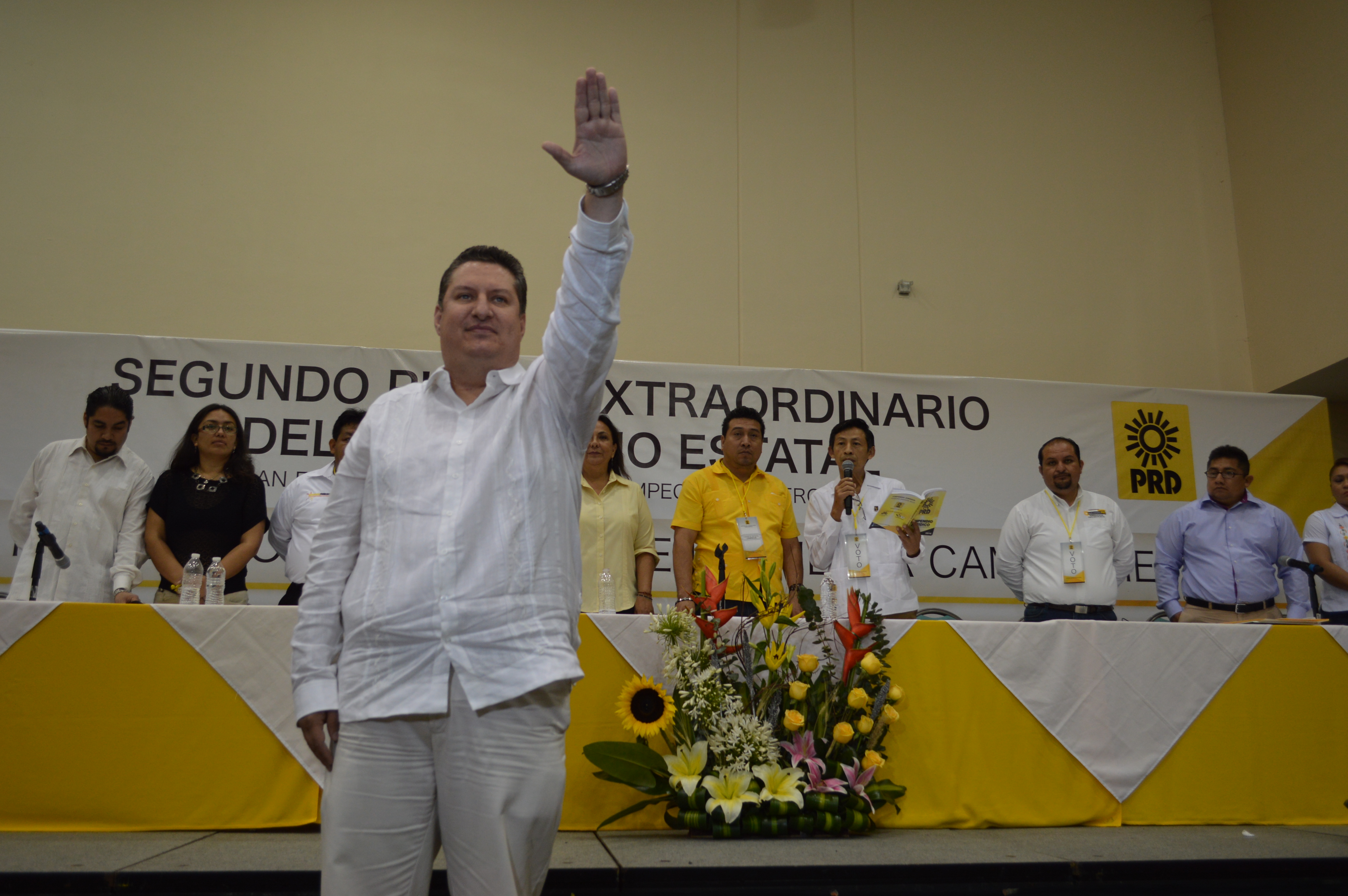 El empresario carmelita, Fernando Dante Imperiale García, fue impuesto como candidato del Partido de la Revolución Democrática (PRD) a la gubernatura del Estado, por los integrantes del Consejo Político Estatal, afines a la familia Bagdadi Pérez. En un evento que se prolongó por más de cuatro horas, Imperiale fue electo con 51 votos de los consejeros del PRD y ahora contenderá por las siglas solaztequistas en los comicios del siete de junio próximo. CAMPECHE, Cam. 18 de enero del 2015.- El empresario carmelita, Fernando Dante Imperiale, fue impuesto como candidato del Partido de la Revolución Democrática (PRD) a la gubernatura del Estado, por los integrantes del Consejo Político Estatal, afines a la familia Bagdadi Pérez. En un evento que se prolongó por más de cuatro horas, Imperiale fue electo con 51 votos de los consejeros del PRD y ahora contenderá por las siglas solaztequistas en los comicios del siete de junio próximo. Cabe señalar que el ex diputado local, Alberto Cutz Can, renunció a sus aspiraciones en el discurso inaugural de los candidatos, por lo que solo participaron Eraclio Soberanis, quien terminó con 10 votos; José Jesús Durán Ruiz, con nueve sufragios, mientras que Fernando Dante Imperiale recibió el aval de 51 de los 71 consejeros que se apersonaron, de los 108 que conforman este cuerpo colegiado. Después de que se registró el resultado de la elección, se le tomó protesta a quien será el aspirante perredista en el estado, que buscará primeramente la conservación del registro del partido del sol azteca. La presencia del líder de “Los Chucos” Cabe señalar que durante este evento, se contó con la presencia de Jesús Ortega Martínez, líder moral del PRD, quien en entrevista, descartó que el PRD esté debilitado, aun cuando ha sido clara la baja de algunos de sus actores principales, tales como Cuauhtémoc Cárdenas y de congresistas de San Lázaro. Manifestó que tal como lo dijo Cárdenas, ante la salida de Porfirio Muñoz Ledo, “nadie en el PRD es indispensable, incluso él”. “Eso que dijo el Ingeniero Cárdenas sigue siendo válido, de tal manera que lo que importa es la gente, los personajes significan, pero lo que importa es la gente”, mencionó. Señaló que en el PRD, hay representantes de miles de perredistas, mientras que en Morena, sólo está la figura de Andrés Manuel López Obrador. Reconoció que Andrés impulsa, pero que el cambio es de los ciudadanos. Confirmó que existe una campaña de desprestigio de la izquierda con el caso Iguala de parte de las grandes televisoras, principalmente de Televisa. Por último, enfatizó que el Pacto por México es algo de lo que más se ha criticado del PRD y descartó que sea motivo de desconfianza de la población que está en contra de las reformas, que ellos aprobaron en esta coalición con el PRI y el PAN.