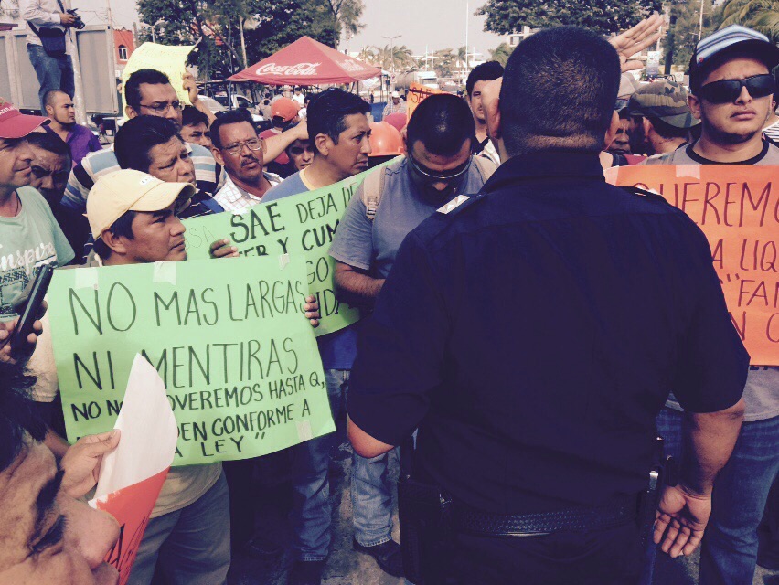 Trabajadores de la empresa Oceanografía, ex propiedad de Amado Yañez Osuna, bloquearon el Puente Zacatal, en demanda de que la compañía petrolera les pague los salarios pendientes. Asimismo, los manifestantes exigieron que se aclare el caso de la desaparición de los 43 estudiantes normalistas de Ayotzinapa y se dé marcha atrás a la Reforma Energética.