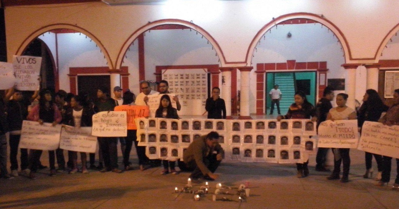 Alrededor de 60 ciudadanos de Escárcega realizaron un acto simbólico, clamando justicia por los cuatro meses de la desaparición de los 43 normalistas de Ayotzinapa, elaborando un altar con velas y flores en forma del número 43. ESCARCEGA, Cam. 27 de enero del 2015.- Alrededor de 60 ciudadanos de Escárcega realizaron en el parque principal de la cabecera del municipio un acto simbólico, clamando justicia por los cuatro meses de la desaparición de los 43 normalistas de Ayotzinapa, elaborando un altar con velas y flores en forma del número 43. Luego de que algunos oradores hablaran ante la población que estaba en el parque sobre las crisis económica, política, social, laboral, de justicia y de seguridad que vive el país, se hizo el pase de lista de los estudiantes desaparecidos al grito de “Presente”, para hacer presente que todos somos ellos y que no habrá descanso hasta saber su paradero y haya castigo a los culpables de su desaparición.