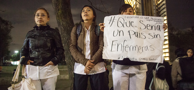 Se les levantan actas administrativas y cuestiona activismo/CIMACFoto: César Martínez López Por Angélica Jocelyn Soto Espinosa Cimacnoticias CIUDAD DE MEXICO, D.F. 30 de enero del 2015.- Integrantes de la Asamblea Intergremial de Enfermeras, Trabajadoras Sociales, Terapeutas y Rehabilitadores Físicos (AIGETT) –que participan en las mesas de negociación con la Secretaría de Salud para mejorar sus condiciones laborales– denunciaron que el gobierno federal incumplió su acuerdo de no reprimir el movimiento. De acuerdo con un comunicado de la AIGETT, el gobierno federal “incumplió su palabra” de respetar el derecho de petición, manifestación y participación de la movilización que busca solucionar la problemática laboral y profesional de las enfermeras y del conjunto del personal de salud, uno de los únicos dos acuerdos firmados hasta ahora por mandos de la Secretaría. Y es que –según se denunció– trabajadoras de la salud que participaron en las marchas del 6 y 16 de enero pasados en esta capital (con las que se consiguió la mesa de negociación con la secretaría) y en las comisiones de trabajo de la AIGETT, han sido llamadas por las autoridades de sus centros de trabajo para que “expliquen los fines del movimiento”. Como botón de muestra –dijo la Asamblea– autoridades del Instituto Mexicano del Seguro Social (IMSS) en Puerto Vallarta, Jalisco, levantaron actas administrativas y citaron a audiencias en la Comisión Disciplinaria a 27 enfermeras que participaron en la movilización del pasado 6 de enero. Según explicó en entrevista José Antonio Vital Galicia, integrante del movimiento, en los documentos de la Unidad de Medicina Familiar –donde se llevan a cabo las audiencias– consta que la falta por las que se acusa a las trabajadoras es haberse ausentado al trabajo durante tres días, lo que supuestamente habría paralizado el servicio médico. No obstante, Vital afirmó que las enfermeras dieron aviso de que se ausentarían y asumieron desde antes de venir al DF que se les descontarían los días no laborados. Del mismo modo, trabajadoras de algunos hospitales de la Secretaría de Salud y de las unidades del Instituto de Seguridad y Servicios Sociales de los Trabajadores del Estado (ISSSTE) denunciaron ante la Asamblea que están siendo “cuestionadas” sobre las acciones del movimiento. Con todo, Vital Galicia informó que sí se llevará a cabo la mesa de trabajo del próximo 3 de febrero en la dependencia federal, pero aclaró que ésta deberá instalarse después de cancelar todas las medidas “represivas y de hostigamiento” contra el personal de las instituciones de salud. Además, dijo que la discusión deberá iniciar y centrarse en la profesionalización y la creación de plazas de licenciatura y especialistas de posgrado, y la basificación del personal de enfermería, que es la principal demanda de su pliego petitorio. La AIGETT señaló que es indispensable la basificación y regularización de más de 100 mil trabajadoras del sector salud; cubrir el déficit de plazas (que rebasa los 50 mil puestos de trabajo “congelados”); y revisar la asignación de plazas y el funcionamiento del escalafón para el personal. El movimiento recordó que los otros puntos de la negociación que siguen pendientes son la cobertura de la plantilla, para que el 80 por ciento en las unidades hospitalarias esté integrado por personal profesional; la creación de plazas de licenciatura; y la revisión de los tabuladores salariales. Según datos de la Secretaría de Salud, el 30 por ciento de las enfermeras en el país tiene licenciatura o estudios de posgrado, pero desde 2006 a la fecha el Programa de Profesionalización de Enfermería, Trabajo Social, Terapistas Físicos y Rehabilitadores sólo ha beneficiado a 18 mil trabajadoras, sin informar cuántas de ellas pertenecen al IMSS e ISSTE. De acuerdo con estimaciones de la AIGETT se necesitarán más de 15 años para profesionalizar a más de 32 mil enfermeras.