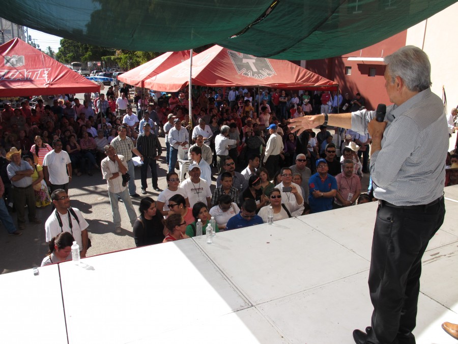 El presidente del Consejo Nacional de Morena, Andrés Manuel López Obrador, aseguró que el partido político Morena crece como la espuma, tanto en Sinaloa, como a nivel nacional, además de que le irá bien en las elecciones del siete de junio, porque es la única esperanza y la única oposición. El político tabasqueño sostuvo que a lo largo de todo el país, los mexicanos están hartos del “PRIAN” y se van a reivindicar, porque fueron engañados. EL FUERTE, Sin. 7 de febrero de 2015.- El presidente del Consejo Nacional de Morena, Andrés Manuel López Obrador, aseguró que el partido político Morena crece como la espuma, tanto en Sinaloa, como a nivel nacional, además de que le irá bien en las elecciones del siete de junio, porque es la única esperanza y la única oposición. Al conceder una entrevista, el político tabasqueño sostuvo que a lo largo de todo el país, los mexicanos están hartos del “PRIAN” y se van a reivindicar, porque fueron engañados. En El Fuerte, expuso que si los mexicanos quieren que siga la situación del país igual como ahora, que haya desempleo, abandono en el campo, los jóvenes no tengan oportunidad, ni de trabajo, ni estudio, que siga la inseguridad y la violencia, entonces que voten por el PRI y por el PAN, pero si quieren un cambio verdadero, entonces la opción es Morena. Afirmó que a los demás partidos los maneja (Juan) Millán, jefe de Malova, y el jefe de Millán es (Carlos) Salinas de Gortari, la mafia de siempre. “Con ellos, no hay ninguna esperanza de que se tenga un gobierno honrado, eficiente y austero”, indicó. Explicó que para entender la política en Sinaloa y en México, es necesario leer novelas policiacas, porque en el país hay una banda de malhechores, una pandilla de rufianes, y ante ello le irá bien a Morena, porque ni el PRI, ni el PAN u otros partidos no son oposición en Sinaloa. Sostuvo que personajes como el gobernador del estado, Mario López Valdez (Malova), que engañan a los ciudadanos solo para robar, son gatopardistas, lo cual “consiste en que las cosas en apariencia cambian para seguir igual, como ocurrió con Vicente Fox”. Puso de ejemplo que Malova se comprometió que iba a llevar a cabo un cambio, pero solo cambió las placas, les quitó el tomate y las puso de color azul. A quienes lo acusan de proteger al alcalde de Iguala, José Luis Abarca, López Obrador contestó que quienes hacen esos comentarios son empleados de Salinas, Millán y son los achichincles de la mafia del poder. Acabar con gobierno improductivo y de privilegios En otro tema, el ex candidato presidencial dijo que es inviable realizar un recorte de 124 mil millones de pesos al presupuesto público—como el que anunció recientemente Luis Videgaray, secretario de Hacienda— sin cancelar la compra del avión del priista Enrique Peña Nieto que vale siete mil millones de pesos. “Debe terminarse con el gobierno improductivo y de privilegios, donde cada diputado gana 300 mil pesos mensuales, más los sueldos de los senadores y ministros de la Suprema Corte de Justicia de la Nación, que ganan hasta 600 mil pesos, mientras que los reporteros ganan entre 15 mil, 20 mil pesos mensuales los que más ganan”, señaló, al decir que son muy cínicos y corruptos los funcionarios en México. Agradeció la presencia de los ciudadanos que asistieron a la conferencia colectiva sobre la situación socioeconómica y política de México en el municipio El Fuerte; explicó que Morena va creciendo y actualmente existen condiciones para lograr un cambio. “La gente está despertando, todo esto que está pasando lo advertimos, dijimos que si no se llevaba a cabo un cambio nos iban a llevar al despeñadero; duele tener la razón. Ahora tenemos que seguir adelante”, añadió. Resaltó que el propósito de Morena es transformar al país, pues recordó: “sólo han habido tres transformaciones en el historia de México: la Independencia, la Reforma y la Revolución”. “Nosotros queremos llevar a cabo la cuarta transformación de la vida pública del país, por eso necesitamos aplicarnos a fondo, no perder la fe, no perder las esperanzas y seguir adelante”, indicó. Cuando Morena triunfe, subrayó, se mejorará la situación económica y social de nuestro pueblo. Saldrá de la pobreza millones de mexicanos, se impulsará la actividad productiva, se fijarán precios de garantía para productos del campo y empleos. Confió en que “si se sigue trabajando, en el 2018 se puede lograr que 30 millones de mexicanos respalden a Morena, lo que complicará los trucos a los que está acostumbrada la mafia del poder. No les va a valer ningún fraude.” El presidente del Consejo Nacional, recordó que en 2012 impusieron al priista Peña Nieto comprando cinco millones de votos en las zonas más pobres del país, entregaban tarjetas Soriana, dinero en efectivo, despensas, materiales de construcción, tinacos. Mencionó que la región de El Fuerte es donde el PRIAN tiene un reservorio de votos, pero no en las ciudades más grandes del país. Alertó que los mañosos van a seguir con la compra del voto, porque “gallina que come huevo ni que le quemen el pico”. Ofrece regreso de equipo de béisbol En Guasave, Sinaloa se comprometió a que cuando Morena triunfe habrá bienestar, además de que regresará el equipo de béisbol de la región. Recordó que en 2006, cuando era candidato a la Presidencia de México, tenía planeado traer un equipo de las Grandes Ligas a la Ciudad de México. “Ya teníamos establecido que se necesitaba hacer un estadio techado, y el equipo de México se iba a conformar con puro pelotero de América Latina y El Caribe. Estoy a favor de todos los deportes, se deben impulsar porque es la mejor medicina preventiva”, comentó. Aseguró que México es un país con mucha riqueza, “que tiene de todo pero se lo clavan todo”. De 2009 a la fecha, explicó, han extraído cobre y plata equivalente a todo el oro y plata que s
