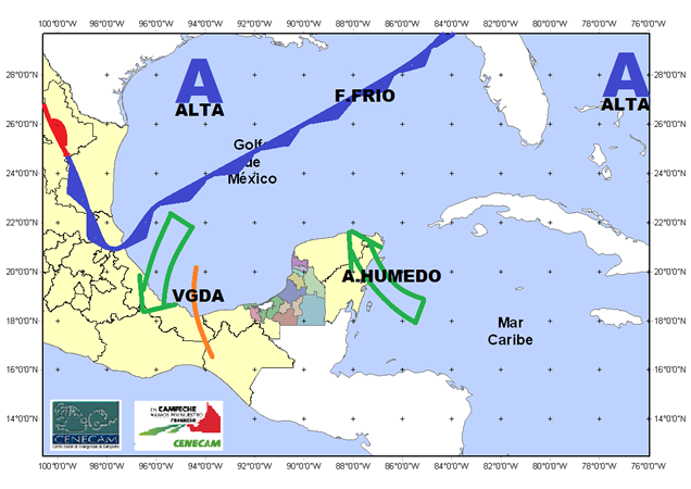17cen El Centro Estatal de Emergencias de Campeche dio a conocer que una nueva masa de aire frío recorre el Golfo de México y se espera que el frente frío que provocará, arribe a Campeche a primera hora de este miércoles, ocasionando cambios en las condiciones del tiempo, así como un nuevo evento de “Norte” fuerte. CAMPECHE, Cam. 17 de febrero del 2015.- El Centro Estatal de Emergencias de Campeche (Cenecam) dio a conocer que una nueva masa de aire frío recorre el Golfo de México y se espera que el frente frío que provocará, arribe a Campeche a primera hora de este miércoles, ocasionando cambios en las condiciones del tiempo, así como un nuevo evento de “Norte” fuerte. Por lo anterior, el Cenecam recomendó a la población tomar sus precauciones ante los efectos de lluvia y viento desde primera hora de este miércoles, así como por temperaturas frescas a bajas. “Asimismo, se recuerda proteger a los menores de edad y a las personas de edad avanzada ante estos cambios de temperatura”, expresó. “A la navegación marítima, se le recomienda estar pendiente a los avisos de su Capitanía de Puerto correspondiente”, puntualizó. Por lo pronto, a partir de las seis de la tarde, la Capitanía de Puerto de Lerma cerró el puerto a la navegación menor, hasta nuevo aviso, ante las inclemencias del tiempo que se avecinan. El organismo estatal manifestó que “los cambios en las condiciones del tiempo se manifestarán con aumento de nublados, lluvias ligeras a moderadas en gran parte de la entidad, sobre todo en el suroeste, donde pueden estar más concentradas”. También indicó que se espera “viento del norte, de entre 30 a 45 kilómetros por hora, con rachas que pueden superar los 60 kilómetros por hora” y precisó que “los efectos de lluvia y viento tenderán a disminuir paulatinamente hacia el jueves y viernes”. “Las temperaturas tendrán un descenso a partir del miércoles, dejando máximas entre 25 y 30 grados centígrados, y mínimas de entre los 14 y los 19 grados, a primera hora de la mañana, sin descartar temperaturas menores, sobre todo en municipios del centro, norte y oriente de la entidad”, agregó.