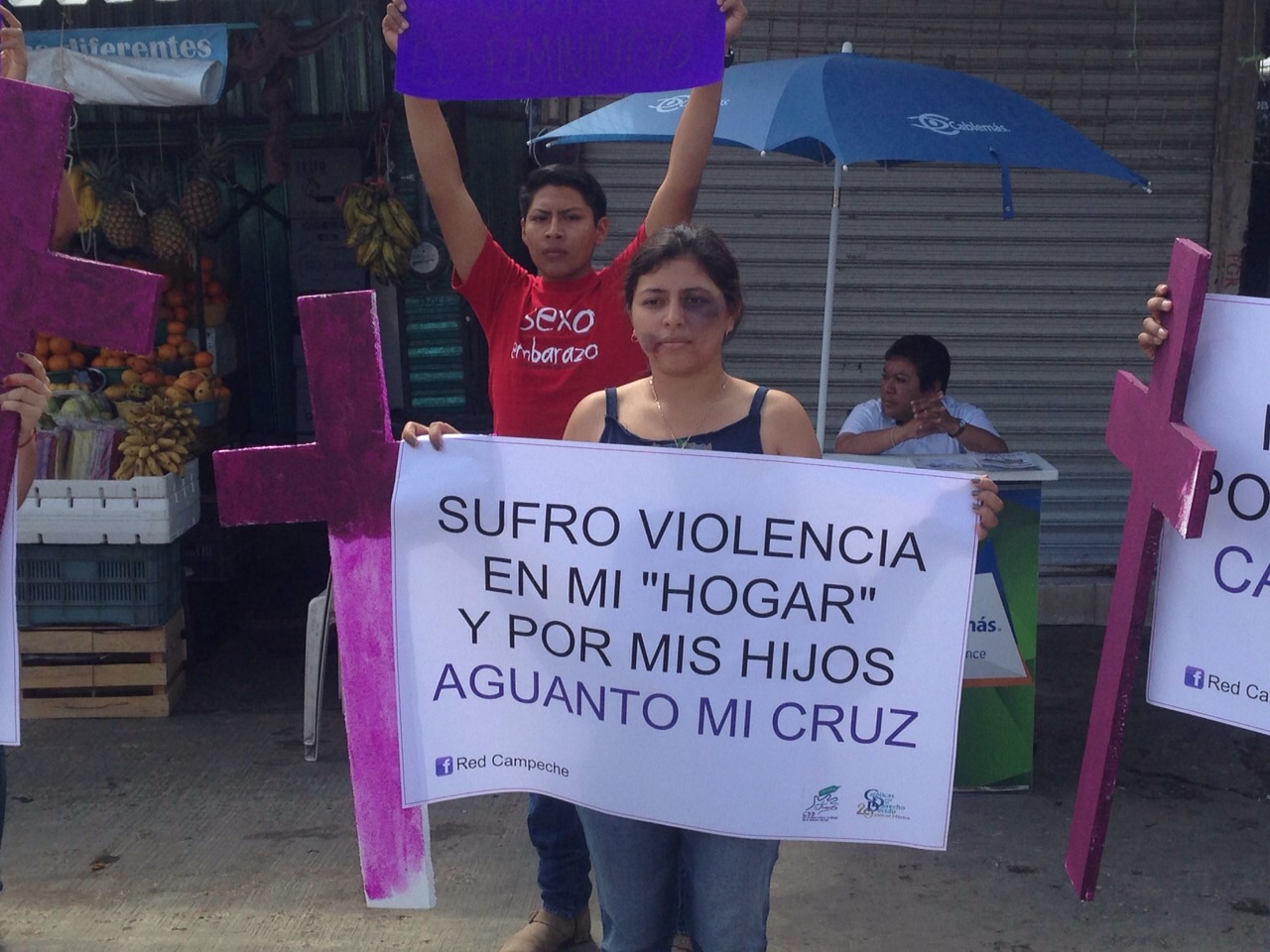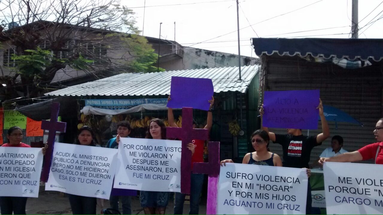 Los activistas pertenecientes a ala RNCJDD se manifestaron con pancartas en mano, que hacían alusión a frases que mujeres que sufren violencia suelen alegar, cruces rosadas y maquillaje en el rostro, que simulaba la violencia muy real en contra de las mujeres. Por Ronny Aguilar CAMPECHE, Cam. 7 de marzo.- La Red Nacional Católica de Jóvenes por el Derecho a Decidir (RNCJDD) hicieron un “performance” en el mercado “Pedro Sáinz de Baranda”, con motivo de del Día Internacional de la Mujer, para pronunciarse en contra de la violencia de género y los feminicidios en el estado de Campeche. Los activistas pertenecientes a ala RNCJDD se manifestaron con pancartas en mano, que hacían alusión a frases que mujeres que sufren violencia suelen alegar, cruces rosadas y maquillaje en el rostro, que simulaba la violencia muy real en contra de las mujeres. Algunas de las frases que se incluían dentro de sus pancartas, pretendieron generar una conciencia entre quienes observaron la protesta, tales como: “Sufro Violencia en mi “hogar” y “Por mis hijos aguanto mi cruz”, “Por cómo me visto, me violaron, después me asesinaron, esa fue mi cruz”, “Acudí al Ministerio Público a denunciar, pero no me hicieron caso, solo me dijeron que esa es tu cruz” y “En mi matrimonio, me han golpeado, pero en mi iglesia me dijeron que cargue con mí cruz”. Plantearon que el ocho de marzo no es un día de celebración, sino de reivindicación de derechos de las mujeres y de lucha porque la igualdad de género no solo sé que en el papel, sino en los hechos, además del respeto a las leyes y reglamentos. “Hay que recordar que este día es importante, pues la conmemoración del Día de la Mujer es nacida de una historia sangrienta, en donde el abuso, la explotación y la impunidad causaron la muerte de 146 mujeres, algunas quemadas y otras muertas en la banqueta, porque se arrojaron ante el temor de las llamas”, indicaron. “Por esta razón, la ONU, en 1975, comenzó a celebrar el ocho de marzo como el Día Internacional de la Mujer y en diciembre de 1977, dos años más tarde, la Asamblea General de la ONU proclamó el ocho de marzo como Día Internacional por los Derechos de la Mujer y la Paz Internacional. Esta adhesión de la ONU llevó a varios países (incluido México) a oficializar este día dentro de sus calendarios”, agregaron. “Tenemos que reflexionar y actuar a partir de una visión basada en los derechos humanos y la perspectiva de género, pues hoy en día existen muchas violaciones y algunas de ellas llevan a la muerte de las mujeres, como son los tres feminicidios que van en el estado, este año”, puntualizaron. Hicieron una llamado a las autoridades a seguir previniendo y sancionando las violaciones de los derechos humanos de las mujeres y fortalecer las estrategias de prevención ante la inseguridad que se vive en el estado. “De igual manera, hacemos un llamado a la Iglesia Católica a no ser indiferente ante la violencia y los abusos cometidos hacia las mujeres y pedimos que dejen de dar mensajes como “la mujer debe de estar sujeta al hombre, porque el hombre es cabeza de la mujer”, “que las mujeres deben de ser sumisas al hombre, pues solo son costilla de él” y “que el amor todo lo disculpa, todo lo supera, todo lo soporta”, como católicas y católicas creemos que el mensaje de Cristo no es éste, sino que nos invita a amar, respetar y no a despreciar”, finalizaron.