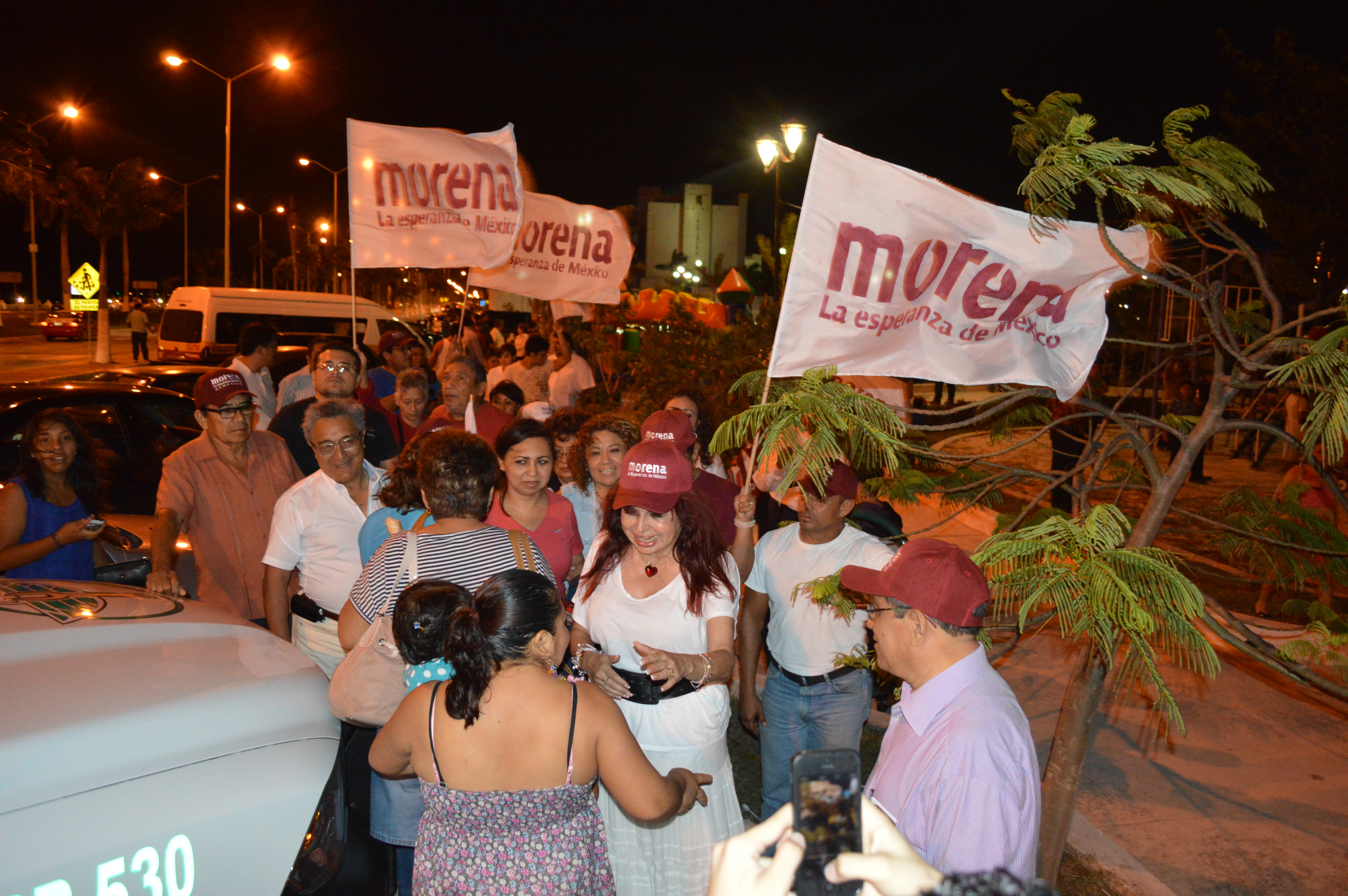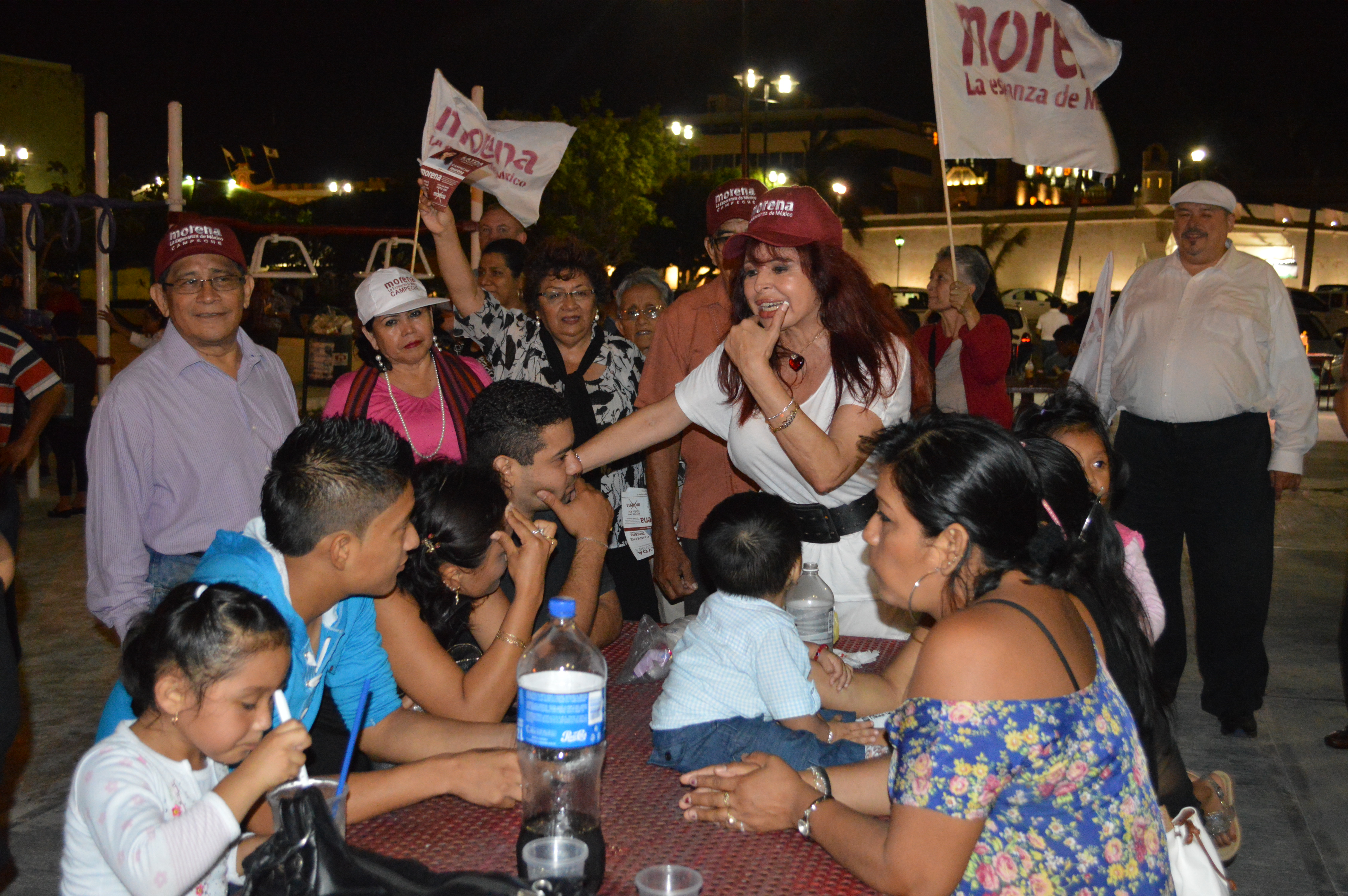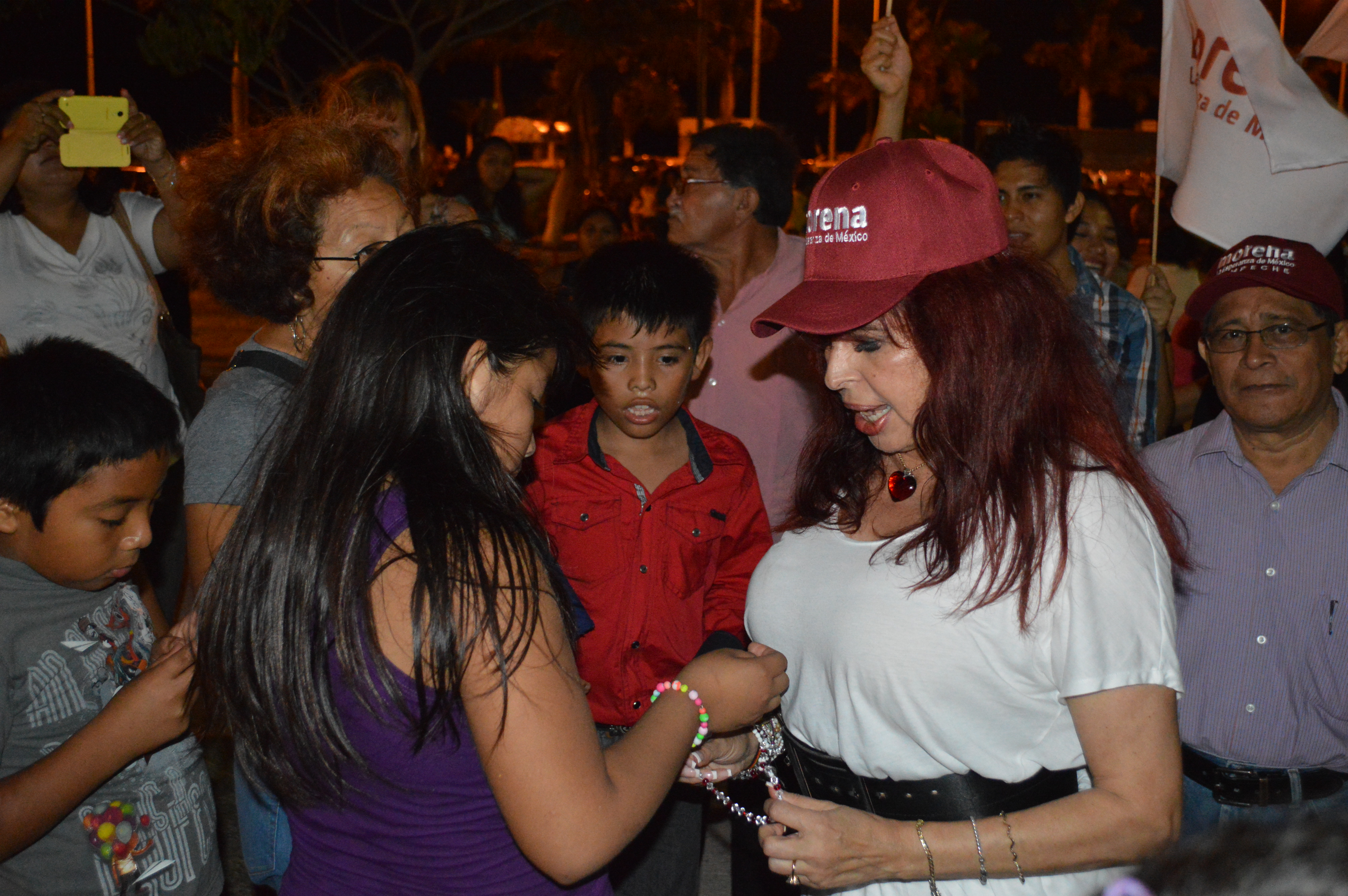 La candidata de Morena a la gubernatura realiza recorrido en el malecón y el parque Moch Cohuó, para saludar a los ciudadanos e invitarlos a hacer conciencia de las afectaciones de 86 años de dictadura priísta. 15moch1 CAMPECHE, Cam. 15 de marzo del 2015.- La candidata del partido político Morena a la gubernatura, Layda Sansores San Román, realizó un recorrido por el malecón y el parque Moch Cohuó, en el cual pidió a los ciudadanos que tomen consciencia de las afectaciones de 86 años de la dictadura priísta en el Estado de Campeche. “Necesitamos del apoyo de todos los campechanos para sacar a este gobierno de 86 años, que nos ha mal gobernado, ya es la hora en que el pueblo ha despertado y será quien decida y no el dinero, el futuro del Estado”, destacó. La senadora recibió el afecto de la población que se encontraba en el parque y aprovechó para explicar los perjuicios que han traído al país las reformas estructurales impuestas por el priísta Enrique Peña Nieto. En el diálogo con los ciudadanos, Sansores San Román planteó que es necesario que se haga un contrapeso al gobierno, para que no se permita la privatización del agua, como lo hicieron con el petróleo y con la electricidad, mismas que cada vez tienen un costo más elevado. En compañía de los brigadistas y de algunos niños, la aspirante al gobierno estatal cantó y bailó durante algunos momentos en el Moch Cohuó. Entre porras y banderas, Layda Sansores pidió también la confianza de los campechanos para la contienda electoral del siete de junio próximo. En su caminata, saludó a un grupo de turistas europeos que le desearon éxito en la contienda electoral y le hicieron saber que en muchas partes del mundo, se sabe de la brutal realidad que padece México y del nivel de corrupción e impunidad de los gobiernos federales del PRI y el PAN. “Ya llegó la hora de que gobierne alguien que se preocupe y ocupe de atender nuestras necesidades”, expresaron ciudadanos que se encontraban en el centro de recreo. Pidió a los campechanos apoyar su lucha y recalcó que a pesar de que hay muchos candidatos, con mucho respeto, pero solo hay una oposición real a este régimen corrupto que se ha mantenido como una dictadura en Campeche. Finalmente y alrededor de las 9 de la noche, Layda Sansores se despidió de los asistentes a este parque entre música, cantos y muestras de afecto de las familias que se encontraban en el sitio. 15moch2