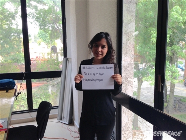 21gre CIUDAD DE MEXICO, D.F. 21 de marzo del 2015.- La agrupación ambientalista Greenpeace invitó a la población a sumarse a la defensa del agua y recordó que es un recurso vital que muchos damos por sentado. “Es algo que necesitamos para vivir. Es algo que sale de la llave, la utilizamos para preparamos un café todas las mañanas  y también para bañarnos. Algo que corre en los ríos, que cae del cielo y que no pertenece a nadie, pero a la vez es de todos. Es un derecho humano”, expresó. “Un bien por el que cada 22 de Marzo, Día Mundial del Agua, el planeta entero reflexiona en torno a la importancia del líquido. Pero aquí en México, este año no vamos a celebrar. En vez de eso vamos a levantar la voz para defender el agua, un bien natural que hoy está en peligro: la Ley General de Aguas propuesta por diputados del PRI, PAN y PRD”, puntualizó. Greenpeace México dijo que frente a este proyecto de ley, orientado a favorecer la industria por encima de la gente, a legalizar la contaminación, a propiciar todavía más la privatización e impulsar la criminalización de la investigación independiente, está la hecha por esta organización ecologista. “Gracias a una coalición de académicos, científicos, ONGs, comunidades indígenas y ciudadanos ya hemos logrado más que 60 mil firmas en una petición de Avaaz, un movimiento al que también se han unido celebridades, actores, músicos y más de 14 mil estudiantes, académicos y activistas”, precisó. “Todos ellos han lanzado un llamado para debatir públicamente las leyes con especialistas y expertos. De hecho, han ido más lejos aún, exigiendo nuevas opciones. ¡Y sí que las hay: una iniciativa ciudadana que Greenpeace, junto con más de 450 organizaciones, desarrolló durante dos años. Si esa propuesta fuera escuchada y aprobada sí que habría motivos para que todos festejáramos”, detalló. “Este movimiento es sólo el principio porque sabemos que juntos podemos asegurar que México elija otro camino en el que se asegurá que todos podemos contar el derecho al agua para hoy y para el futuro”, apuntó. “Por eso este domingo 22 de marzo vamos a levantar la voz para defender el agua contra los intereses de la industria y la impunidad. ¡Ven con nosotros! Súmate: El domingo 22 en muchas ciudades habrá clausuras simbólicas de oficinas de Conagua, las autoridades que no están viendo por el  derecho al agua”, abundó. “Tuitea tu selfie: El domingo 22 haremos una lluvia de Tweets, sumándonos al hashtag del Día Mundial del Agua #WaterIs. Vamos a mostrar que el agua es para todos, el agua es vital, el agua es un derecho humano y decimos no a la Ley General de Aguas”, finalizó. 21gre1