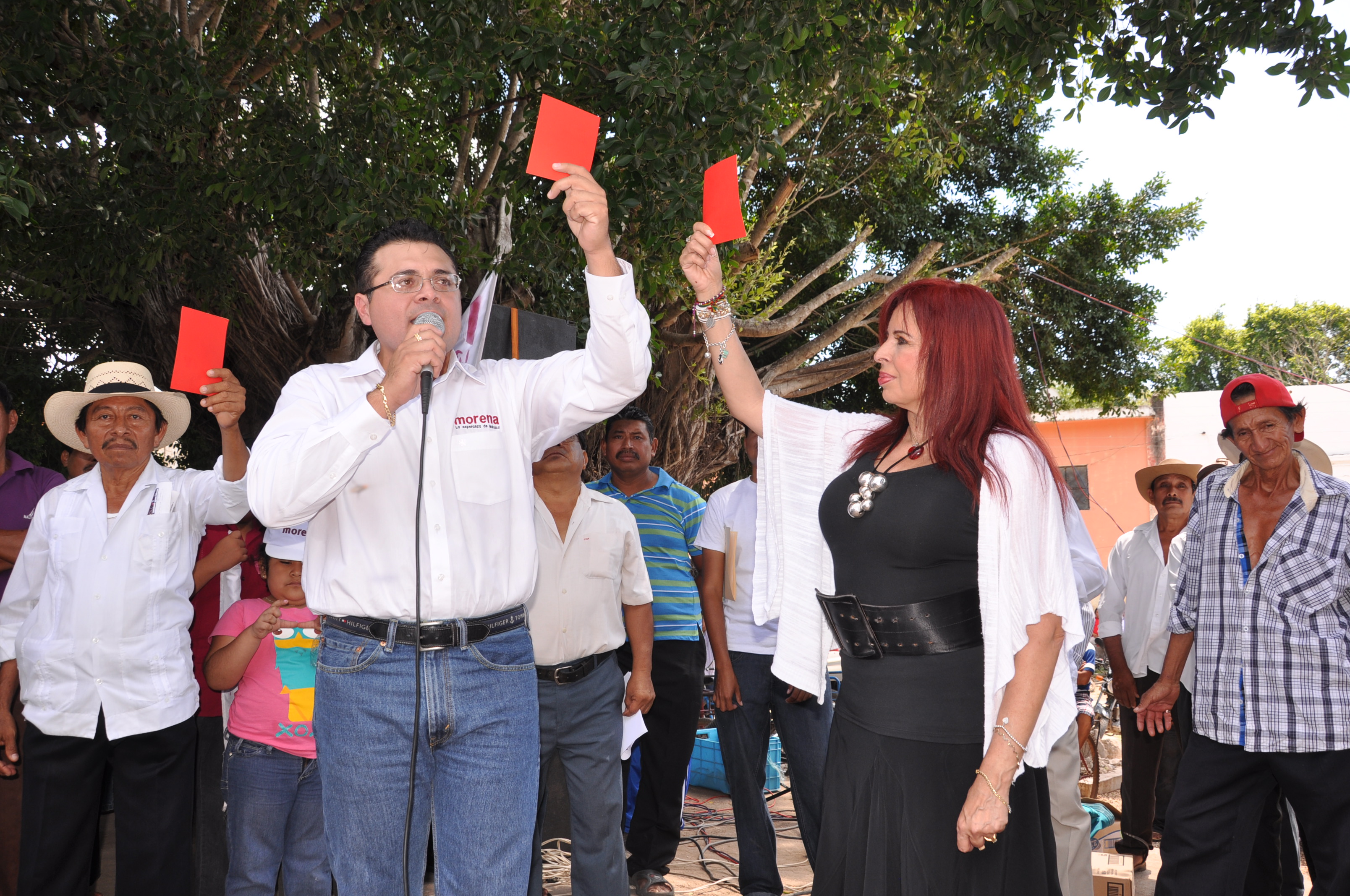 Por corrupción, los dineros se hacen polvo Durante su discurso, la senadora afirmó que el pueblo aprende y en el PRI se acabaron los líderes que se ensuciaban los zapatos por el bienestar del pueblo, simulando todas las decisiones que se toman en el estado y en el país, dejando al pueblo en el desamparo. “Ponen de pretexto que el recurso se queda en la cabecera municipal, pero no es verdad, se queda en los bolsillos de funcionarios corruptos y sin escrúpulos. Ese es el problema de Campeche y yo insisto, recalcando en cada lugar, porque nosotros lo permitimos por muchos años, dejando que los corruptos se reproduzcan, se multiplicaron como células cancerosas, aquí les vale el ser corruptos y viven como señores, porque se ponen guayaberas blancas, primero debemos de construir una ética pública, el ciudadano debe condenar y por eso mi primer punto de gobierno fue la tarjeta roja a los corruptos”, recordó. “Cuando vean pasar a su presidente de la Junta, le sacan la tarjeta roja y le dicen: fuera corrupto, lárgate, no te queremos en nuestro gobierno, no mereces estar en el juego limpio y democrático al que aspira Campeche, ustedes son los grandes árbitros, no podemos permitir la corrupción como parte del paisaje campechano y la impunidad, porque por eso los dineros se hacen polvo, tenemos el ingreso por cabeza per cápita más alto del país, y la miseria más lacerante del país, estamos en el último lugar de crecimiento económico”, lamentó. Enérgico llamado a no vender el voto Sansores San Román hizo un enérgico llamado a los pobladores de Bolonchén, para que de ninguna manera permita el comercio del voto, pues el voto es sagrado, es la fe o la de credibilidad de un candidato y de un pueblo que da la confianza. “Aquí tiene que haber una promesa en Bolonchén, no pueden vender su voto, se vuelven las campañas electorales las fiestas de la filantropía, no son generosos, regalan despensas y láminas, pero qué es lo que realmente regalan, lo que a ustedes les sacan de la bolsa y ustedes dan gracias al candidato, cuando te dan lo que te acaban de quitar, te están dando lo que quitaron a tu hijo y todavía lo aceptas con una sonrisa y le das tu voto, que es lo más sagrado, porque es un acto de confianza”, expuso. “Sacando cuentas, si les dan mil pesos, equivale a seis centavos diarios, no sé si por seis centavos vale la dignidad del futuro de tus hijos, porque por eso lo jóvenes no tienen escuelas, no hay trabajo, porque 86 años de un partido en el poder se conviene en dictadura, se pierden los contrapesos y Morena es el único contrapeso”, abundó. Aseguró que los peores rateros del estado son los burócratas corruptos. “Los funcionarios son igual a ladrones, a rateros vulgares, pero muchas veces el ratero roba por hambre, ellos roban por ambiciones desmedidas, por desprecio al pueblo, no les importa si el pueblo sufre, no les importa nada, pero en este pueblo hay constancia de su valor, sus levantamientos y sus rebeldías, por eso tiene que empezar a poner un alto, aquí está fuerte nuestra raíz indígena, son pueblos bravos, que se opusieron a la conquista y fueron los últimos en poder conquistar”, aseveró. “No se requiere de revoluciones armadas, sino que por medio de las urnas, se le dará un tiro de gracia a un PRI, que hace muchos años se debió de haber entregado”, finalizó.
