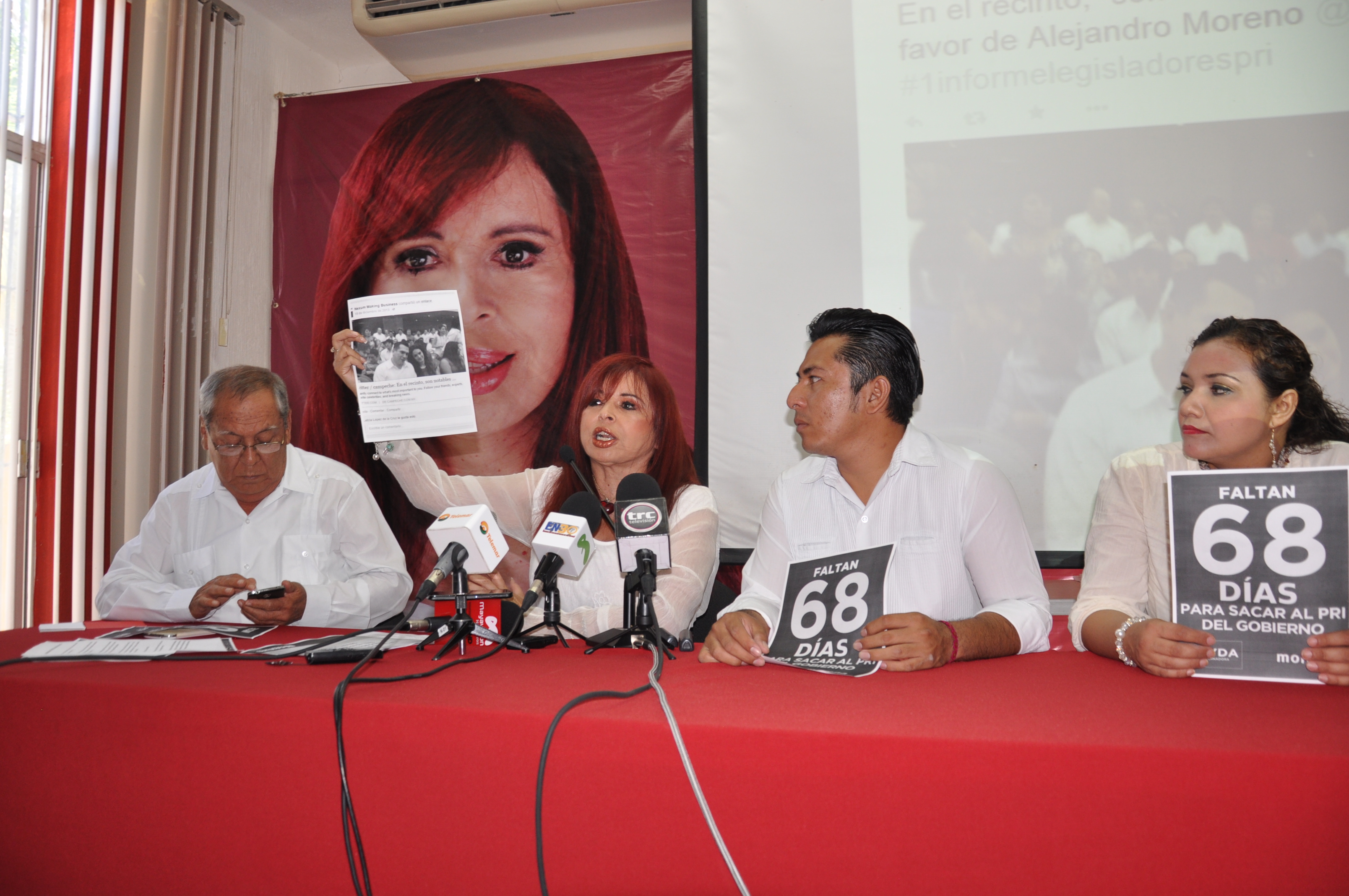 También señala que ha sido financiada con recursos del Fideicomiso del 2% sobre Nómina y afirma que lo que hizo fue una “encuesta ficción”, perversa, irresponsable y mentirosa. CAMPECHE, Cam. 1 de abril de 2015.- La candidata de Morena a la gubernatura, Layda Sansores San Román, mostró doble “tarjeta roja” a la empresa Nexum. por estar vinculada con el gobierno del Estado y con el candidato del PRI, Alejandro Moreno Cárdenas, y publicar una “encuesta ficción” en un diario local, que es perversa, irresponsable y mentirosa. “Así que para las encuestas “patito”, doble “tarjeta roja”, y que también nos informe qué hacía en el gobierno, porque tenía tantas actividades, que promocionó las PyMES y no sé qué, pero yo no sé a quién benefició, pero ya vemos los parásitos del gobierno que ahora se dedican a ser encuestadores ¡Qué vergüenza!”, expresó. En conferencia de prensa, en la sede de Morena, Sansores San Román señaló que la encuesta realizada por la empresa Nexum, quiere imponer una idea que es siempre favorable a quien manda a hacer la encuesta, que se ha convertido no en un medio de evaluación, sino en un medio de propaganda, y afirmó que es perverso que se quiera manipular la percepción de la gente a base de encuestas mentirosas, que no tienen absolutamente ningún sustento. “Queríamos hacerles algunos comentarios sobre la encuesta que fue publicada el día de ayer, porque nos parece que es irresponsable y que las encuestas, es claro, no es que haya un margen de error, es que simplemente esta es una encuesta ficción, eso es lo grave”, indicó. Primero, la aspirante morenista detalló que el propietario de Nexum es Luciano Vera, ex presidente de Desarrollo Empresarial de Campeche, y al buscar en las funciones de su empresa, hace de todo, menos encuestas, lo cual es algo sospechoso. En segundo lugar, también refirió que Arturo May Mass, quien fue secretario de Finanzas del PRI, era el que pagaba y subsidiaba la empresa de Vera, con el Fideicomiso del 2 por ciento del impuesto sobre nómina, que es invertido en encuestadoras “patito” y no para apoyar los proyectos productivos de las compañías campechanas. “Sin embargo, no lo usan para eso, lo usan para hacer encuestas que favorezcan a sus candidatos, esto es lo que me parece verdaderamente deleznable, reprobable, y que no se puede permitir porque se paga con recursos públicos y, sobre todo, con recursos de empresarios que ha costado mucho que ellos aporten ese 2 por ciento, pero no se está invirtiendo en lo que fue comprometido. Ya desde ahí va bastante mal”, aseveró. “Con ese 2 por ciento sobre la nómina, el señor Luciano Vera quién sabe cuánto dinero habrá ganado, entonces ahora nos vamos a meter a otra investigación. ¿Cuánto dinero recibió el señor Luciano Vera durante este sexenio? ¿Desde cuándo trabajó para el gobierno de Campeche y ahora sale de la noche a la mañana como encuestador?”, cuestionó. Probada relación con el candidato del PRI De igual modo, Layda Sansores presentó fotografías de la página web de la compañía, con la que se muestra la relación de Nexum con el candidato priísta y con otros personajes priístas, como la alcaldesa Ana Martha Escalante Castillo. “Es un retrato de lo que está sucediendo, además, como fotografía, en este instante. Y resulta que esta encuesta “patito”, irresponsable, entre otras cosas, es fanática, seguidora de Alito. Aquí está el enlace en Facebook, no tienen vergüenza, tan siquiera busquen a unas que disimulen, que tengan un barniz de seriedad; aquí está haciendo un enlace y diciendo “Campeche en el recinto, son notables los aplausos y las porras para Alito”, eso dice él y luego hace esta encuesta, es una burla a los ciudadanos, creo que esto no se puede seguir permitiendo como sociedad”, agregó. “Nosotros estamos convencidos de que las encuestas se ganan en las urnas y que de cualquier manera, sí son un instrumento muy valioso, pero para quien realmente lo utiliza, no como medio propagandístico, nosotros tenemos nuestras encuestas y ni las vamos a publicar, no; a nosotros nos ha servido para hacer nuestra estrategia, para diseñar nuestra estrategia y para mantenernos muy optimistas, pero ni nos interesa que la sepan, eso pueden estar seguros, porque no es propaganda”, externó. Anunció también que pedirán al Instituto Electoral del Estado de Campeche (IEEC) toda la documentación referente a esta empresa y de la encuesta, ya que los datos que se presentan son muy imprecisos, no dice si es por partidos, si es por candidatos o cuánto costó la encuesta, añadiendo que no sólo deberían de regularse este tipo de situaciones, sino también se deberían de sancionar a empresas tipo fantasma, a empresas basura que están tratando de engañar a la gente. “Aquí hay dos encuestas que ellos manejaron el día de ayer y cada una pone cuánto costó la encuesta, cuántos se encuestaron, están hablando de cerca de 800; él hizo dos mil 400, decía Mitofsky que quien hace más de 800 está perdiendo su dinero y está engañando a la gente, y este es un caso típico”, aseveró. “¿Para qué necesita tantas para decir tantas mentiras o para querer convencer que están diciendo la verdad? Y si se ve en las encuestas, aquí tiene la fecha en que se recolecta la información y la fecha en la que se publica; esta encuesta de Impacto empieza a recolectar el cinco de marzo y el nueve de marzo ya estaba informando, cuatro días después, porque son fotografías, y esta empresa del señor “patito”, le llevó 20 días en que la inicia y en que la publica. Cuando él presenta sus resultados, ya esta es otra historia, es otro paisaje”, abundó. “Nos parece irresponsable, informal totalmente lo que está diciendo y que nosotros insistiremos en que la reglamentación debe ser castigar estos casos de corrupción, sancionarlos económicamente, incluso, quitándoles la posibili