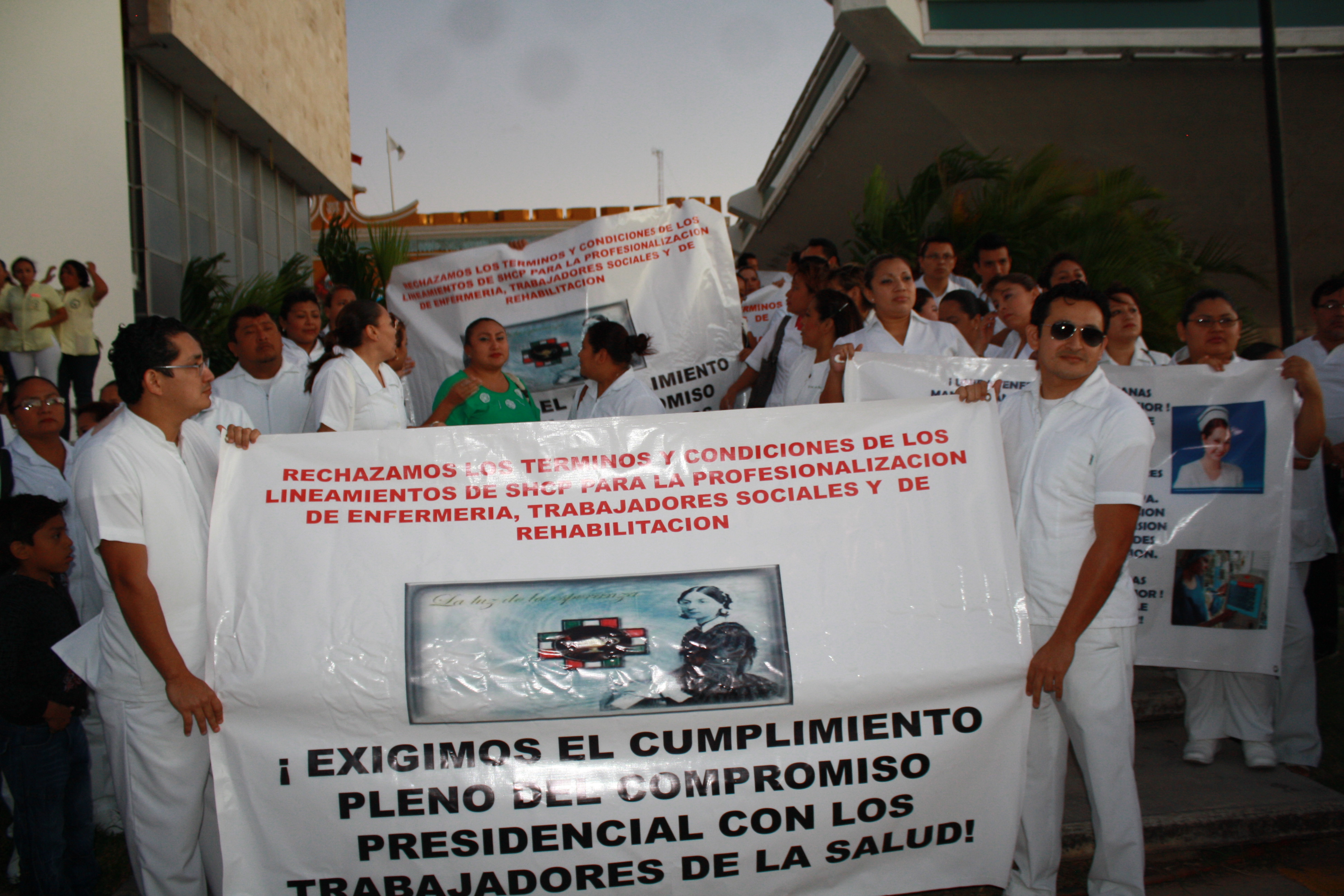 Se reanudaría mesa para resolver demanda de profesionalización Por Angélica Jocelyn Soto Espinosa Cimacnoticias CIUDAD DE MEXICO, D.F. 8 de abril del 2015.- Personal sanitario que exige al gobierno federal mejoras laborales para todo el sector, se reunió con autoridades de la Secretaría de Salud, para solicitar que se reanude la mesa de negociación para modificar el Programa de Profesionalización para las y los trabajadores. Ayer, integrantes de la Asamblea Intergremial de Enfermeras, Trabajadoras Sociales, Terapistas Físicos y Rehabilitadores (AIGET) y participantes de otros movimientos similares se reunieron –a petición de Mercedes Juan López, secretaria de Salud– con directivos de esta dependencia. José Antonio Vital Galicia, integrante del movimiento de enfermeras y enfermeros, dijo a Cimacnoticias que el llamado de la Secretaría de Salud fue consecuencia de las movilizaciones del gremio en diferentes centros de salud del país, para convocar a todo el personal a protestar este siete de abril –en el marco del Día Mundial de la Salud– frente a las instalaciones de la dependencia federal. No obstante, este lunes seis de abril, María de las Nieves García Fernández, secretaria técnica del Consejo Nacional de la Salud, llamó a Vital Galicia –por órdenes de Mercedes Juan– para ofrecer que representantes del gremio se reunieran con ella, con Sebastián García Saiso, director general de Calidad y Educación en Salud, y otros funcionarios de la Secretaría. En consecuencia, una comitiva de enfermeros se trasladó ayer a la Dirección General de Calidad y Educación en Salud, en la colonia Polanco, en esta capital, y otra comitiva se “plantó” frente a la sede de la dependencia en las cercanías del Metro Chapultepec. Durante la reunión en la Secretaría de Salud, las y los trabajadores entregaron un documento para exigir a Enrique Peña Nieto, titular del Ejecutivo federal, y a Mercedes Juan que se fortalezcan las instituciones para hacer efectivo, oportuno e integral el cuidado de la salud y el acceso a los servicios médicos. Asimismo, el personal sanitario pidió la basificación, regularización y programas de profesionalización para toda la planta laboral, y solicitaron se emita una nueva convocatoria para promover la profesionalización de las enfermeras. El movimiento exigió también la asignación de recursos financieros necesarios a las unidades de salud; la cancelación de la “privatización” de los servicios médicos; el pago de jubilaciones y pensiones para el personal retirado; alto a los “actos represivos” y respeto a los derechos laborales, profesionales y sindicales del gremio. El personal de salud demandó la reinstalación de la mesa de negociación conseguida tras la movilización en esta ciudad el pasado 6 de enero, y que fue suspendida el tres de febrero, porque la Secretaría negó el acceso a la comitiva que representaba a las y los trabajadores del sector por superar los 20 integrantes. En respuesta a este nuevo pliego petitorio que enfermeras y enfermeros entregaron la víspera, los directivos de la Secretaría aceptaron llevar el documento a Mercedes Juan, así como la consideración de reanudar la mesa de negociación entre el 20 y 24 de abril próximos. En tanto, Vital Galicia adelantó que el próximo 16 de abril habrá una asamblea informativa para detallar la fecha exacta en la que se reinstalará la mesa de negociación, y consensuar las condiciones en las que ésta se llevará a cabo, ya que la dependencia incumplió el primer acuerdo de no permitir represalias contra las y los trabajadores, y tampoco ha reformado el Programa de Profesionalización. La Secretaría de Salud no ha informado sobre estos acuerdos en su portal web y redes sociales, pero Vital Galicia mostró confianza en que la mesa de negociación se reanude, aunque aclaró que esta vez el gremio insistirá en que se resuelva la promoción por profesionalización de las y los enfermeros que se preparan para lograr un mejor sueldo.