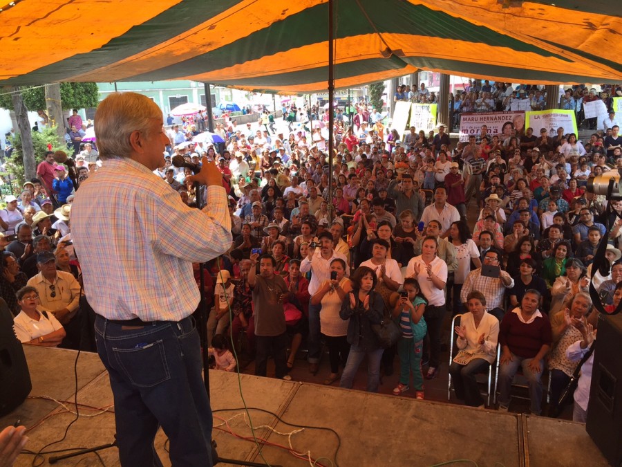 “La estrategia de Morena se basa en informar a la ciudadanía y denunciar a quienes compran los votos en temporada electoral, porque desgraciadamente las autoridades electorales se hacen de la vista gorda, están al servicio de la mafia del poder”, expresó el presidente del Consejo Nacional de Morena. ECATEPEC, Edomex. 15 de abril 2015.- El presidente del Consejo Nacional de Morena, Andrés Manuel López Obrador, aseguró que el Instituto Nacional Electoral (INE) no garantiza elecciones limpias, menos en el Instituto Electoral del Estado de México, porque está entregado totalmente al gobierno de Eruviel Ávila. Al conceder una entrevista, el político de izquierda planteó que la estrategia de Morena se basa en informar a la ciudadanía y denunciar a quienes compran los votos en temporada electoral, porque desgraciadamente las autoridades electorales se hacen de la vista gorda, están al servicio de la mafia del poder. “Lo más eficaz de todo es que la misma gente tome conciencia y no se deje engañar”, indicó, al iniciar una gira de cuatro días por la entidad mexiquense. Al preguntar los reporteros sobre cómo frenar la compra del voto en el Estado de México, López Obrador expresó que se tiene que denunciar el tráfico de la pobreza y orientar a los ciudadanos vender el voto es vender la libertad, la dignidad, es vender el futuro de los hijos, Comentó que los mexiquenses tienen que agarrar lo que les den, pero el voto es libre y secreto, que cada quien vote por lo que dicte su conciencia, que no vendan el voto, porque si no va a seguir la misma corrupción, va a seguir el mismo empobrecimiento de la gente. Sobre la corrupción que se lleva a cabo por el presidente municipal de Ecatepec, Pablo Bedolla López, expresó que Morena busca que haya un cambio, que la gente vote en contra el PRI, que ya no apoye al PRI, ni a los corruptos. Al preguntar que si es la facultad del Poder Ejecutivo el que se reintegre a los trabajadores electricistas, señaló que en la Cámara de Diputados podrían volver a ser reinstalar a los empleados de la extinta compañía Luz y Fuerza del Centro. Los más grandes ladrones del país, los ex gobernadores de Edomex En su discurso, el ex candidato presidencial aseguró que quienes han sido gobernadores del Estado de México son los más grandes ladrones del país, como son Emilio Chuayffet, Arturo Montiel, Enrique Peña, Alfredo del Mazo, Eruviel Ávila, y añadió al presidente municipal de Ecatepec, Pablo Bedolla López, es la banda de delincuentes más temible del Estado de México. Son niños de pecho los que presentan ante la televisión como los grandes delincuentes en comparación con los políticos corruptos del país, comentó Andrés Manuel, al estar acompañado por el presidente del Comité Ejecutivo Estatal de Morena, Pedro Zenteno. Puso de ejemplo al actual presidente del PRI nacional, César Camacho, quien tiene un reloj de un millón de pesos, así como quien fuera secretario particular del ex gobernador mexiquense Emilio Chuayffet Chemor y secretario de Gobierno del Estado de México durante mandato de Enrique Peña Nieto, el subsecretario de Desarrollo Social, Ernesto Javier Nemer Álvarez, porta un reloj que vale tres millones de pesos. Recomendó a los ciudadanos del municipio no acercarse al presidente municipal de Ecatepec, cuando ande por la colonia Santa Clara, porque podrían perder la cartera, porque es muy corrupto. El problema del país, prosiguió es la corrupción, pero pidió tener confianza que sí se puede sacar adelante a México, porque si se evita, que cada año, se roben el 10 por ciento del presupuesto público nacional, que son 460 mil millones de pesos, los ahorros alcanzarían para crear empleos, ir casa por casa, para incorporar a los jóvenes al trabajo y al estudio. Indicó que en la actualidad, los jóvenes son rechazados de las universidades públicas con el pretexto que no pasan el examen de admisión cuando no es cierto, sino porque no hay espacio en las universidades, porque no cuentan con el presupuesto suficiente. Adelantó que cuando triunfe Morena, se garantizará el cien por ciento de inscripción a todos los jóvenes que quieran estudiar el nivel superior, porque no es solo un derecho, la educación no se tiene que convertir en un privilegio, es también entender que es un asunto de juicio práctico: “es mil veces mejor tener a los jóvenes estudiando que tenerlos en la calle”. Señaló que cómo se va a resolver el problema de la inseguridad y la violencia, si no hay trabajo, si se le cierran las puertas a los jóvenes, la paz y la tranquilidad son frutos de la justicia, no se va a resolver el problema de la inseguridad y la violencia nada más con policías y soldados, con marinos, cárceles, amenazas de mano dura y leyes más severas. “No se puede enfrentar la violencia con la violencia, el mal con el mal, no se puede apagar el fuego con el fuego, tiene que haber desarrollo, tiene que haber trabajo, bienestar, así como es que se va a serenar el país”, dijo al asegurar que si el presupuesto se maneja con honradez rinde, alcanza para muchas acciones. Indicó que Si no hay corrupción, ni privilegios para altos funcionarios públicos el presupuesto rinde, “porque no puede haber gobierno rico con pueblo pobre, si hay austeridad republicana, si se aplica lo que decía el presidente (Benito) Juárez que el funcionario debía de aprender a vivir en la justa medianía, se liberan fondos para el desarrollo”.