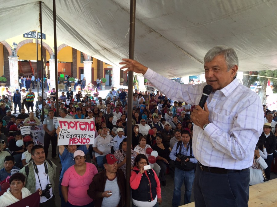 El presidente del Consejo Nacional de Morena señala que no hay piso pareja en elección del 2015 y propuso buscar un mecanismo para que haya un instituto electoral independiente. TEOTIHUACAN, Edomex. 16 de abril de 2015.- El presidente del Consejo Nacional de Morena, Andrés Manuel López Obrador, consideró como una burla que los consejeros del Instituto Nacional Electoral (INE) multaran con dos mil 804 pesos por errores y omisiones técnicas al Partido Revolucionario Institucional (PRI). El político de izquierda aseguró que los integrantes del INE están al servicio de la mafia del poder y el otorgar una diminuta multa al PRI, solo demuestra su cinismo, su desfachatez. “Cómo van a multar al PRI por dos mil 800 pesos, es increíble”, expresó. “Me dan ganas de irlo a pagarlo yo y decirles miren, aquí están tus dos mil 800 pesos que corresponden a la multa del PRI y les voy a dar otros dos mil 800 pesos para que me multen a mí por llamarles corruptos, farsantes”, puntualizó. Al preguntar si hay piso parejo en la contienda electoral, López Obrador respondió que claro que no, es una vergüenza que los consejeros del INE actúen de esa manera. Desde Teotihuacán, Andrés Manuel sugirió buscar un mecanismo para que haya un instituto electoral independiente, que no dependa de la mafia del poder como sucede actualmente con Instituto Nacional Electoral. Asimismo, añadió, que ya no sean los partidos políticos quienes propongan a los consejeros del INE, porque tanto los consejeros como los partidos están al servicio de la mafia del poder. Durante una entrevista, el presidente del Consejo Nacional de MORENA planteó que los ciudadanos deben de organizarse para defender el voto en las elecciones del 7 de junio. En otro tema, deseó que ojalá sea en serio que el INE credencialice a los mexicanos en el extranjero que iniciará a finales de 2015, porque gastó mucho dinero durante muchos años y no han podido credencializar a quienes por necesidad se trabajan y viven en Estados Unidos. Manifestó que sería bueno que los paisanos que viven en otros países puedan votar en las elecciones venideras, pero el INE es una institución mala y anacrónica, porque cuánto llevan promoviendo el voto en el extranjero y los mexicanos en el extranjero no participan en los comicios, porque no les dan confianza y les ponen trabas. En otro orden de ideas, el ex candidato presidencial señaló que son muy corruptos los políticos del país, sobre todo los del Estado de México, como los casos Enrique Peña Nieto, Eruviel Ávila, César Camacho, Arturo Montiel. Al preguntar los reporteros de cómo sentía por estar en la tierra de los Dioses, que es Teotihuacán, contestó que se siente muy fortalecido, sobre todo espiritualmente, es una de las regiones con más fuerza cultural en el mundo. En Cuautitlán Izcalli, informó que el secretario de Gobernación, Miguel Ángel Osorio Chong, se compró una casa en las Lomas de Chapultepec, 50 millones de pesos, pero Osorio Chong dice que renta la casa. Señaló que rentar una residencia en dicha colonia cuesta alrededor 250 mil pesos al mes y formalmente Osorio Chong gana 150 mil pesos, entonces no le va a alcanzar para la comida, ni para el metro, de dónde va a pagar para la luz. Y el subsecretario de Gobernación, Luis Miranda, se compró una casa de 60 millones de pesos, muy cerca de donde está la casa de Peña Nieto. Recordó que en su cuenta de Facebook publicó que dan ganas de poner un aviso en las Lomas de Chapultepec diga: ¡Cuidado en esta colonia roban! La revista Proceso, prosiguió, dio a conocer que el subsecretario de Desarrollo Social, Ernesto Javier Nemer Álvarez, porta un reloj de 3 millones de pesos, y esta noticia sería un escándalo en otro país, pero en México los ciudadanos no lo saben. Mayoría de medios comunicación, controlados por mafia del poder El político tabasqueño dijo que daba a conocer información a los ciudadanos de lo que pasa en el país, porque la mayoría de los medios de comunicación están controlados por la mafia del poder y para muestra es que censuraron a Carmen Aristegui, como lo hicieron con el periodista José Gutiérrez Vivo, solo quedan cuatro espacios independientes: Jacobo Zabludovsky, la revista Proceso, los periódicos La Jornada y Reforma. En la explanada municipal, denunció que en esta temporada de campañas el Partido Verde Ecologista se ha dedicado a entregar tarjetas de descuento “Premia” y ahora en el Estado de México ha repartido mochilas con útiles escolares, de color verde, y que dice en la parte de frente: “Sí cumple”. Observó a niños y jóvenes del lugar a echar a volar unas palomas blancas como símbolo que este país tiene esperanza con Morena. Asimismo, mujeres y adultos mayores con copas de incienso realizaron un ritual de limpia para proteger, purificar al presidente del Consejo Nacional de Morena durante su visita a la entidad mexiquense. Alertó que la empresa Televisa y otros medios de información tienen una alianza para apoyar al priista Enrique Peña Nieto, ya que ellos fueron los que construyeron una telenovela con él, lo introdujeron al mercado como un producto chatarra, lo convirtieron de un personaje escenográfico, vacío en una gran figura política. Explicó que no es porque Televisa critique a Peña Nieto, por eso la gente desaprueba al gobierno peñista con una calificación de 4, sino porque el pueblo de México está despertando y pidió tener confianza que se logrará la transformación del país, aunque es complicado, porque se enfrenta a la mafia del poder que robó dos veces la Presidencia de la República, “pero la tercera es la vencida”. Dio a conocer el plan de MorenaA para lograr el cambio es si en la elección presidencial de 2012, obtuvo 16 millones de votos, si trabaja para despertar a la gente para el 2018, o antes, se contará con el apoyo de 25 o 30 millones de votos y ya no le servirá a la mafia del poder ningún truco, ni