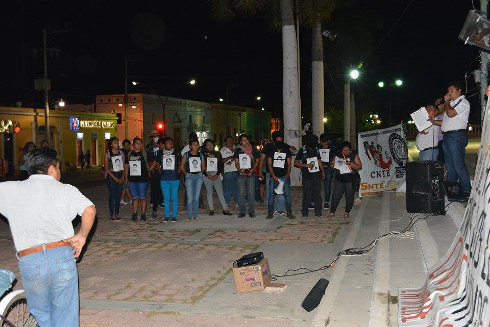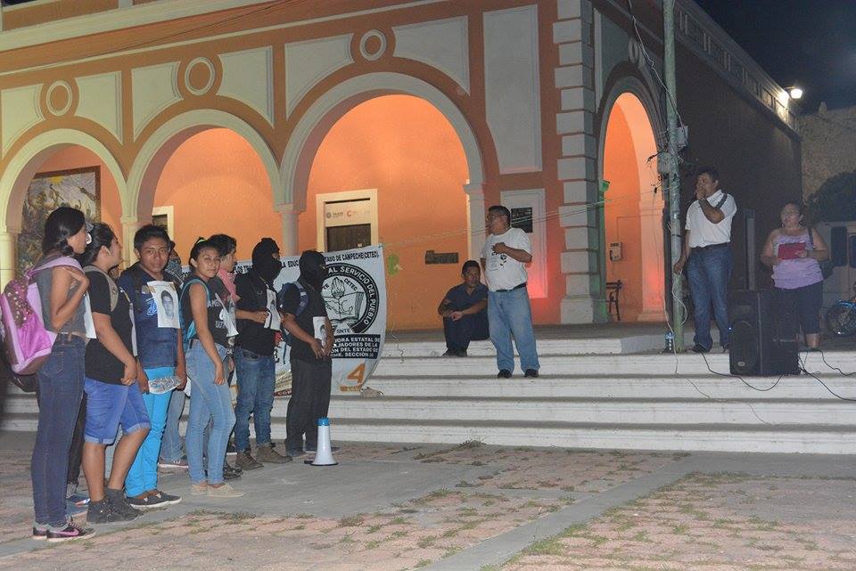 Realizan marcha en calles de Calkiní y mitin frente al Palacio Municipal, a siete meses de la tragedia. 27nor2 Por Gustavo Uc Pérez CALKINI, Cam. 27 de abril de 2015.- A siete meses de la violenta masacre y desaparición de estudiantes normalistas de Ayotzinapa, Guerrero, la Coordinadora Estatal de Trabajadores de la Educación de Campeche (CETEC) refrendó su apoyo a los padres de familia de estos jóvenes, para lo cual programó una marcha mitin, que dio inicio a partir de las ocho de la noche del domingo. La caminata partió de la Escuela Secundaria Técnica número 3 de esta ciudad, para culminar frente al Palacio Municipal, con la participación de jóvenes, padres de familia y los integrantes de la CETEC, así también se escucharon las consignas como: “Vivos se los llevaron, vivos los queremos”, “Ayotzinapa vive la lucha sigue” y “Fuera Peña”. Al llegar frente al Palacio Municipal, se hizo una remembranza del fatídico día 26 de septiembre, a cargo de Silverio Tuz Góngora, representante reconocido por la Coordinadora Nacional de Trabajadores de la Educación (CNTE) a nivel nacional, quien manifestó el total apoyo y cobijo a los jóvenes normalistas asesinados y desaparecidos, así como a los padres de familia de estos, que siguen viviendo un calvario muy doloroso en busca de justicia. Así también, Norma Elizabeth Natal Tamay dio lectura a los pronunciamientos emanados de la asamblea nacional representativa, donde se hace mención al repudio por las investigaciones en contra de Zenyazen Escobar, vocero del movimiento magisterial popular veracruzano, respaldo total a las enfermeras en su lucha, alto a la criminalización de la protesta social, alto al acoso laboral hacia las compañeras Guadalupe Concepción Cutz May y otra de esta misma de USAER 01 de la ciudad de Campeche, por parte de la directora y supervisora de este nivel educativo. Antes de finalizar el acto, se dio a conocer que aunque el gobierno del Estado haya cancelado el desfile del primero de mayo, los integrantes de la CETEC, el Sindicato Independiente de Trabajadores de la Educación en México (SITEM) y otros sectores inconformes por las reformas estructurales, se harán presentes en la plaza de San Martín a las nueve de la mañana para hacer un recorrido hasta llegar a la plaza principal, frente a la catedral, donde se realizará un mitin. Para concluir, todos los presentes entonaron el himno “Venceremos”, símbolo de lucha y resistencia. 27nor