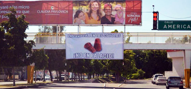 Imagen retomada de Facebook  Por Silvia Núñez Esquer*  Cimacnoticias  Las lonas aparecidas el pasado 29 de abril en Hermosillo, capital del estado de Sonora, en un lugar por demás visible, en el que se denosta al género femenino como posible gobernante, se diferencia de los pleitos anteriores en los que supuestamente entre partidos vandalizan la propaganda del opositor.  “Las mujeres como las escopetas cargadas y en el rincón” y “la panocha en las coyotas, no en el palacio”, parecen dichos y refranes inocuos. Pero resulta que no, al contrario. La carga misógina que llevan va dirigida como proyectil contra las candidatas en particular y a todas las mujeres en general.  En el discurso de las lonas hay un odio explícito hacia las mujeres. Es una amenaza. Por lo tanto, no se debe esperar a que se presenten atentados físicos como ha ocurrido en otras entidades contra las candidatas mujeres.  Las autoridades electorales y de procuración de justicia tienen la responsabilidad de garantizar el ejercicio pleno de los derechos electorales de las mujeres que han decidido ser candidatas. Ellos son quienes deben asegurarse de que los grupos ultraconservadores y misóginos dejen en paz a las mujeres contender por los puestos para los que se han registrado.  El mensaje vertido y colocado en los principales puentes de la ciudad da cuenta del odio acumulado a través del tiempo y expresado en ésta que es una elección en la que por primera ocasión, por ley y por acato de sentencia judicial, los partidos tendrán que cumplir con la paridad de género.  Es la primera vez que los grupos misóginos que se encuentran dentro de todos los partidos políticos, iglesias, agrupaciones empresariales y organizaciones sociales tendrán que aceptar que las mujeres participen en igualdad, al menos numérica, tanto como los hombres. Pero eso a los partidos y a algunos de sus militantes no los tiene contentos.  Después de analizar las propuestas, las frases utilizadas para sus discursos, y las plataformas en síntesis que publican en los periódicos encartados en los diarios, no vemos la bienvenida a la igualdad y a la paridad.  Ninguno de los candidatos celebra la igualdad, no la hicieron parte de su plataforma política. Llevan mujeres como compañeras en sus fórmulas porque los obligaron, no porque lo decidieran.  Todavía en este momento se ventila la petición que hicieran algunas mujeres del Observatorio de la Paridad y la Equidad con sede en Ciudad Obregón, donde se les ha negado el amparo  solicitado por la ausencia de criterio de paridad horizontal para todos los partidos.  Ellas siguen en su lucha como lo han hecho desde hace ocho años, pero siguen sin obtener el resultado deseado: que todas las mujeres que quieran ser candidatas lo sean. Que todos los partidos incluyan con alegría en la mitad de todas las posiciones en juego a las militantes.  Recordemos que tradicionalmente las organizaciones partidistas terminaban haciendo uso de la excepción que les otorgaba la ley para llevar a cabo una elección interna en la que siempre elegían a hombres, y las mujeres quedaban relegadas a las candidaturas en donde ese partido tenía la menor preferencia en el electorado.  Esa inequitativa y mala práctica llevaba a que las mujeres terminaran siendo alcaldesas de los municipios más pequeños, con menos recursos y menores oportunidades de desarrollo.  En 2015 ya no podrán hacer eso. Ya no pueden excluirlas desde lo institucional. De hecho planillas que habían sido registradas con dos hombres a la cabeza tuvieron que ser modificadas para cumplir el criterio de paridad y participar dentro de la legalidad. Pero eso no quiere decir que lo hayan aceptado gustosos.  Recordemos la sesión del Instituto Estatal Electoral (IEE) del pasado 26 de marzo en la que se discutió y aprobó el criterio de paridad vertical, más no la horizontal, por lo que no obstante ser un criterio limitado, según las mujeres que han luchado por la exacta igualdad y equidad en la participación política, hoy día constituye la condición más avanzada para llegar a la igualdad sustantiva.  En esa misma reunión hubo mucha resistencia por representantes partidistas, en particular del Partido Acción Nacional, mismo que había registrado a dos varones encabezando la planilla municipal de Hermosillo.  ¿Cómo sabemos que no son los propios compañeros de las mujeres candidatas los que están expresando su inconformidad por la obligatoriedad de dejarlas participar en igualdad de circunstancias?  Las autoridades deben actuar rápido. No deben esperar a que se presenten actos que se puedan lamentar con pérdida de vidas humanas. Las mujeres están en su derecho de participar, tal como lo hacen sus compañeros varones, así sean emanadas de partidos que han demostrado ser corruptos y deshonestos.  Las lonas misóginas de Hermosillo, más allá de ser un chascarrillo “de mal gusto”, son una advertencia de que hay quienes desprecian a las mujeres y están en contra de que gobiernen. No les importa la legalidad, no les interesan las recomendaciones internacionales, mucho menos les preocupa el ejercicio pleno de los Derechos Humanos de las mujeres.  Las mujeres candidatas deben pronunciarse y exigir a sus partidos que levanten la voz hacia las autoridades encargadas de proteger y garantizar su integridad física y psicológica.  Ya se ha hecho escarnio de la apariencia de algunas candidatas y se lo aguantaron, cuando pudieron haber invocado la Ley de Acceso de las Mujeres a una Vida Libre de Violencia o la Ley de Igualdad entre Mujeres y Hombres, y denunciar la violencia psicológica, comunitaria e institucional con que han sido tratadas.  Lo de las lonas agrediendo a las mujeres contendientes rebasa la “puntada” o la “ocurrencia”, como se quiere hacer creer. Las candidatas deben exigir respeto e igualdad en el trato, invocando la legislación. En el caso de las lonas urge que pidan una investigación para dar con los res