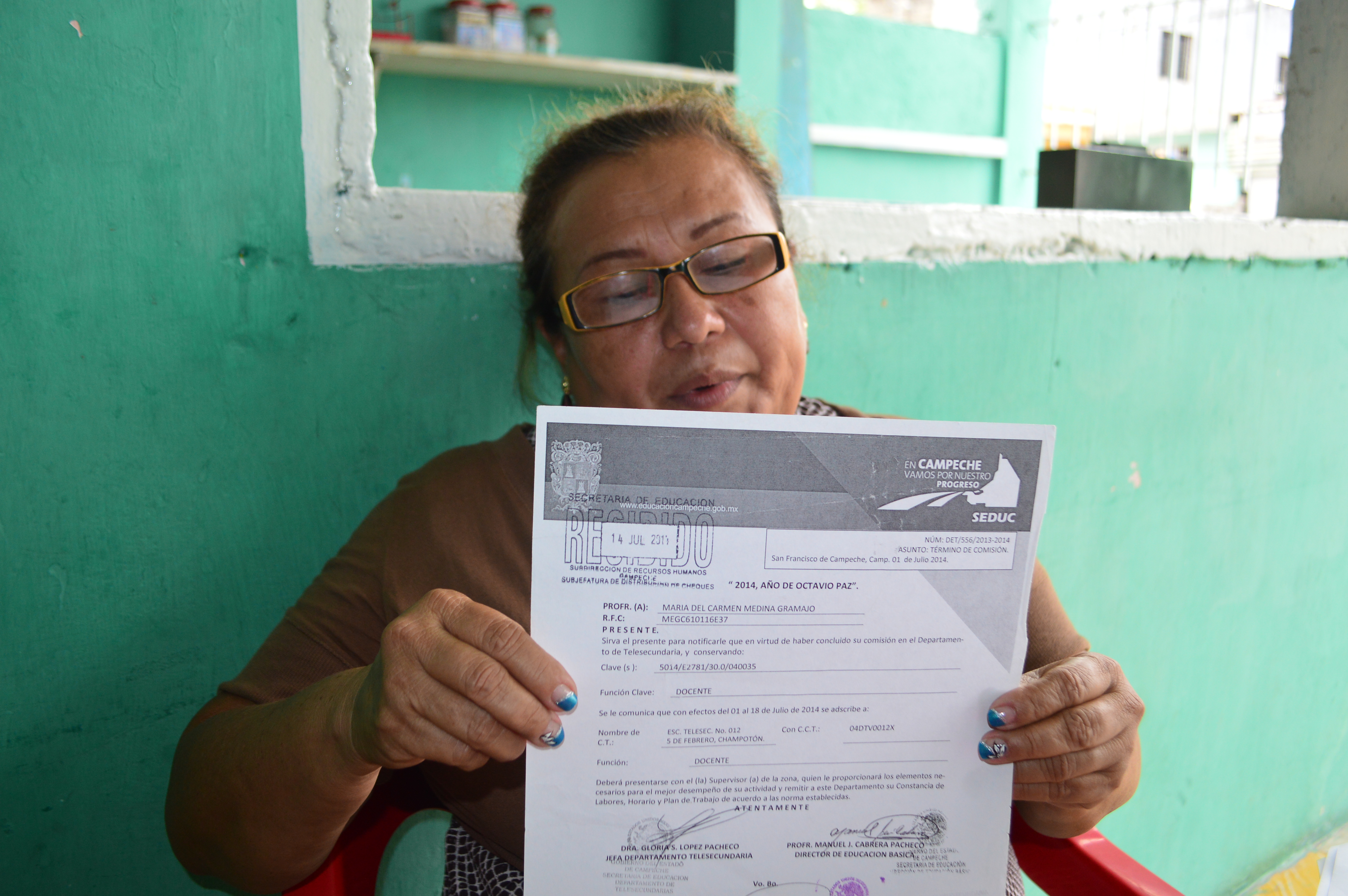 María del Carmen Medina acusa directamente a la jefa del Departamento de Telesecundaria, Gloria López Pacheco, de afectar su economía familiar y el sustento de sus hijos, por represión.