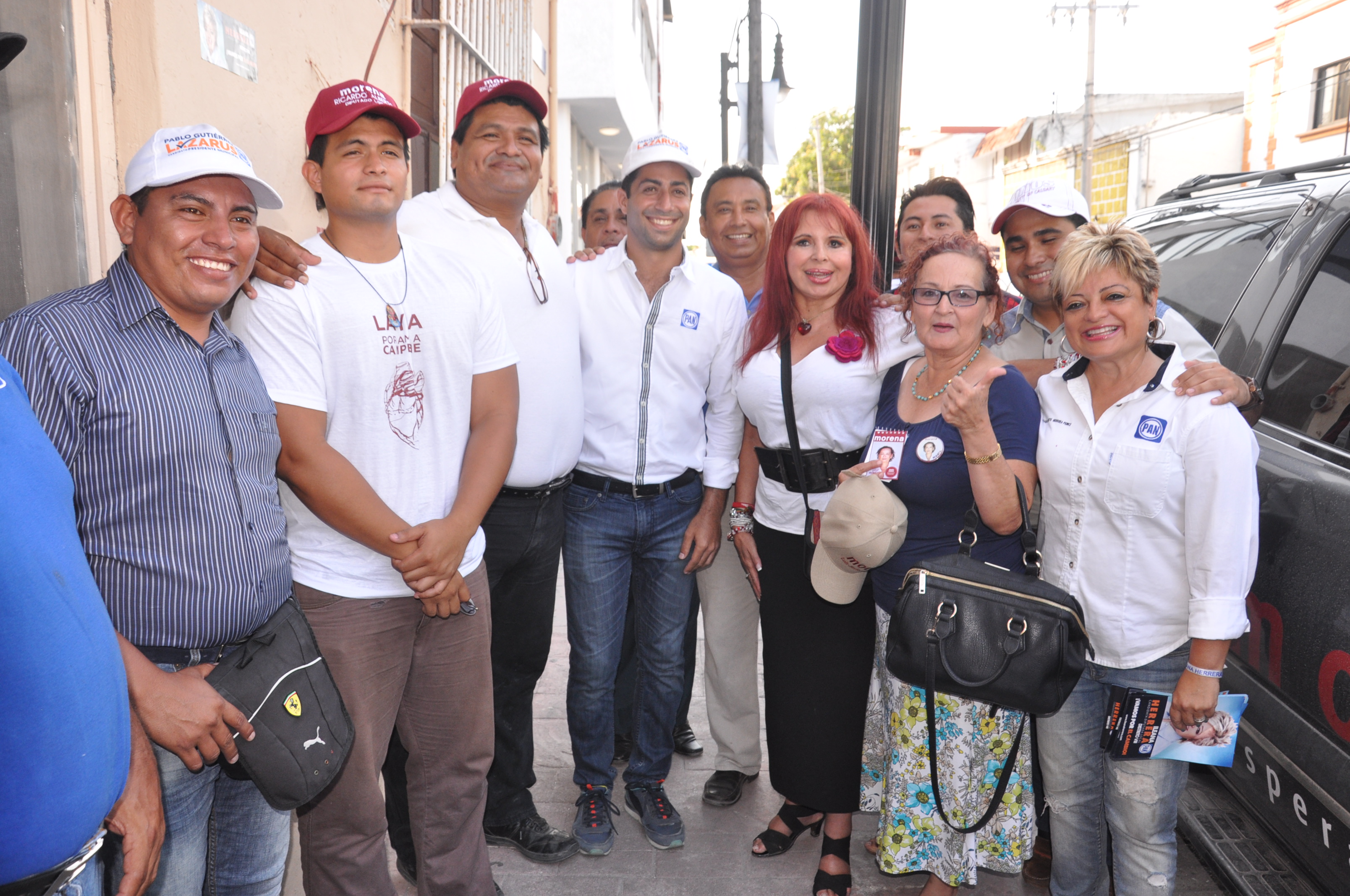 En su recorrido por la colonia Guanal, la candidata de Morena a la gubernatura se encontró con panistas que acompañaban a la aspirante a la diputación local por el VIII Distrito, quienes le pidieron tomarse fotos con ellos.