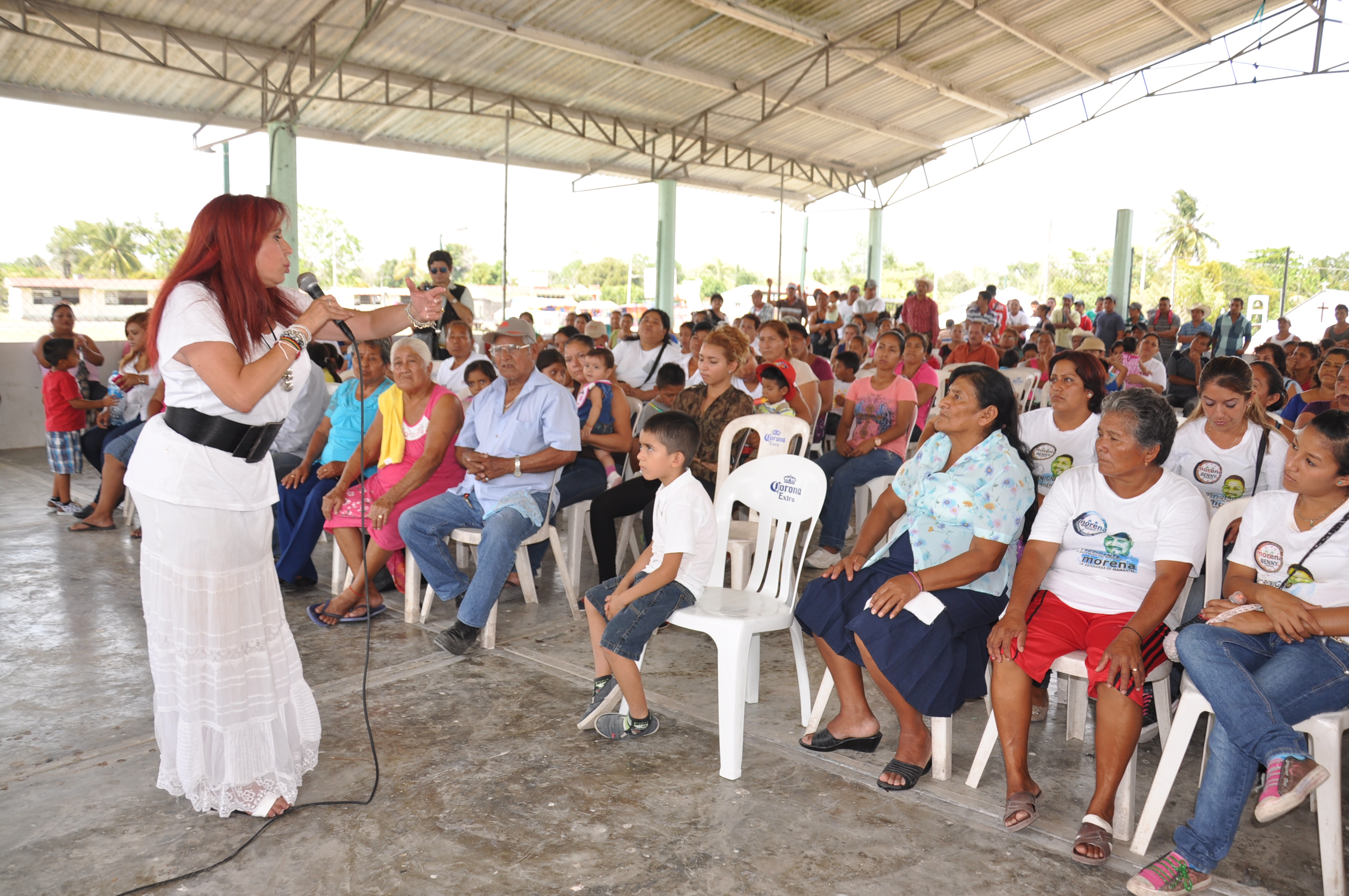 ESCARCEGA, Cam. 14 de mayo del 2015.- Layda Sansores San Román, candidata de Morena al gobierno del Estado, recorrió comunidades de los municipios del Carmen y Escárcega, donde pidió a los ciudadanos su confianza para sacar al PRI del cuarto piso del Palacio de Gobierno, y señaló que es necesario atender, entre todos, las necesidades de los poblados que están en total abandono, con un gobierno ciudadinizado. Sansores San Román, en compañía de María Sierra Damián, aspirante a la diputación federal por el Segundo Distrito; José Manuel Aragón, abanderado a la alcaldía de Escárcega, y posteriormente se añadiría al recorrido Luis Javier Solís Sierra, candidato a la alcaldía del Carmen, visitó la colonia Emiliano Zapata, de Escárcega, para después trasladarse a los poblados 18 de marzo, San Isidro, Pital Nuevo y Nuevo Chontalpa. La aspirante morenista manifestó que no se vale engañar al pueblo campechano e ilusionarlo con acciones de gobierno que no se van a poder realizar, y destacó que las propuestas se Morena para el estado son reales y además son viables y se han analizado. “El otro día escuchaba las propuestas del candidato del PRI, son fantasiosas, es como si fueran de otra galaxia, dice que traerá estadios de Primera División y equipo de primera, que son buenos para el lavado de dinero, pero no tenemos ni canchas para jugar”, expresó. Reiteró su compromiso de ciudadanizar el gobierno, pues se necesita a los funcionarios en las calles, viviendo las necesidades de la gente y trabajando realmente por la mejora de la condición de vida de los habitantes del estado. “En Oaxaca, estuve trabajando con algunas comunidades, con una manera de trabajar que se llama el tequio, que es en la que reina la solidaridad social, se analiza y platica con la gente sobre qué es lo que mas se necesita y vienen los funcionarios y con ayuda de la gente, vamos haciendo las obras entre todos, ponemos a los ingenieros y el pueblo nos ayuda con la mano de obra”, indicó. “De esta manera, reducimos costos y nos alcanza para atender a más comunidades y con mejores obras, porque ustedes van a estar viendo lo que estamos haciendo y son los mejores supervisores”, apuntó.