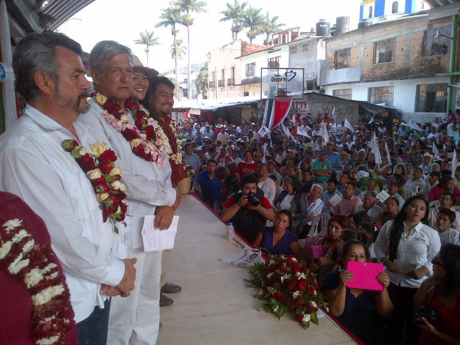 El presidente del Consejo Nacional de Morena llama a los maestros a no votar por PRI, PAN y Panal, porque fueron quienes aprobaron la Reforma Educativa. TAMAZUNCHALE, S.L.P. 17 de mayo del 2015.- El presidente del Consejo Nacional de Morena, Andrés Manuel López Obrador, llamó a los ciudadanos de San Luis Potosí a no votar por los partidos PRI, PAN y PRD, porque fueron quienes aprobaron las reformas laboral, educativa, fiscal y energética, que esta última sirve para entregar el petróleo que es de los mexicanos a particulares, sobre todo los extranjeros. En Ciudad Valles, el político de izquierda pidió a los maestros no votar por el PRI, PAN y Panal, porque fueron quienes aprobaron la Reforma Educativa. En vísperas de las elecciones, López Obrador explicó que hay 10 partidos políticos, pero nueve ya están al servicio de la mafia del poder, desde luego el PRI y el PAN son los principales, pero también el PRD, Partido Verde, Nueva Alianza, Movimiento Ciudadano, el PT, pero aclaró Morena no está al servicio de la mafia, el único amo de Morena es el pueblo de México. Informó que se salió del PRD, porque los de la mafia del poder pensaron que al comprar a los dirigentes perredistas para firmaran en Pacto por México, iban a poder a tener a todos los partidos políticos apergollados, pero se equivocaron, porque quienes integran Morena no tienen precio, porque prefieren dejar a sus hijos pobreza, pero no deshonra. En otro tema, expuso que Morena tiene espacios en radio y televisión, porque obtuvo su registro como partido político, no por concesión de los de arriba, sino porque se cumplió con todo los requisitos, muchos participaron en las asambleas. Y ahora aunque no les gusta a los del Instituto Nacional Electoral, señaló, a regañadientes, le tienen que dar espacios a Morena en radio y televisión, pero muy desproporcionado, porque mientras el PRI y el PAN tiene 30 o 40 mensajes en televisión, Morena tiene solo uno. Más perjuicios por la corrupción El ex candidato presidencial insistió en que por la corrupción, hay pobreza, desempleo, inseguridad y violencia, aumento de impuestos. “Nosotros tenemos la fórmula, acabar con la corrupción que no haya gobierno rico con pueblo pobre. Sí confías en mí, vota por Morena”, reiteró. Comentó que Morena terminará con el problema de la corrupción a partir de limpiar de corrupción al gobierno de arriba para abajo, como se limpian las escaleras, porque si el presidente de la República es corrupto, los gobernadores son corruptos, si los gobernadores son corruptos, los presidentes municipales son corruptos. En otro tema, expresó que el mal gobierno se padece tanto en San Luis Potosí, y como los más de dos mil municipios del territorio nacional, porque hay un régimen podrido, de injusticias y de privilegios, pero ya hay mucha gente despierta. Comentó que en sondeos y en encuestas a los mexicanos se les preguntan qué opinan del gobierno federal, a lo que los ciudadanos les dan 4 de calificación al priista Enrique Peña Nieto, quien es el mandatario más desprestigiado, pero él campeón y vaya que se han tenido presidentes corruptos. Indicó que la gente que tiene un instituto certero se dio cuenta que ya no se puede con el régimen corrupto. Señaló que va la mitad el sexenio del priista Enrique Peña Nieto, pero en encuestas se le preguntan a las personas que por qué partido y por qué candidato votaría si hoy fueran las elecciones presidenciales del 2018 y los ciudadanos contestan que por Morena, ya es el primer a nivel nacional, “porque la tercera es la vencida”. Explicó que Morena es el primer lugar en preferencia en la Ciudad de México y pidió a los potosinos a que tengan confianza, porque los ciudadanos están despertando a nivel nacional y está deseosa de un verdadero cambio, no solo es por el trabajo de MORENA, mantener este movimiento que es la esperanza para millones de mexicanos, sino lo que ayuda más, aunque decirlo, es el hambre, la necesidad y la pobreza. “Ya no se pude estar durmiendo con esta pesadilla y esto ha llevado muchos a levantar la cabeza, a buscar la salida. Por eso, yo vengo a decirles que tengamos confianza, sí vamos a lograr la transformación del país, de manera pacífica, sin violencia, con la participación consciente y organizada del pueblo”, explicó.