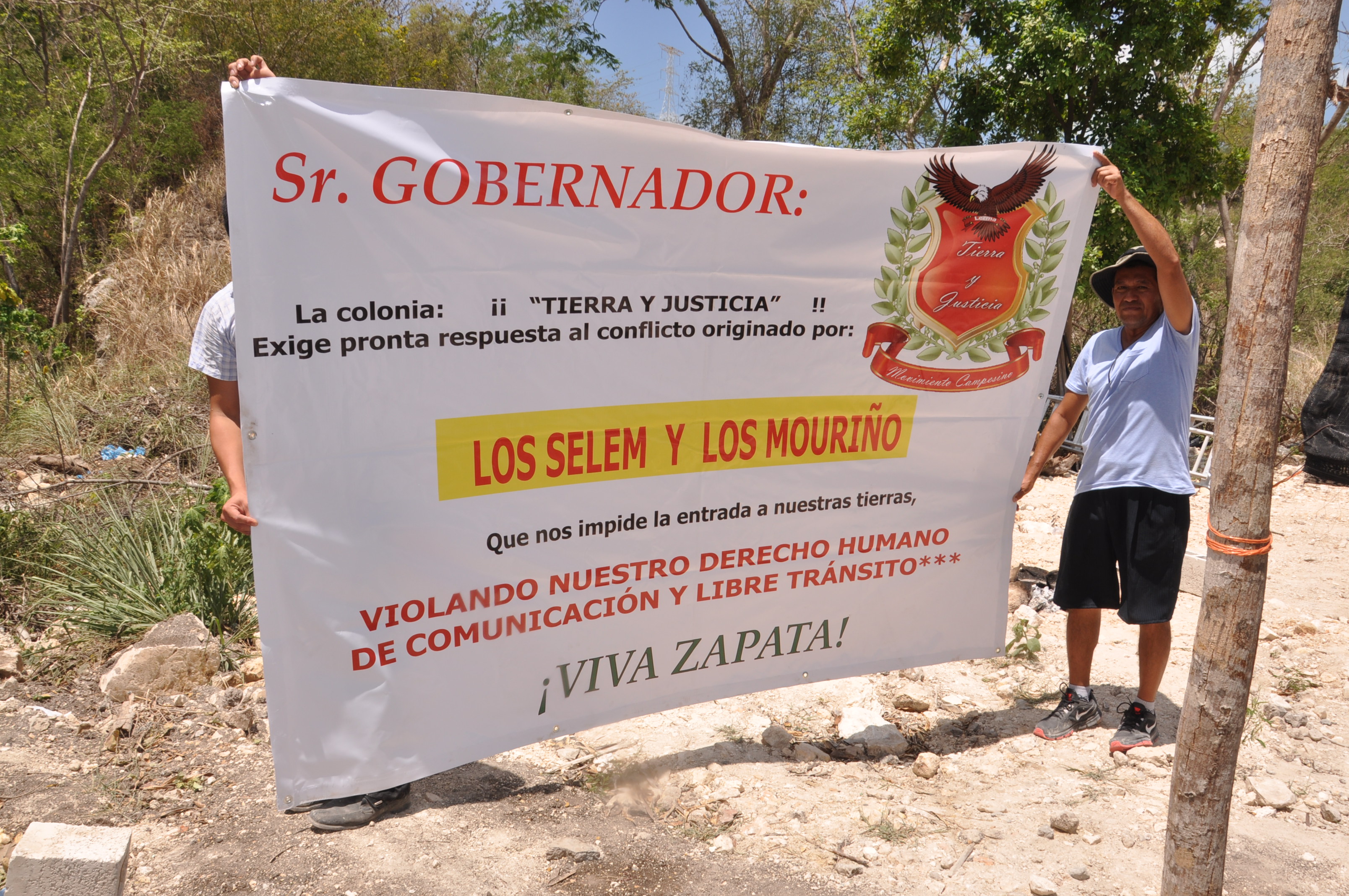 Por Ronny Aguilar LERMA, CAMPECHE, Cam. 17 de mayo del 2015.- La familia panista Mouriño, una de los grupos empresariales más poderosos del estado, nuevamente hace uso de sus influencias, y ahora incomunica a la colonia Tierra y Justicia, liderada por Pedro Celestino May Can, quien destapa la cloaca y saca a la luz fraudes que ha solapado y fomentado la autoridad estatal. Hace unos días, se denunció que la familia Mouriño había cerrado una calle que lleva a la colonia Tierra y Justicia, sin embargo, hoy el nuevo asentamiento se encuentra en un verdadero “estado de sitio”. La colonia en construcción cuenta con tres entradas, una a un costado del Colegio Cumbres, la otra por la avenida de los Cerros, que es la entrada principal que se encuentra en donde está la ciudad industrial y la tercera en la avenida de los Ranchos, que es la entrada a Ecosur, todas estas cerradas por diversos motivos. En entrevista con Paginabierta.mx, May Can indicó que los Mouriño han cerrado con una cadena la calle que se encuentra a un costado de la escuela privada Cumbres, que incluso, te piden el nombre, datos personales, razón para que se pueda dar el paso y hasta las placas de los vehículos toman. “Para pasar, te piden tu nombre, todos tus datos y hasta anotan la matrícula de tu vehículo, la calle está junto a la escuela Cumbres y ellos cierran, porque hay un espacio de 20 por 30 metros que es de su propiedad, pero está en el paso de calle, atrás de ese pedazo, es calle de la colonia, muy al estilo español, ponen su cadena”, expresó. Manifestó que no quieren que se construyan casas de origen humilde en la zona, que han seleccionado para tener su colonia de millonarios campechanos, en la zona, se encuentra el club de golf de su propiedad, el Campeche Hills, Lomas del Castillo, el hospital privado y un museo subacuático, la escuela privada y además, se prevé la construcción de un centro comercial, entre otras cosas. “Están alterando la paz social, no quieren que construyamos las casas de cartón arriba, qué pasaría si les obstruimos el acceso a sus bodegas, qué pasa por el acceso que es de nosotros, porque en esa carretera hay lotes ya asignados, pero no caemos en su juego”, agregó. “Nos ven con desprecio, como su proyecto ya está por terminar y no les gusta que haya gente humilde a un lado de sus casas y sus clubes, esa no era la intención, cuando comenzaron a construir esta zona de ricos”, apuntó.
