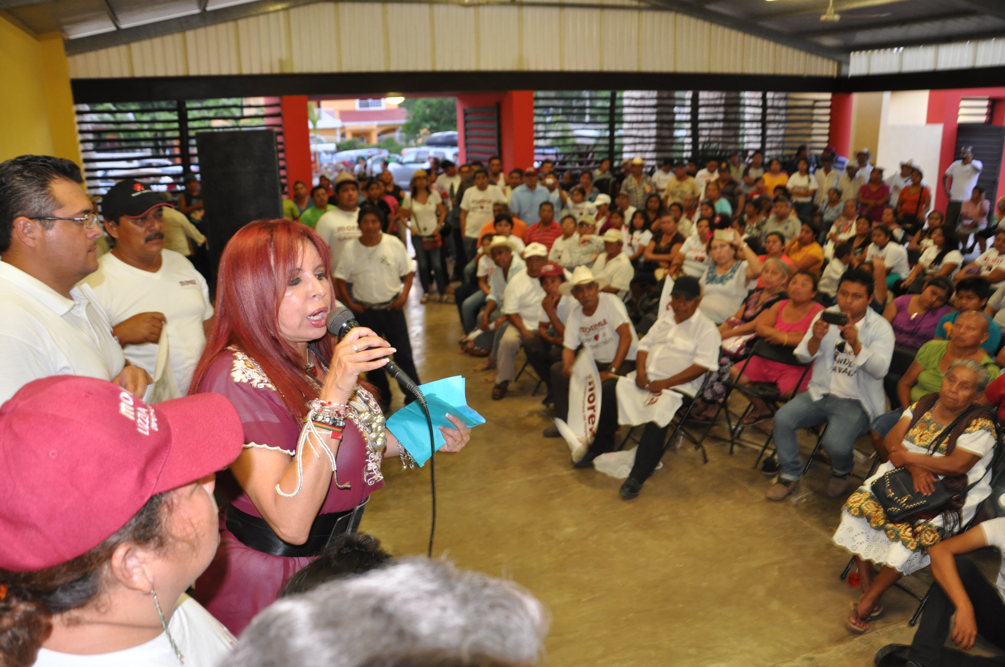 Hay que frenar el cinismo del PRI, con el que hasta los muertos votan Layda Sansores llamó al a conciencia de los asistentes sobre lo necesario que es que la ciudadanía salga a votar este siete de junio, pero también de que se armen legiones de ciudadanos conscientes, que cuiden el voto, pues en las elecciones pasadas, en Los Chenes, hasta los muertos votaron. “Hopelchén es una de la zonas más importantes del estado, se está dando un despertar y los amaneceres pasan sin que nos demos cuenta, pero es hora de que lo demostremos. En esta zona siempre votan los muertos, es el único lugar en donde vota el 120 o hasta el 140 por ciento del padrón en las casillas, o sea, que vota todo el pueblo, los que se murieron hace tiempo y los que se acaban de morir, esto es mágico, el puro cinismo de estos rateros”, denunció. Es de señalar que durante el último evento en Hopelchén, recibió dos presentes, una carta con los mejores deseos de una infante en su camino a gobierno del Estado y el otro, una blusa bordada típica de la región, misma que inmediatamente se colocó, además de que se hizo una demostración de cómo son las boletas electorales y cómo es que se vota por la única opción de cambio en el país, por Morena.