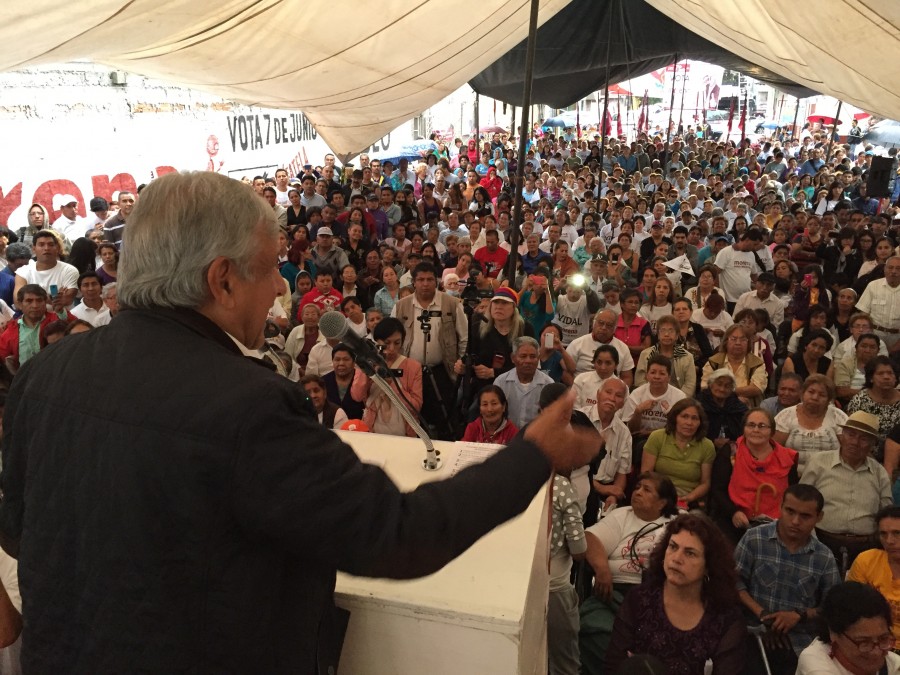 El presidente del Consejo Nacional de Morena pide a los ciudadanos orientar a la gente para que no vendan su voto. CIUDAD DE MEXICO, D.F. 25 de mayo del 2015.- El presidente del Consejo Nacional de Morena, Andrés Manuel López Obrador, pidió a los ciudadanos orientar a la gente para que no venda su voto, porque como dijo el Papa Francisco, traficar con la pobreza de las personas es pecado social y esto mismo lo dicen los ministros de las iglesias evangélicas. El político de izquierda indicó que llevan tiempo planteando que los dirigentes religiosos deben orientar a los ciudadanos en temporada electoral, “porque no es justo que se empobrece al pueblo y se vale de la necesidad, de la pobreza de la gente”. Señaló que si las personas tienen necesidad, pues que les quiten a los corruptos todo lo que se pueda, porque es dinero del mismo pueblo, y cuando los mañosos les den despensas a cambio de sus votos, está permitido decir una mentira piadosa y decir que si van a votar por ellos, pero “a la hora de la hora, tomen su voto”. López Obrador llamó a los candidatos de Morena en Azcapotzalco a no confiarse de que van en primer lugar en las encuestas, porque los dirigentes perredistas están muy desesperados y muy nerviosos, ya que pensaban que iba a ser eterno el mantener los cargos. “Lo que hacía el PRI antes y lo sigue haciendo, el PRI y el PAN, ahora lo hacen los del PRD, compran votos, están ahora entregando despensas, tarjetas, materiales de construcción”, denunció. Confió en el candidato de Morena a la delegación de Azcapotzalco, Pablo Moctezuma, porque es un hombre honesto, honrado, tiene convicciones e ideales, y a él si le puede levantar la mano y sabe que ejecutará bien su plan de trabajo. Para quienes dicen que ahora no se pudo un acuerdo con Morena, pero para el 2018 irán todos juntos, López Obrador dejó en claro que la alianza será con los ciudadanos, no con corruptos. La dirección del PRD está nerviosa, porque el candidato de Morena, Ricardo Monreal Ávila, está muy bien posicionado para ganar la delegación Cuauhtémoc, “ojala y se tranquilicen, que se generen, ya no va a pasar nada, la gente no quiere la corrupción”, expresó Andrés Manuel López Obrador, al preguntar los reporteros su opinión sobre una conversación que fue filtrada entre Monreal y su colaborador Ernesto Núñez. Aseguró que se celebró sin problemas la asamblea en el monumento de Morelos en la colonia Cuautepec, a diferencia de la vez pasada, que se registraron actos de provocación por parte de autoridades delegacionales. Gobernadores priístas y panistas dedicados a robar al pueblo El excandidato presidencial sostuvo que los gobernadores priistas y panistas se han dedicado a robar lo que es del pueblo de México, así como el priista Enrique Peña Nieto, quien recomendó al empresario de Higa, Armando Hinojosa, al gobernador de Nuevo León, Rodrigo Medina, para que se hiciera cargo de un contrato para llevar agua del río Panuco a Monterrey, con un valor de 50 mil millones de pesos. En asamblea en Cuautepec, pidió a los candidatos de Morena, que ganarán las elecciones del próximo siete de junio, que apliquen el principio: no mentir, no robar y no traicionar al pueblo de México y que se mejoren los programas sociales como es el caso de la Ciudad de México. Recomendó a los aspirantes a que no haya retraso en la entrega de la pensión universal para los adultos mayores, porque hay quienes llegan a la edad y tienen que esperar mucho tiempo, seis meses, aunque no les guste a los funcionarios del Gobierno del Distrito Federal, ni al doctor Miguel Ángel Mancera, pero “mi pecho no es bodega, y siempre digo lo que siento”. Sostuvo que el candidato de Morena, Ramón Jiménez, tiene el compromiso que ningún joven de la demarcación se quede sin estudiar, cien por cierto de inscripción a todos los jóvenes de Gustavo A. Madero que quieren ingresar a las universidades públicas, ni un rechazado, porque la educación no es un privilegio, es un derecho que tiene el pueblo. Dio a conocer que el candidato de Morena a la jefatura delegacional Cuauhtémoc, Ricardo Monreal, tiene una buena propuesta que es “becarios sí, sicarios no”, donde le dará beca a los estudiantes, porque para enfrentar la inseguridad y la violencia es necesario que haya trabajo, que se aumenten los salarios, empleos bien pagados y derecho a la educación. Manifestó que se desató la inseguridad y la violencia en el país, porque no hay trabajo, ni crecimiento económico, menos desarrollo y se le canceló el futuro a los jóvenes. La mafia del poder administra la ignorancia Andrés Manuel demandó que ayuden a los ciudadanos a informar, porque la mafia del poder tiene el control de la mayoría de los medios de comunicación y así es como administran la ignorancia, hay muchas cosas que la gente no sabe, porque no se garantiza el derecho de la información y puso de ejemplo que la mayoría de las personas no saben que Peña Nieto recibió una casa que vale 200 millones de pesos como un moche. Denunció que el PRD designó como candidatos a las jefaturas delegacionales a familiares y amigos, y puso de ejemplo que en Iztacalco sale la esposa y el candidato el esposo; en Venustiano Carranza sale un hermano y el candidato otro hermano; en Azcapotzalco fue designado como candidato el hermano de la senadora Dolores Padierna. En la delegación Gustavo A. Madero, puntualizó, sale la señora Nora Arias y ahora quiere volver a gobernar su esposo Víctor Hugo Lobo Román “¿De qué se trata, luchamos para eso?”, cuestionó al decir que es una de las razones por las que se salió del PRD y creó Morena. Aseguró que en Morena, se sacará al pueblo de la pobreza, se atenderá a todos, se escuchará a todos, se respetará a todos, pero se le dará preferencia a la gente humilde y la gente pobre. “Por el bien de todos, primero los pobres”.