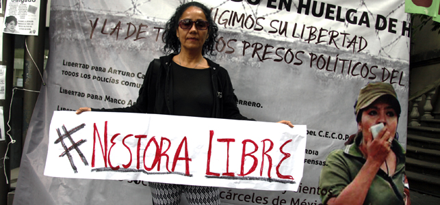 Familiares y activistas anuncian acciones por libertad de defensora/CIMACFoto: César Martínez López Por Anayeli García Martínez Cimacnoticias CIUDAD DE MEXICO, D.F. 1 de junio del 2015.- La familia de Nestora Salgado García y organizaciones internacionales aseguraron que ahora que la activista fue reubicada en el penal femenil de Tepepan, en esta ciudad, no bajarán la guardia para exigir la liberación inmediata de la ex comandanta de la Policía Comunitaria (PC) de Olinalá, Guerrero, y quien aún sigue en huelga de hambre en protesta por su reclusión acusada de “secuestro”, y por las anomalías en el juicio en su contra. En conferencia de prensa en el Centro de Derechos Humanos Miguel Agustín Pro Juárez, en esta capital, defensores de Derechos Humanos de Estados Unidos, junto con Cleotilde Salgado y Grisel Rodríguez, hermana e hija de la activista, respectivamente, dijeron que la demanda principal es la exoneración y libertad de Nestora Salgado, y adelantaron que analizan pedir la intervención del Departamento de Estado de EU. Después de un acuerdo entre la Secretaría de Gobernación (Segob) y el gobierno de Guerrero, el pasado viernes 29 de mayo Nestora Salgado fue trasladada del penal máxima seguridad en Tepic, Nayarit, al reclusorio de Tepepan, al sur de esta capital, donde permanece en la torre médica en observación, luego de que hoy cumplió 28 días de ayuno y en consecuencia los daños a su salud se han agravado. Cleotilde y Grisel informaron además que la mujer decidió continuar su huelga de hambre, porque a pesar de su deterioro físico, los dolores en el estómago, las manchas en la cara y los problemas en el hígado, la ex comandanta considera que es la única manera de que las autoridades la escuchen. Este sábado 30 de mayo, Nestora pudo reunirse con sus familiares, a quienes comentó que continuaría con el ayuno y que por ahora sólo estaba dispuesta a ingerir agua y a tomar los medicamentos para el dolor estomacal. Hasta ahora su estado de salud se reporta como delicado. Su hija Grisel –quien reside en EU y llegó a esta ciudad con la esperanza de reencontrarse con su madre, a quien no veía desde abril de 2013– recriminó: “Ambos gobiernos (de México y Washington) han traicionado a mi mamá; mi mamá es ciudadana norteamericana y hasta la fecha lo que ha hecho el gobierno estadounidense es poco”. “No nada más el gobierno mexicano la ha traicionado y la ha encerrado, el gobierno estadounidense la ha dejado ahí”, por lo que aseguró que activistas de México y el país vecino harán movilizaciones en la embajada de EU en próximos días a fin de exigir que intervenga en la liberación de Nestora. Cleotilde, quien vive en Guerrero y viaja constantemente al DF para exigir la libertad de su hermana, dijo que si bien la reubicación de penal permitirá más cercanía con la familia, aún seguirán luchando para que ella salga de prisión. “Pido a Enrique Peña Nieto, a su gobierno federal, y al gobierno del estado, les pido que sea puesta en libertad mi hermana, ya que de antemano todos sabemos que es inocente”, dijo al recordar que Nestora aún es procesada por tres acusaciones de privación ilegal de la libertad en su modalidad de secuestro. “Me dicen que tiene el hígado inflamado, se le está manchando su cara. La verdad no es justo compañeros que mi hermana esté pasando algo tan difícil por gente que nada más quiso fabricarle delitos, yo creo que no se vale; yo le pido al mundo entero que ponga sus ojos y que vea estas injusticias”, demandó. La familia de Nestora es acompañada por un comité de activistas de diversos países, principalmente de EU, que se unieron a la exigencia de libertad. Al respecto, Stephen Durham, coordinador de la campaña a favor de la ex comandanta en Nueva York, pidió a Peña Nieto que libere a Nestora y a los otros policías comunitarios presos. En agosto de 2014, los congresistas demócratas estadounidenses Adam Smith, Patty Murray y Maria Cantwell enviaron una carta al secretario de Estado de EU, John Kerry, y al embajador de aquel país en México, Anthony Wayne, para pedir acciones a fin de que el Departamento de Estado logre la liberación de la también ciudadana norteamericana. Asimismo, familiares de otros policías comunitarios presos reiteraron su solidaridad con Nestora, entre ellos Agustina García, esposa del policía Arturo Campo; Teresa Molina, hermana de Gonzalo Molina, también en huelga de hambre; y María de Jesús Pérez Hernández, esposa del activista Marco Antonio Suástegui. Las mujeres aseguraron que los policías comunitarios no son delincuentes, sino luchadores sociales, por lo que recriminaron que el gobierno se ensañe con las personas que buscaron paz y seguridad para su pueblo. Demandaron la solidaridad de la sociedad, ya que aseguraron que de lo contrario las autoridades dejarán que sus presos se mueran en la cárcel. Más de 180 organizaciones sindicales, defensoras de Derechos Humanos y de las personas migrantes se han sumado a la campaña a favor de Nestora, y adelantaron que en breve realizarán diversas actividades. En tanto, se anunció una marcha para este jueves 4 de junio desde el Periférico Sur hacia el penal de Tepepan.