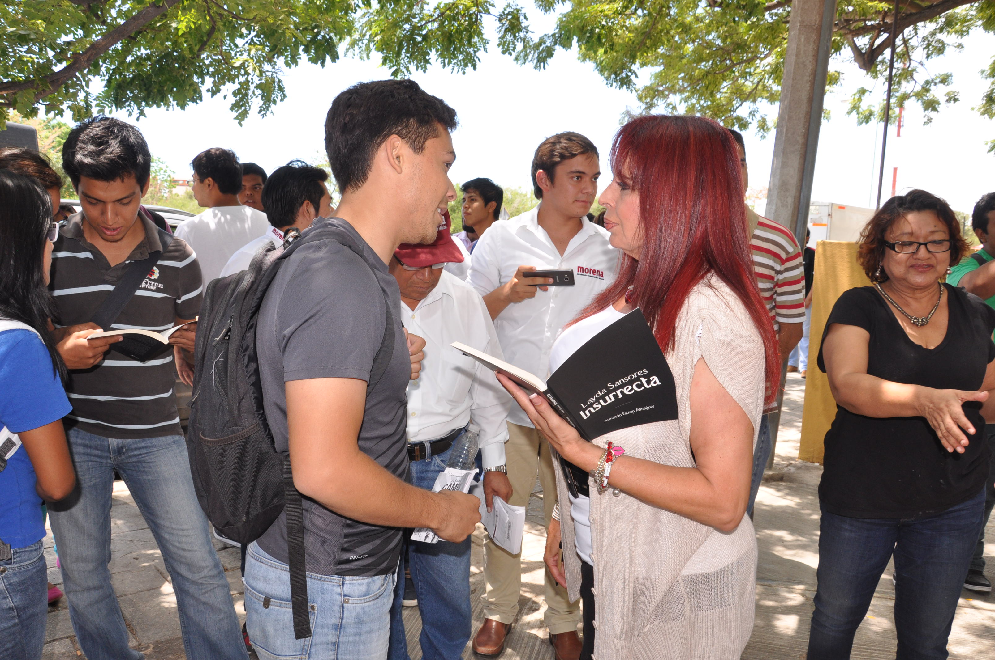 2tec La candidata de Morena a la gubernatura visitó el Instituto Tecnológico de Campeche e invitó a los estudiantes a la rebeldía, porque este siete de junio tenemos la oportunidad de una historia diferente a la de los últimos 86 años. 2tec1 LERMA, CAMPECHE, Cam. 2 de junio del 2015.- La candidata de Morena por la gubernatura del Estado, Layda Sansores San Román, visitó el Instituto Tecnológico de Campeche e invitó a los jóvenes a la rebeldía y a participar en la fiesta de la despedida del PRI en la Plaza de la República, con la presencia de Andrés Manuel López Obrador y la Sonora Dinamita. A primera hora de la tarde, la abanderada morenista y los aspirantes a la alcaldía de Campeche, Bertha Pérez Herrera, y a diputado federal por el Primer Distrito, Manuel Zavala Salazar, acudieron a las afueras del Instituto Tecnológico de Campeche, en donde saludaron a los estudiantes y llamaron a la conciencia de la rebeldía natural de la edad. “Estoy enterada de que ustedes se han organizado y que han defendido sus derechos, que esta juventud no es la sumisa y reprimida que vemos en otras instituciones, me hubiera gustado entrar a hablar, pero su directora se opuso rotundamente y seguramente, porque es de los dinosaurios que no se da cuenta de estos tiempos democráticos”, expresó Layda Sansores. “Un joven en Campeche no puede ser más que de izquierda, la derecha ya entrego el país sin nada a cambio y la tercera parte del territorio nacional se la dio a los mineros canadienses, a los americanos y ya no es nuestra, estamos peor que en los tiempos de (Antonio López de) Santa Anna”, indicó. “Por eso es que los invito a romper barreras e inscribirse en las filas de los rebeldes, no puedo concebir a un joven sin este espíritu rebelde, es la contraparte de la mediocridad, el que se conforma es mediocre, los rebeldes hacen historia, porque no se conforman hasta cambiar lo establecido, son la aurora prometedora y la primavera que se dio en el 68 y aquí apenas nos viene a rozar”, puntualizó. Sansores San Román reiteró lo complicado que es seguir el camino del rebelde, del que lucha por los derechos de los demás y los propios y la necesidad de que en Campeche se unifiquen las luchas y que las luchas de uno sean de todos, pues de otra forma, el sistema no reconoce las necesidades de los pueblos. “No es fácil ser rebelde y ahora lo saben, hay que romper y ahora es más fácil, el estado de confort, pero les pido que tomen ese valor, acordémonos lo que decía el filósofo, que “es peligroso decir la verdad, cuando un gobierno está equivocado”, pero arriésguense, recorremos el estado y nos indignamos ante lo que vemos y les digo, sublévense ante lo que no les parezca correcto y este siete de junio tenemos la oportunidad de una historia diferente” a la de los últimos 86 años, expuso. “Les invitamos a todos a la fiesta previa, queremos hacer lo que no acostumbramos, pero es necesario despedir al PRI y de que mejor forma que con un baile, no hay rencores, pero que se vayan, eso si espero que cuando termine el baile, nos ayuden a recoger la basura, es a las 5:30 de la tarde, estamos citando media hora antes de la llegada de Andrés y de ahí empieza el baile, hasta las 11:59 horas, que se rompe la calabaza”, apuntó. 2tec2 Aumentos salariales a burócratas Por otra parte, la candidata de Morena fue cuestionada por medios locales acerca de la situación en la que estarán los trabajadores del estado, en caso de que gane a gubernatura, a lo que dijo que los burócratas no perderán su empleo, sino al contrario, hay que mejorarles los salarios, porque llevan años sin aumentos y muchos son salarios miserables verdaderamente. Mencionó, por otra parte, que estarán pendientes de cada una de las casillas que le sea posible y que se realizan recorridos a las mismas para evidenciar a los “mapaches” electorales y también en apoyo de los compañeros que así lo soliciten y de manera inmediata. Hizo un llamado al Instituto Nacional Electoral (INE) y al gobernador Fernando Ortega Bernés, pues dijo que tal parece que la policía del estado solo trabaja ese día para el PRI y su candidato, dejando en la desprotección al ciudadano, y comentó que los grupos de choque son del estilo de Alejandro Moreno. Afirmó que está en discusión una alianza con el PAN para el cuidado de las casillas y el respeto máximo a los ciudadanos, pero nada más, sin alianzas electorales, pues el voto útil lo dan los ciudadanos, no las cúpulas, y en el caso del PAN, muchos darán el voto útil, aunque su representante no lo pida.