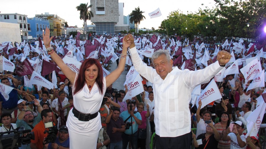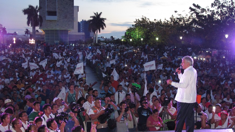 Se aprovecha “Alito” de pobreza de los ciudadanos Por su parte, durante su amplio discurso, Andrés Manuel acusó a Alejandro Moreno Cárdenas de aprovecharse de la pobreza de los ciudadanos y hacer la operación clásica del PRI: la compra de las conciencias, la burla al pueblo y la humillación del soborno por los votos. “Ese candidato del PRI se ha encumbrado traficando con la pobreza de la gente, entregando despensas, materiales de construcción, a billetazos, sé que los campechanos van a actuar en consecuencia este domingo y tendrán una gobernadora con capacidad”, aseveró. Afirmó que Campeche está frente a una oportunidad irrepetible, la posibilidad de que se luche por lo que le corresponde y se recuperen las partidas presupuestales que les quitaron los panistas por el petróleo. “Campeche ha estado los últimos tiempos, muy maltratado por la Federación, les han quitado sus participaciones federales por el concepto del petróleo y esto le ha pasado a Campeche y a Tabasco, desde que llegaron los panistas, se hizo un acuerdo, Calderón y Peña Nieto cambiaron la fórmula de la participación del presupuesto a los estados, afectando a Campeche y a Tabasco, esto en el 2008”, agregó. “En el tiempo que Peña fue gobernador en el Estado de México, todo el dinero que le quitaron a Campeche y a Tabasco, se lo dieron a Peña para su campaña, lo encumbraron con el dinero de Tabasco y Campeche, con el cambio de las fórmulas y con Layda, se recuperará ese dinero para beneficio de los campechanos”, abundó. “A pesar de que este es un estado petrolero, el pueblo está sin dinero, no hay trabajo, el campo está abandonado, hay mucha pobreza en Campeche, por estos gobiernos alcahuetes que ha tenido Campeche, sería el acabóse de Campeche, si entrara este candidato, que es mejor hasta olvidar su nombre”, advirtió. El político de izquierda manifestó que las muestras son muchas y las pruebas las conoce bien la ciudadanía de que el candidato del PRI es uno de los personajes mas corruptos del país y protegido de Peña Nieto, lo cual ya es mucho decir. Al terminar el mitin, se dio paso a entonar el Himno Nacional Mexicano, con lo que se cerró el espacio político y comenzó la fiesta de despedida al PRI, con la actuación de la Sonora Dinamita.