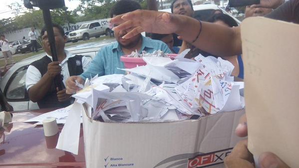 Layda Sansores y sus simpatizantes sorprenden a 11 personas destruyendo pruebas del fraude electoral del siete de junio.