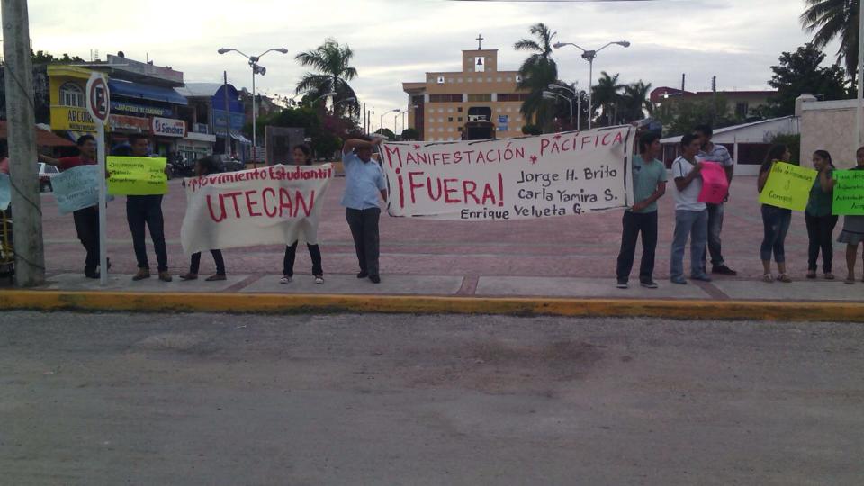 Los alumnos en manifestación también presentaron una queja contra Jorge Humberto Brito Vázquez ante la Comisión de Derechos Humanos. Los manifestantes ya tuvieron las primeras pláticas con la Secretaría de Gobierno, pero aún no hay respuesta a su pliego petitorio. Por Ronny Aguilar CAMPECHE, Cam. 19 de junio del 2015.- Los estudiantes de la Universidad Tecnológica de Candelaria (Utecan) presentaron una denuncia contra Jorge Humberto Brito Vázquez, actual rector del plantel, por amenazas, y también interpusieron una queja ante la Comisión de los Derechos Humanos del Estado de Campeche (CDHEC). Diego Barrera Arellano, miembro de la comitiva de la manifestación pacífica de la Utecan, dio a conocer que presentó ante la Fiscalía General del Estado una querella en contra del rector, por amenazas, y que no es el único en esta situación, ya que hay una más de un compañero y se presume que se interpondrán cuatro más por el mismo motivo, antes del inicio de sus protestas. “El me amenaza y por eso es que procedo, antes de que esto inicie, alguien le da una mala información acerca de mí, me cita en su oficina y me amenaza con correrme de la universidad, me comienza a gritar y me culpa de una papeleta donde hablaban mal de él, yo le digo que no tenía nada que ver y me insulta y dice que dos maestros lo intentaron sacar y que los mandó a chingar a su madre y si intentaba algo, me iba a mandar a poner en la madre”, expresó. “Ante la Comisión de Derechos Humanos, también tenemos una queja, nos pidieron que vengamos a ratificarla, pero pues llegamos después de su horario, aun así, nosotros queremos dejar claro qué tipo de persona es”, puntualizó. Los estudiantes que protestan en la Utecan sostuvieron una reunión con la Secretaría de Gobierno, en la cual no se llegó a acuerdos, y fueron atendidos por el subsecretario José del Carmen Alayola, quien indicó que no tenía cocimiento del caso, aun después de 10 días que la escuela está tomada. El joven universitario señaló que ya se les dio a las autoridades los pormenores de la situación que se presenta en la universidad. “No se tomaron decisiones, ni hubo negociación, solo quedo de manifiesto que ya nos escucharon y que será en los próximos días cuando se analicen las demandas nuestras y se tengan respuestas”, agregó. “La Secretaría está en la postura, es clara, nos dijeron que todos tienen derecho a defenderse y por eso van a escuchar la versión del rector, nosotros señalamos que ya le dimos muchas posibilidades de la manera formal y no pasó nada, así que por eso nosotros accionamos”, añadió. Manifestó que no se piensa aperturar la escuela, hasta que no se cumplan los primeros puntos del pliego, ya que sin la garantía de estos, nada se logró del movimiento. Es necesario recordar que como primer punto, se pide la destitución del director del plantel, Brito Vázquez, el contador Enrique Velueta  y la maestra Karla Centeno. Como segundo punto del pliego, está que se garantice que no habrá represalias en contra de los estudiantes que participan en activo en la manifestación pacífica; como tercer punto, plantean que se acepte la conformación de la Sociedad de Alumnos y como cuarto, la creación de órganos de transparencia y rendición de cuentas de los recursos de la universidad. Es necesario recordar que acusan a su rector de corrupción, nepotismo, abuso de autoridad y discriminación.
