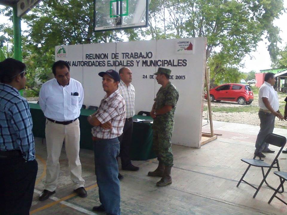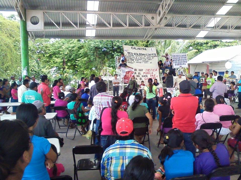 El presidente municipal, Baltazar González Zapata, organizó un evento en la cancha que había sido solicitada con anticipación. Los papás de los estudiantes y el vocero de la lucha, Omar García, estuvieron también en la cabecera municipal de Escárcega. Por Ronny Aguilar XPUJIL, CALAKMUL, Cam. 24 de junio del 2015.- El alcalde de Calakmul, Baltazar González Zapata, intentó sabotear el encuentro de los calakmuleños con los padres de los normalistas desaparecidos de Ayotzinapa, al improvisar un evento para evitar el mitin, pero al final tuvo que olvidarse del amago. Al continuar la ruta de los padres de los normalistas en el estado de Campeche, en su segundo día, acudieron a los municipios de Calakmul y Escárcega, y mañana visitarán Candelaria, antes de salir al estado de Veracruz, en donde realizarán la Acción Global por los nueve meses de la desaparición de los 43 estudiantes. A las 10 de la mañana, inició la marcha en Xpujil, saliendo desde Chicanná, hasta llegar a la cancha del lugar, en la cual se iba a realizar el mitin, pero al llegar se dieron cuenta que estaba siendo ocupada por personal del Ayuntamiento local, incluido el alcalde González Zapata, en compañía de militares. El presidente municipal y sus acompañantes se negaron en un principio a liberar el espacio, sin embargo, se les comprobó que había sido solicitado con anticipación y ante la presión de los más de 200 asistentes de las comunidades de Calakmul, que conforman el Congreso Nacional Indígena, las autoridades decidieron retirarse. Los padres de los normalistas y el vocero de la lucha por justicia en Ayotzinapa, Omar García, plantearon los propósitos de la lucha, que es la aparición con vida de los 43 estudiantes y compartieron experiencias de lucha con la sociedad calakmulense, que también compartió sus anécdotas y las luchas que pasaron. A las seis de la tarde, en el municipio de Escárcega, se realizó un mitin, en donde los padres solicitaron el apoyo de los asistentes y pidieron que no decaigan en la lucha por la aparición con vida de los 43.