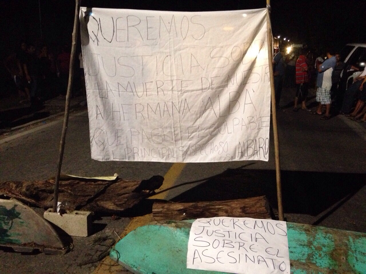 Familiares de Alba del Carmen May y vecinos del poblado de Atasta mantuvieron cerrada la vía federal Villahermosa-Ciudad del Carmen, en demanda de justicia. Los parientes de la fallecida no creen la versión oficial de la Fiscalía General del Estado, que dictaminó que se quitó la vita, e insisten en que el culpable es su pareja. Por Ronny Aguilar ATASTA, CARMEN, Cam. 25 de junio del 2015.- Familiares de Alba del Carmen May y vecinos del poblado de Atasta bloquearon la carretera federal Villahermosa-Escárcega, en busca de justicia, ya que dudan de la versión de la Fiscalía General del Estado, que dictaminó que la mujer se quitó la vida. Los parientes de Alba del Carmen cerraron la vía federal durante más de 24 horas e indicaron que dudan de la versión oficial de que la fémina se suicidó y culparon a la pareja, con la que llevaba cuatro meses de relación, del homicidio. Aseguraron que la Fiscalía no aporta las suficientes pruebas para confirmar el suicidio. Relataron que la difunta se dedicaba a hacer alimentos para los trabajadores de la carretera federal, que se encuentra a un costado de la Escuela Secundaria Técnica de la localidad, lugar donde fue ultimada el pasado cuatro de junio y donde la encontraron un día después, con una herida de bala. Ante la versión de la autoridad, que aseguró que la mujer se mató con un disparo en la cabeza,  los familiares piden las pruebas de balística y que muestre el arma, que no hizo, y los funcionarios solo dijeron que se suicidó. Liberación de carretera Alrededor de las seis de la tarde de este jueves, se llevó a cabo la liberación de la carretera, pues con lágrimas en los ojos, los familiares de la mujer indicaron tener miedo de que la autoridad los desaloje con violencia, terminando por aceptar el resultado pericial de la autoridad, de momento, aunque a la espera de mayores pruebas.