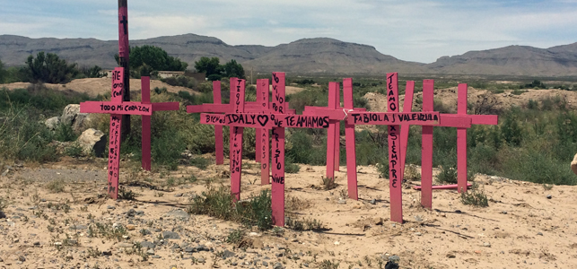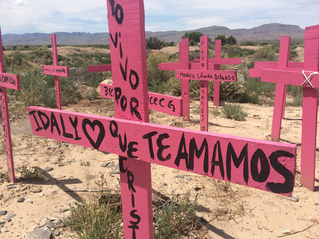 Refugio de migrantes y vertedero de mujeres Fuera de Ciudad Juárez perduran los vestigios de que alguna vez el municipio estuvo rodeado por una franja de campos algodoneros que verdearon el margen del río Bravo y atravesaron el desierto de Chihuahua. Conformado por los poblados de Zaragoza, San Isidro, Loma Blanca, San Agustín, Doctor Porfirio Parra, Barrales, Guadalupe, Práxedis y El Porvenir, el Valle de Juárez –como se conoce a la región– ahora es una colección de casas incendiadas y pueblos abandonados. Recorrer la carretera Juárez-El Porvenir, principal vía de acceso al Valle, es adentrarse a pueblos que fueron visitados por la muerte y el terror, por ser un punto estratégico para transportar personas y drogas “al otro lado”. En Guadalupe, el alcalde mandó a pintar las fachadas de la calle principal, pero los colores chillantes que se utilizaron no hacen más que resaltar el vacío de las casas de lo que ahora es prácticamente un “pueblo fantasma”. Dentro de esas casuchas viejas que pertenecen a personas que no pudieron huir del terror, duermen personas migrantes a la espera de que la oscuridad del desierto les permita cruzar a EU sin ser detectadas. En el kilómetro 80 de esa carretera, veladas por ese sol señorial, se yerguen cruces rosas de madera que fueron colocadas por madres de jóvenes víctimas de esa violencia sistemática y comunitaria que aún persiste. Las piernas cansadas de exigir justicia no pudieron adentrarse en el terreno árido e indomable, para llegar hasta el punto en el que los ojos de sus hijas fueron cerrados para siempre por quienes vendieron sus cuerpos, y en donde se abandonaron los restos para que los animales carroñeros contribuyeran a borrar toda evidencia de la atrocidad. Aunque tuvieron que realizarse más de tres recorridos para rescatar osamentas de al menos 50 jóvenes, las autoridades no han resguardado la zona para prevenir que más sueños y vidas sean arrebatados en lo que ahora parece ser el basurero de la violencia mortal de Ciudad Juárez.