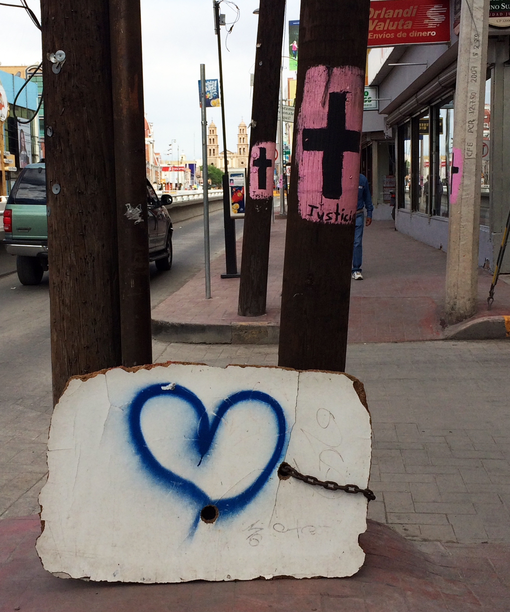 Calan más de 20 años de feminicidio en demanda de justicia/CIMACFoto: Anaiz Zamora Márquez Por Anaiz Zamora Márquez, enviada Cimacnoticias CIUDAD JUAREZ, Chih. 24 de julio del 2015.- La vida en esta urbe fronteriza se rige por la voluntad de un sol señorial que lo deteriora todo: la claridad de pensamiento, el vigor para trabajar todo el día, la convivencia en la vía pública y hasta la fachada de las casas; incluso su ausencia define la forma en la que las personas diseñan sus días. Sólo hay una cosa en la que el astro no tiene impacto: el reclamo de justicia por las cientos de mujeres que han sido desaparecidas, violadas sexualmente, asesinadas de formas brutales, y cuyas vidas importaron tan poco a sus agresores, que sus restos fueron abandonados como desechos, ante la indolencia de un gobierno por proteger a las habitantes. Ese reclamo que lleva más de 20 años es palpable en las calles de una ciudad acostumbrada a la esquizofrenia de vivir entre la modernidad y la desigualdad, y que parece negada para las mujeres. En cada poste de luz de las avenidas principales que llegan al centro de la urbe se mantiene dibujada una cruz rosa que además de rebelarse al poder de los rayos del sol, recuerda a su población que aunque no se hable de ese destino, el nombre de otras hijas u otras jóvenes cercanas puede sumarse a la lista de mujeres cuyos sueños fueron arrebatados cuando se convirtieron en objetos de violencia e impunidad, listado que existe desde 1993. Quien llega a esta ciudad se topará con una estructura urbana creciente: más de 350 maquilas, un consulado estadounidense rebosante de modernidad, y construcciones nuevas que se erigen a las faldas de la Sierra de Juárez. Pero también la quinta localidad más grande del país recibe a quien la visita con la frase “Cd. Juárez, la biblia es la verdad, léela”, que se aprecia en esas letras dibujadas con cal sobre el cerro de La Bola. El llamado religioso –visible desde cualquier punto de la ciudad–funge cada tarde como telón de fondo a la voz aguardentosa de un hombre que difunde terroríficamente “la palabra de Dios”. Su mensaje sólo es escuchado por quienes se sientan a tomar un descanso a la sombra de los árboles, en la Plaza de Armas que ampara a la Catedral de esta urbe fronteriza.