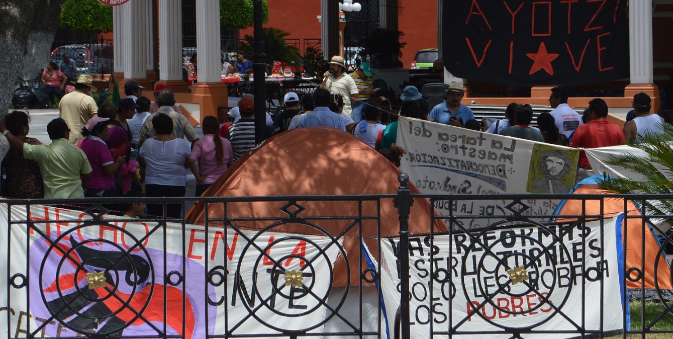 El mitin lo inició un padre de familia que habló acerca de las problemáticas que se están generando por las reformas estructurales peñistas, pero en idioma maya, acto seguido, se presentó un discurso sobre el caso de los 43 de Ayotzinapa y el pase de lista acostumbrado y conteo de los estudiantes, para finalizar con la exigencia de un país en el grito de ¡Justicia! Asimismo, los docentes señalaron la necesidad de la unificación del magisterio, la invitación a los obreros y trabajadores en materia de salud, educación, petróleo y sociedad en general no se hizo esperar, señalando que principalmente estos sectores están en riesgos con las reformas. Abundaron que esta lucha docente, no es una lucha de victorias y menos inmediatas, que es un lucha de resistencia y eso es lo que han demostrado a lo largo de más de dos años en contra de esta mal llamada Reforma Educativa. Expresaron que van 11 reformas peñistas y está a punto de llegar la décimo segunda, la de salud, la cual está previsto que elimine del cuadro básico de la salud enfermedades como la diabetes y el cáncer, afectando a miles de familias en todo el país. Se finalizó el mitin con la mano izquierda empuñada en el aire, con el himno Venceremos.