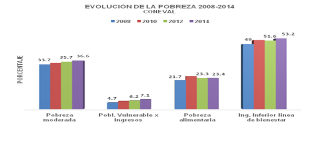 Especial Por Carmen R. Ponce Meléndez* Cimacnoticias CIUDAD DE MEXICO, D.F. 30 de julio del 2015.- Durante 2012-2014 y según información del Consejo Nacional para la Evaluación de la Política Social (Coneval), creció la pobreza moderada (5.0 por ciento) y la alimentaria aumentó 2.3 por ciento, la más radical de las pobrezas. ¿Dónde quedó la Cruzada Nacional contra el Hambre? Los peores resultados están en la población vulnerable por ingresos, ésta aumentó un significativo 17.2 por ciento, al pasar de 7.2 a 8.5 millones de personas en esta condición. En términos generales, el número de pobres se incrementó en 2 millones de personas, un crecimiento del 3.7 por ciento, pasando de 53.3 a 55.3 millones de personas. Son los dos primeros años de gobierno de Enrique Peña Nieto. También crece la desigualdad. El Coeficiente de Gini pasó de 0.498 a 0.503; mientras más cerca del 1, mayor desigualdad. ¡Es urgente aumentar los salarios! Sin duda este crecimiento tan grave de la desigualdad con pobreza –sobre todo la derivada de los ingresos– obedece a la política de contención salarial que mantiene a los ingresos del país como los más bajos de América Latina. Y se demuestra con la evolución de la pobreza en los últimos seis años, tomando como referente 2008, donde son constantes los incrementos en sus niveles para la población con un ingreso inferior a la línea de bienestar y la pobreza moderada, población que ante cualquier acontecimiento como enfermedad o desempleo puede caer en pobreza extrema. En la vulnerabilidad por ingresos, los resultados son terribles, ésta aumentó escandalosamente en 62.0 puntos porcentuales, implicó un crecimiento de 3.2 millones de personas en esta situación, y pasó de representar 4.7 en 2008 a 7.1 por ciento para 2014 (Véase gráfica). Coneval define como vulnerabilidad por ingresos aquella población que no presenta carencias sociales, pero su ingreso es inferior a la línea de bienestar, es decir que no puede alcanzar el valor monetario de una canasta de bienes y servicios básicos. Por eso los constantes incrementos en el rango de “población con un ingreso inferior a la línea de bienestar” La única razón por la que disminuyó la pobreza extrema en los dos años que cubre el informe es por los programas de la política social. Para empezar, en los hogares más pobres un tercio de sus ingresos proviene de estos programas (ENIGH 2014). De ahí que resulte catastrófica una reducción del gasto social como la que se prevé para 2016. Aunque estos programas siguen siendo insuficientes o están mal aplicados, de otra manera no se explica que en los primeros niveles de ingreso (los hogares más pobres) todas las carencias se redujeron excepto la carencia por acceso a la alimentación, a pesar de que existe un programa exprofeso. De hecho, Coneval afirma que de cada 100 mexicanos, 79.5 viven en situación de pobreza y vulnerabilidad; sólo 20 no es pobre y tampoco están en la línea de vulnerabilidad. Mapa de la pobreza Las cifras sobre pobreza regional superan con mucho la media nacional. Para el periodo que cubre el informe de Coneval, el estado de Morelos registra en crecimiento en pobreza más alto, del orden de 17.8 por ciento, una cifra muy preocupante sobre todo si se considera que tan sólo son dos años. De hecho, son seis las entidades con el mayor crecimiento en pobreza: Morelos, Estado de México, Veracruz, Coahuila y Sinaloa. El mayor volumen de población en pobreza lo aporta el Edomex. Entre Morelos y el Estado de México se está construyendo un cinturón de miseria que presiona fuertemente a la Ciudad de México. La disminución de población en pobreza correspondió a Nayarit, Durango, Nuevo León, Jalisco, Aguascalientes y Guerrero. Sin mujeres, no hay desarrollo posible Tanto el informe de pobreza, como la Encuesta Nacional de Ingreso y Gasto de los Hogares (ENIGH 2014), ignoraron olímpicamente a la mitad de la población del país, a las mujeres, al no desagregar la información por sexo, a pesar de contar con esta información. Hasta en pobreza son invisibles las mujeres, un error imperdonable. Así como construir políticas públicas para la equidad de género, y sin mujeres no hay desarrollo posible. No obstante la carencia de datos duros, es posible inferir la alta afectación que tienen las mujeres por la pobreza debido a dos razones importantes: su mayor volumen en el desempleo y su sobrerrepresentación en los niveles salariales más bajos, además de que son más vulnerables a carencias sociales como la falta de seguridad social. Aquí es indispensable recordar que según la propia ENIGH 2014, de cada 10 pesos que ingresan a los hogares 6.9 provienen del ingreso laboral (salarios); por tanto, a menor salario mayor pobreza. No es casual que en el informe de Coneval correspondiente a 2010-2012 –en el que sí se desagregó la información por sexo–, en 11 de los 16 indicadores las mujeres resultan más afectadas por la pobreza. La brecha de género más alta correspondió justamente a la población vulnerable por ingresos, con un altísimo 18.1 por ciento, precisamente por las condiciones en que se encuentran las mujeres en el mercado laboral y que se refirieron anteriormente. Cabe recordar que en el informe de 2014 el crecimiento de pobreza más alto se registra esencialmente en la vulnerabilidad por ingresos. Para 2012 y por su importancia resaltan los siguientes indicadores, donde es más alta la pobreza femenina: población en situación de pobreza y pobreza extrema; vulnerable por ingresos; por acceso a la alimentación; población con ingreso inferior a la línea de bienestar mínimo, y con ingreso inferior a la línea de bienestar. Desgraciadamente no hay razones fundamentadas para pensar que esta situación cambió radicalmente; posiblemente en alguno de estos indicadores mencionados mejoró el nivel de pobreza femenina, pero es casi seguro que siguen siendo las primeras en pobreza mu