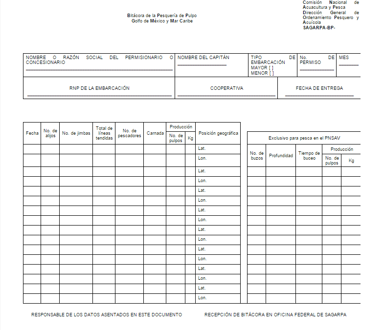En vísperas del inicio de la temporada de captura del pulpo en costas de la Península de Yucatán, la dependencia federal publica en el Diario Oficial de la Federación un proyecto de modificación de la norma oficial mexicana NOM-008-PESC-1999 y anuncia el inicio de una consulta pública durante los próximos 60 días. Por Daniel Sánchez CAMPECHE, Cam. 31 de julio del 2015.- En vísperas del inicio de la temporada de captura de pulpo en la Península de Yucatán, la Secretaría de Agricultura, Ganadería, Desarrollo Rural, Pesca y Alimentación (Sagarpa), a través de la Comisión Nacional de Acuacultura y Pesca (Conapesca), inició la consulta pública del proyecto de modificación de la norma oficial mexicana NOM-008-PESC-1993, en el que establecen nuevas regulaciones para el aprovechamiento de las especies de pulpo en aguas nacionales del Golfo de México y el Mar Caribe. Entre las nuevas disposiciones, destaca la entrega a las autoridades pesqueras de una “bitácora de pesca”, además del aviso de arribo, en la que se registrarán las circunstancias de la pesca y serán entregadas a la Subdelegación de Pesca u oficinas de Pesca, en un plazo no mayor de cinco días después del fin de cada mes. En el documento publicado en el Diario Oficial de la Federación el pasado 29 de julio, se precisa que las especies objeto de la presente Norma son: a) Pulpo rojo (Octopus maya) y b) Pulpo patón (Octopus vulgaris). “Se establecen las siguientes tallas mínimas de captura para el aprovechamiento de pulpo: a) En el Parque Nacional Sistema Arrecifal Veracruzano: 110 milímetros de longitud del manto para los machos y 140 milímetros de longitud del manto para las hembras de pulpo patón (Octopus vulgaris), y b) Para el resto del Golfo de México, 110 milímetros de longitud del manto para las especies de pulpo rojo (Octopus maya) y pulpo patón (Octopus vulgaris)”, agrega. Manifiesta que los equipos y métodos de pesca autorizados son: “a) Una embarcación menor equipada con un motor fuera de borda con una potencia nominal máxima de hasta 85.76 kilovatios (equivalentes a 115 caballos de fuerza), con un máximo de dos alijos y cuatro pescadores. Captura al “gareteo” con dos varas con hasta siete líneas cada una y hasta cinco líneas más en un costado de la embarcación”. “b) Una embarcación mayor con hasta 12 alijos y 12 pescadores (un alijo por pescador a bordo), en cada alijo, un par de varas (“jimbas”) y cinco líneas pulperas (dos por vara y una al costado del alijo), y c) En el Parque Nacional Sistema Arrecifal Veracruzano (PNSAV), la pesca deberá realizarse mediante buceo por apnea a profundidades menores a tres metros, pudiendo auxiliarse de un bastón pulpero para la captura. Para la pesca en esta zona deberá observarse lo dispuesto en el Decreto de creación del PNSAV”, abunda. También especifica que “los permisionarios y/o concesionarios de pesca comercial de pulpo, quedan obligados a: 4.4.1 Registrar las circunstancias de la pesca en el formato de bitácora que se publica como Anexo de la presente Norma y entregarlo mensualmente a las Subdelegaciones de Pesca u Oficinas de Pesca en un plazo no mayor de 5 días después de cada mes calendario. No es obligatorio llevar las bitácoras de pesca a bordo de las embarcaciones menores”. “4.4.2 Entregar el Aviso de arribo correspondiente debidamente llenado, a la Subdelegación de Pesca u Oficina Federal de Pesca dentro de las 72 horas siguientes al término de cada viaje, y 4.4.3 Admitir a bordo, antes o al final de cada viaje de pesca, al personal verificador aprobado y acreditado que designe la Secretaría y facilitarle la información que sea requerida respecto a las operaciones, equipos y artes de pesca, capturas, volúmenes y especies”, apunta. Las prohibiciones de la Sagarpa En el proyecto, la Sagarpa determina que queda estrictamente prohibido: Utilizar como carnada al cangrejo moro (Menippe mercenaria), el empleo de carnada proveniente de organismos terrestres, el empleo de cualquier tipo de explosivos o de sustancias tóxicas, utilizar artes o métodos de pesca no autorizados y el incumplimiento o falseo de la información. Advierte que contravenir a lo dispuesto en la presente Norma, dará lugar a las sanciones previstas en la Ley General de Pesca y Acuacultura Sustentables y otros ordenamientos aplicables, y finalmente menciona que la Secretaría (Sagarpa), con base en las investigaciones y programas que se realicen con el objeto de inducir al óptimo aprovechamiento de las especies de pulpo (Octopus maya y Octopus vulgaris), notificará mediante Acuerdo publicado en el Diario Oficial de la Federación, acerca de nuevos equipos, métodos, sistemas o artes de pesca así como de zonas de pesca, zonas de refugio pesquero, cuotas de captura, zonas y periodos de veda, tecnologías para reforzar la verificación del cumplimiento o porcentajes de incidentalidad que se autoricen y de la actualización de especificaciones de los equipos o artes de pesca autorizados en esta Norma Oficial Mexicana así como sobre programas de repoblamiento y otras medidas de manejo pesquero. En un comunicado aparte, la Conapesca revela que “dicho Proyecto de Modificación fue aprobado en la Tercera Sesión Ordinaria del Comité Consultivo Nacional de Normalización Agroalimentaria, efectuada el 25 de junio de 2015, y que se somete a consulta pública de conformidad con la Ley Federal Sobre Metrología y Normalización, a efecto de que dentro de los siguientes 60 días naturales, contados a partir de la fecha de su publicación en el Diario Oficial de la Federación, los interesados presenten comentarios al citado Comité en la Dirección General de Ordenamiento Pesquero y Acuícola de la Conapesca. “La Sagarpa, a través de Conapesca, efectuó una revisión de la problemática del aprovechamiento de la pesquería de pulpo en las aguas de jurisdicción federal del Golfo de México y Mar Caribe y propuso una serie d