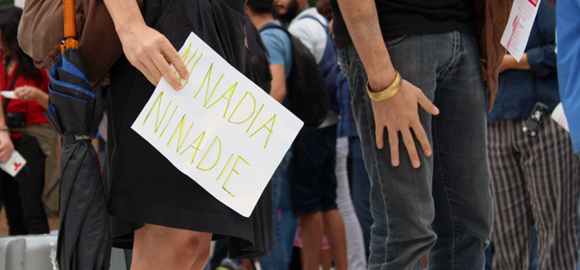 CIMACFoto: Angélica Jocelyn Soto Espinosa Por Frida Guerrera* Cimacnoticias “Cuando sientas que el dolor te parte en dos recuerda que entiendo tu dolor” Anónimo No necesitamos ser famosos o reconocidos para levantar también nuestra voz y detener esta barbarie. El pasado 1 de agosto o 31 de julio, porque ni eso nos queda claro, como sabemos, fueron asesinados de una manera que a todos nos ha conmocionado, Alejandra Negrete Avilés, Yessenia Quiroz Alfaro, Mile Virginia Martín, Nadia Vera Pérez y Rubén Espinosa Becerril. La muerte de cada uno de ellos nos cimbró por las diferentes ocupaciones que tenemos; aquellos que nos dedicamos a la denuncia de violaciones a los Derechos Humanos (DH) como Nadia, o aquellos que nos dedicamos a cubrir movimientos sociales y denunciarlos con una cámara, una pluma o nuestra opinión. Conmocionó a aquellas miles de mujeres que buscan destacar en el mundo de la belleza encontrando como buena opción este trabajo como Yessenia y Mile, y claro, nos dolió el hecho de ser la mayoría de este país mujeres trabajadoras que buscamos el sustento de nosotras o de quienes dependen de nuestra labor, Alejandra. No debemos sentirnos exentos de esto; la mayoría sabemos que en cualquier momento podemos ser asesinados. Sin embargo con este múltiple homicidio el mensaje fue muy claro. En este México podríamos ser asesinados: usted, su vecino, su amiga, su madre, su hermana, su compañero de trabajo, su esposa, su esposo, el niño que vende dulces, los indígenas, su hija o hijo, el migrante que le pide un apoyo en alguna esquina de este país. Todas y todos, ¿por qué? Por el simple acto de pensar, de denunciar, de protestar, de exigir, de salir a diario a trabajar, a correr, a caminar o simplemente a divertirse, por defender la tierra, el agua, por estar en una casa que es invadida por el “ejército”, por ser gobernados por “delincuentes” disfrazados de “políticos” o “políticos” disfrazados de “delincuentes”. Debemos de tener claro que no necesita usted ser prensa, defensor, modelo o mujer, ya no se vale que como sociedad justifiquemos el hecho de que a quien matan en este país es porque se lo buscó o porque anda en malos pasos. Todos somos blancos. Lamentablemente, muchos medios de comunicación, al igual que las autoridades del gobierno capitalino encargado de la investigación, parecen regocijarse con lo que se “filtra” y se “informa”, denigrando, humillando, sobajando a los asesinados, llamándoles, con todo el afán de descalificar el asesinato: “drogadictos”, “putas”, “parientes de delincuentes”, “sirvienta” o “una más”. Nadie quiere ser asesinado, sin embargo como están las cosas cada uno de nosotros deberíamos escribir o grabar un video de quienes somos, porque si nos matan ¿sabe usted que van a decir? Me duelen Alejandra, Nadia, Yessenia, Rubén, Mile, las decenas de migrantes, los 43 estudiantes, los miles de asesinados y desaparecidos, el feminicidio, mis amigos, mis hermanos, mi pareja, mis padres, mi hijo, usted, yo. Y las preguntas son: ¿De verdad ellos, los que matan –ejército, gendarmería, políticos, delincuentes, violadores– son más que nosotros? ¿De verdad somos tan pocos a los que nos asusta ser asesinados? ¿De verdad sólo somos un puñado de “mujeres” que gritan “paren el feminicidio”? ¿De verdad son más poderosos los medios que denostan la realidad de este país? ¿De verdad sólo a quienes tenemos hijos nos duelen los 43, el asesinato de 49 bebés? ¿De verdad somos menos los que queremos respeto a nuestros pueblos originarios? ¿De verdad es más grande el conformismo, y el pensamiento de “yo hago mi trabajo, no puedo hacer más por México”? ¿De verdad son más los que salen a gritar el 15 de septiembre un “Viva México” aunque México esté muriendo? No lo sé, muchos tal vez hemos buscado esas respuestas; no creo que nos merezcamos sólo seguir acumulando fechas de dolor, de muerte. No creo que debamos sentir el dolor de los familiares de todas estas personas asesinadas, desaparecidas, para entonces empatar con ellos, para entender su dolor, comprender que vivimos en una sociedad aniquilada, que da la vida por sus animales y sigue permitiendo que asesinen a niños como en Ostula. Y como acertadamente diría Rubén: “Da coraje que decidan el rumbo de mi vida”. ¿Y a usted no le da coraje que decidan a quien nos toca ser asesinados?