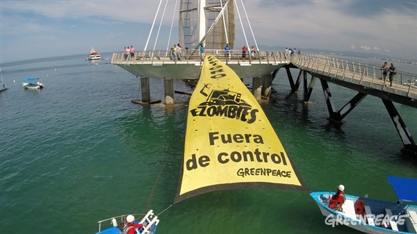 Foto: Gabriel Iván Ortiz/Greenpeace PUERTO VALLARTA, Jal. 23 de agosto del 2015.- La agrupación ambientalista internacional Greenpeace advirtió que en México podría presentarse un nuevo apocalipsis eZombie, que están fuera de control de las autoridades ahora con el apagón analógico, que haría desechar unos 40 millones de televisores de los hogares mexicanos. En un texto denominado “México… ¿nuevo apocalipsis eZombie?”, la organización ecologista cuestionó: ¿Un televisor te puede poner en peligro? Depende de qué hagas con él. Mientras está en tu casa, igual que lo estuvo el televisor que compraron tus padres o tus abuelos, no hay peligro. “La situación cambia cuando ya no está en tu sala, en tu cuarto o cuando decidiste llevarlo con el camioncito de “Se compran colchones, refrigeradores, estufas, televisiones…”, ahí ya no estamos en terrero seguro”, expresó. “Cualquier paraíso podría ser territorio eZombie. Esto es lo que mostramos a cientos de bañistas en la playa de Puerto Vallarta con un mensaje triangular, en el que dijimos “Peligro: eZombies fuera de control”, agregó. “Sí, aunque a muchos no les guste escucharlo, ese asunto dela apagón analógico está fuera de control, porque está creando un nuevo problema de contaminación, adicional a los ya críticos por el manejo de residuos orgánicos, urbanos, biológicos y de otros tipos. Con 40 millones de televisiones a desechar, ¿qué vamos a hacer? ¿Y quién debería de atender este asunto? Pues la Secretaría de Comunicaciones y Transportes (SCT), por ser responsable de implementar el programa del Apagón”, abundó. “Pero… ¿y los residuos de tanta televisión desechada? ¿De esos quién se va hacer cargo? Lo que dice la legislación es que la Secretaría de Medio Ambiente y Recursos Naturales debería hacerlo, pero no vemos claro al respecto. Tal pareciera que el apagón analógico está operando a obscuras. ¿Por qué? Porque el programa incluye la recolección de las televisiones en diversos puntos del país, sitios que deberían ser conocidos por todo público con una fuerte campaña de difusión, no solo para regalar las televisiones digitales, sino para decirle a todo mundo qué hacer con las que ya no se ocupen”, puntualizó. Greenpeace manifestó que los chatarreros o “mineros urbanos” desmantelan las televisiones sin ningún tipo de medida de seguridad, lo que pone en riesgo su salud, al contaminarse con químicos y metales pesados. “Aquí en Vallarta, cuando desplegamos el mensaje en la playa, mucha gente reconoció que no sabía a dónde llevarlas. En Jalisco, hay alrededor de 2.6 millones de televisores analógicos en uso, ¿serán potenciales eZombies? No debemos permitirlo”, expuso. Playa, música y… ¡eZombies! Mencionó que para poner a todos en la misma sintonía, lo primordial es compartir la misma información. Y qué mejor momento que durante el concierto que organizamos, donde en medio de la música, la brisa del mar, la amenaza de lluvia ligera y refrescante´, compartimos escenario con el cantante y activista Christopher Uckerman, quien cantó varios temas de su próximo disco. “Ya con el atardecer como escenario, los Frikstailers pusieron el mejor ambiente con su estilo “tropical-extraterreste”. Frikstailers es un dúo de dos productores argentinos Rafael Caivano y Lisandro Sona resonaron con su música electrónica – tropical – extraterrestre, pelucas, sonidos, pelucas y videojuegos”, añadió. “La bloguera YosStop, con su estilo directo y divertido, explicó a los asistentes la importancia de no tirar en la basura los aparatos electrónicos y las televisiones viejitas”, asentó. Se preguntó: Y tú ¿Sabes qué vas a hacer con tu tele vieja? Primero, no la tires a la basura… Segundo, pregúntale a SCT dónde está el Plan de manejo para estos aparatos y ayúdanos a difundir. En el concierto, participaron más de 250 personas. Al final del evento, Greenpeace invitó al público a visitar el barco Esperanza que permanecerá en el muelle 3 puerta 17 del puerto de Vallarta, hasta el próximo 25 de agosto.