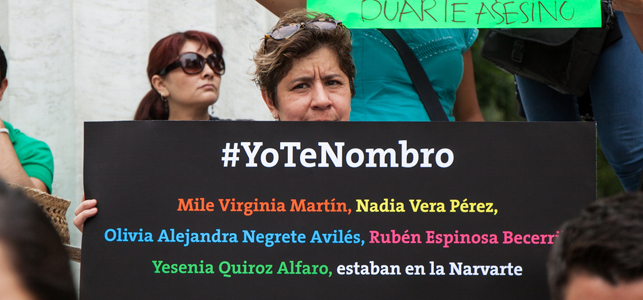 © César Martínez López Por presión ciudadana abre “queja” un mes después del crimen/CIMACFoto: César Martínez López Por Anayeli García Martínez Cimacnoticias CIUDAD DE MEXICO, D.F. 26 de agosto del 2015.- La Comisión Nacional de Derechos Humanos (CNDH) abrió una “queja” por el asesinato de la activista Nadia Vera Pérez, Mile Virginia Martín, Yessenia Quiroz Alfaro, Olivia Alejandra Negrete Avilés, y el fotoperiodista Rubén Espinosa Becerril, perpetrado el pasado 31 de julio en la céntrica colonia Narvarte, en esta capital. El abogado Sergio Méndez Silva, integrante del colectivo Justicia Pro Persona, informó que luego de que grupos civiles solicitaran a la CNDH abrir una investigación por graves violaciones a los Derechos Humanos (DH) en el llamado caso Narvarte, el organismo decidió iniciar sólo una “queja”, pero con la acotación de que “no hay indicios” de la presunta participación de servidores públicos en el crimen. El pasado 6 de agosto, Justicia Pro Persona, junto con otras agrupaciones, solicitó al organismo encabezado por Luis Raúl González Pérez que ejerciera su competencia para investigar casos en los que existan violaciones graves a los DH, tal y como lo establece el artículo 102 constitucional, petición que quedó en el expediente 2015/5821-Q. Según la Constitución, la CNDH podrá investigar hechos que constituyan violaciones graves cuando así lo juzgue conveniente o cuando lo pidan el Ejecutivo federal, alguna de las cámaras del Congreso de la Unión, el gobernador de un estado, el Jefe de Gobierno del DF, o las legislaturas de las entidades federativas. La semana pasada, el abogado Méndez Silva se reunió con personal de la Quinta Visitaduría General de la CNDH, encargada del  Programa de Agravios a Periodistas y Defensores Civiles de Derechos Humanos y encabezada por Edgar Corzo Sosa, pero en ese encuentro se informó que no se podía abrir una investigación, ya que “no había indicios de participación de agentes gubernamentales”. Lo único que aceptó el organismo nacional fue iniciar una “queja” al respecto, lo que a decir del abogado es una contradicción, toda vez que la CNDH sólo puede intervenir en los casos donde hay participación de agentes del Estado, además agregó que su función debe ser indagar y luego concluir si hubo o no graves violaciones a las garantías humanitarias. Por lo pronto, Sergio Méndez lamentó que no se inicie una investigación, como las que en su momento integró la Suprema Corte de Justicia de la Nación por la matanza de campesinos en Aguas Blancas, Guerrero, en 1995, y la represión policial en San Salvador Atenco, Estado de México, en 2006, pues –destacó el defensor– al parecer se trata de evitar cualquier línea de investigación que apunte a la presunta participación del gobierno del estado de Veracruz, encabezado por Javier Duarte, en esta masacre en la que murieron cuatro mujeres y un periodista. El abogado señaló que esperarán a que se integre la “queja” para ver si esa defensoría está trabajando, o de lo contrario tomar acciones legales para obligar a la CNDH a realizar sus funciones constitucionales.